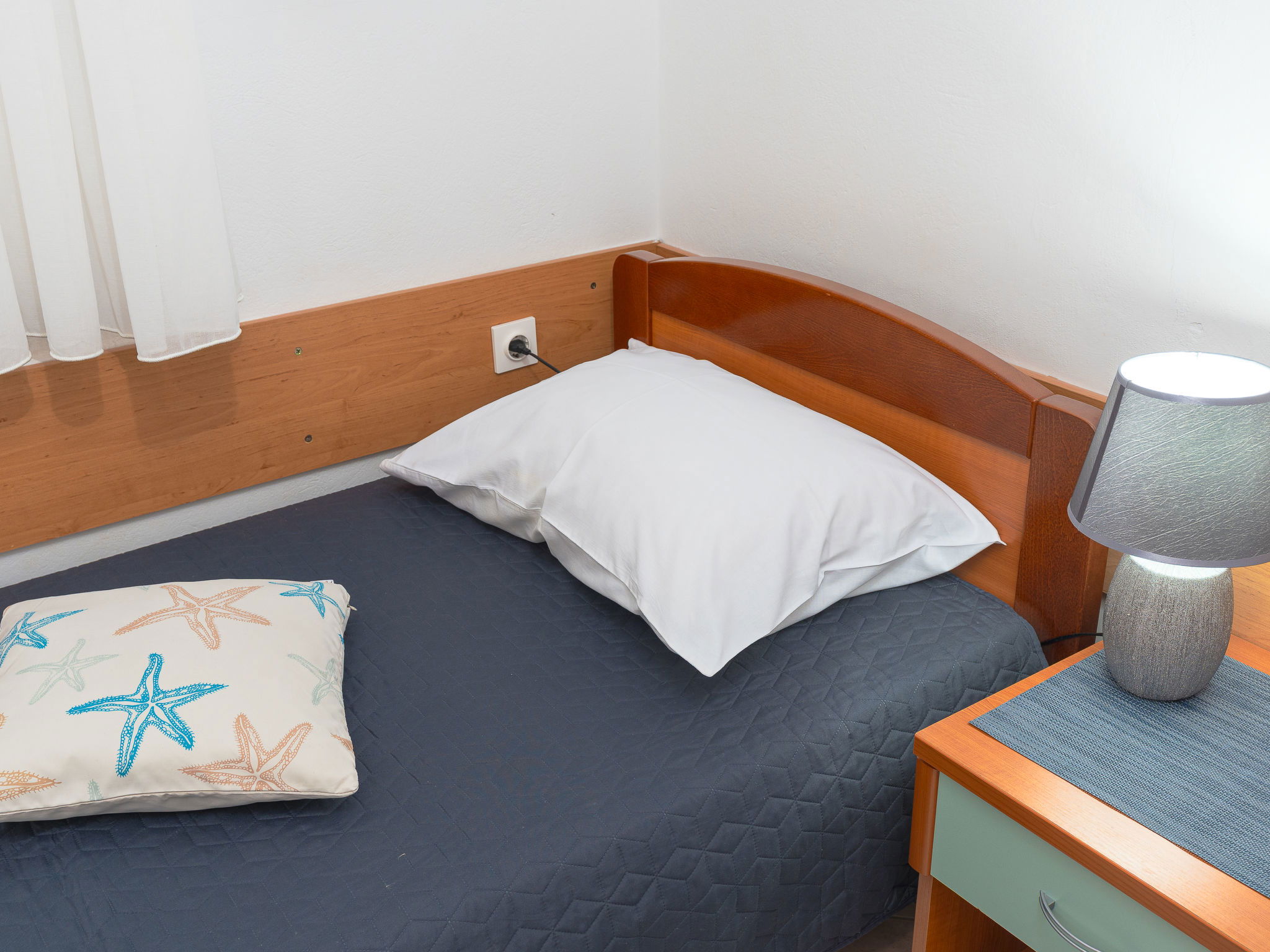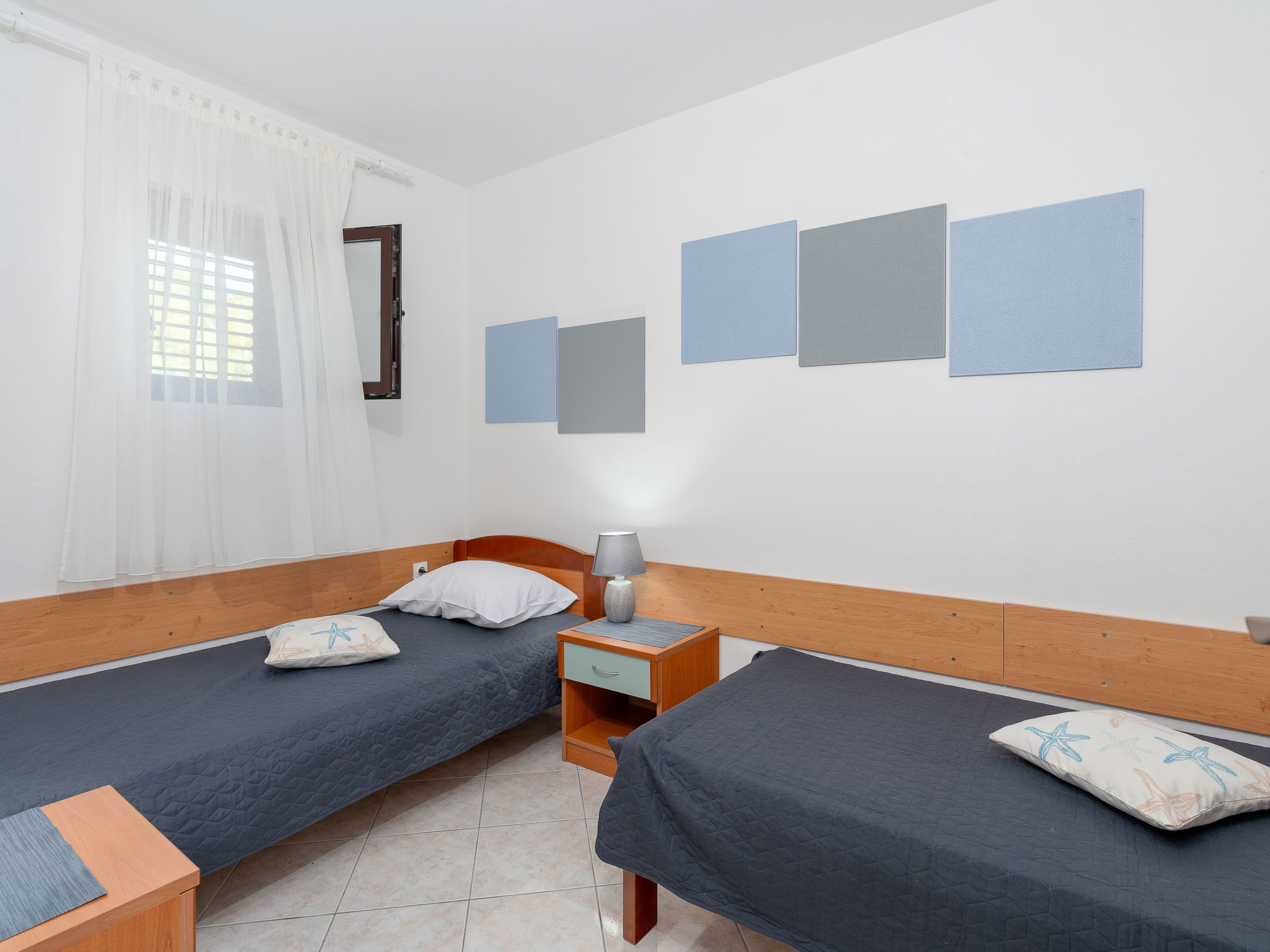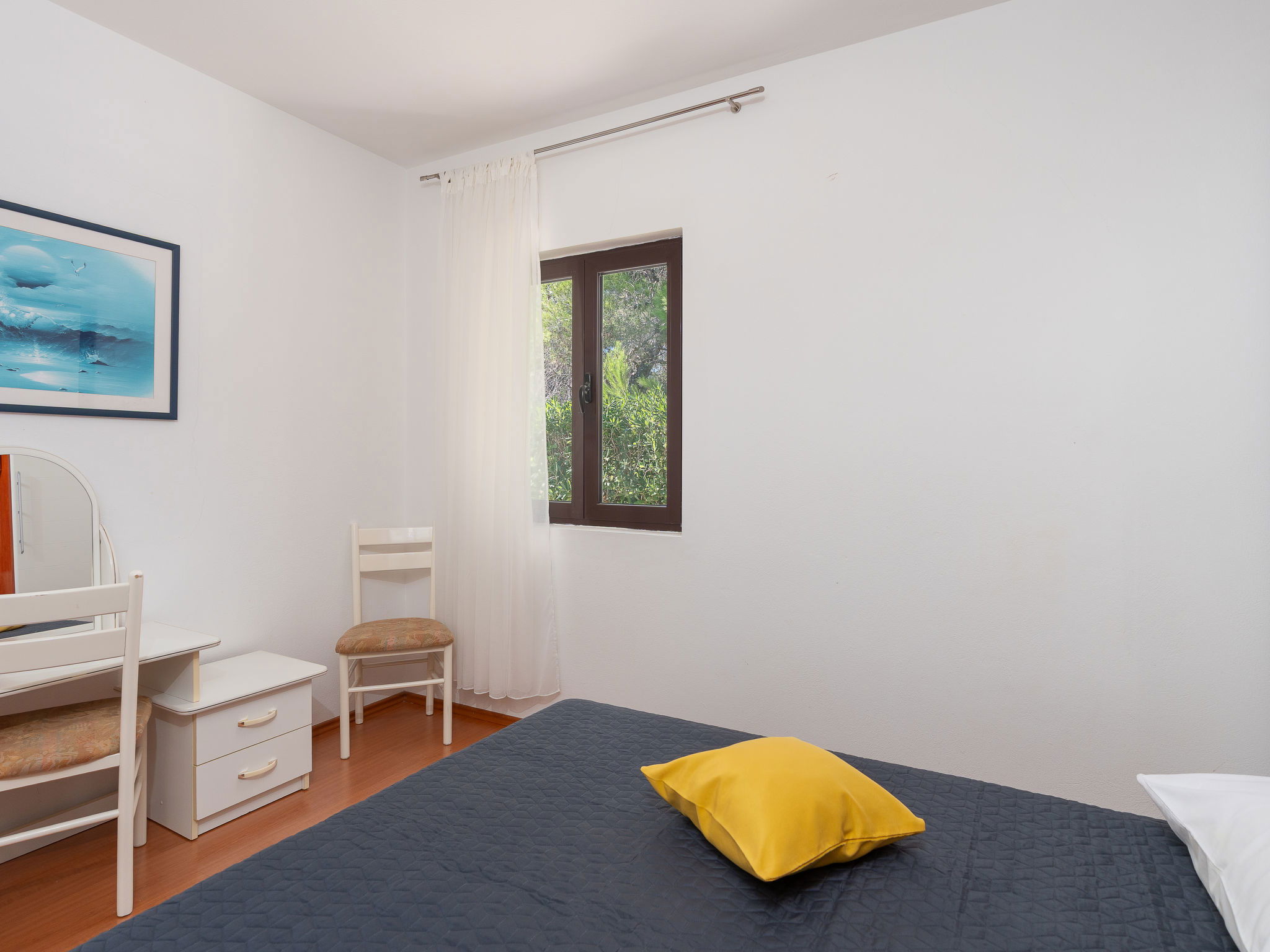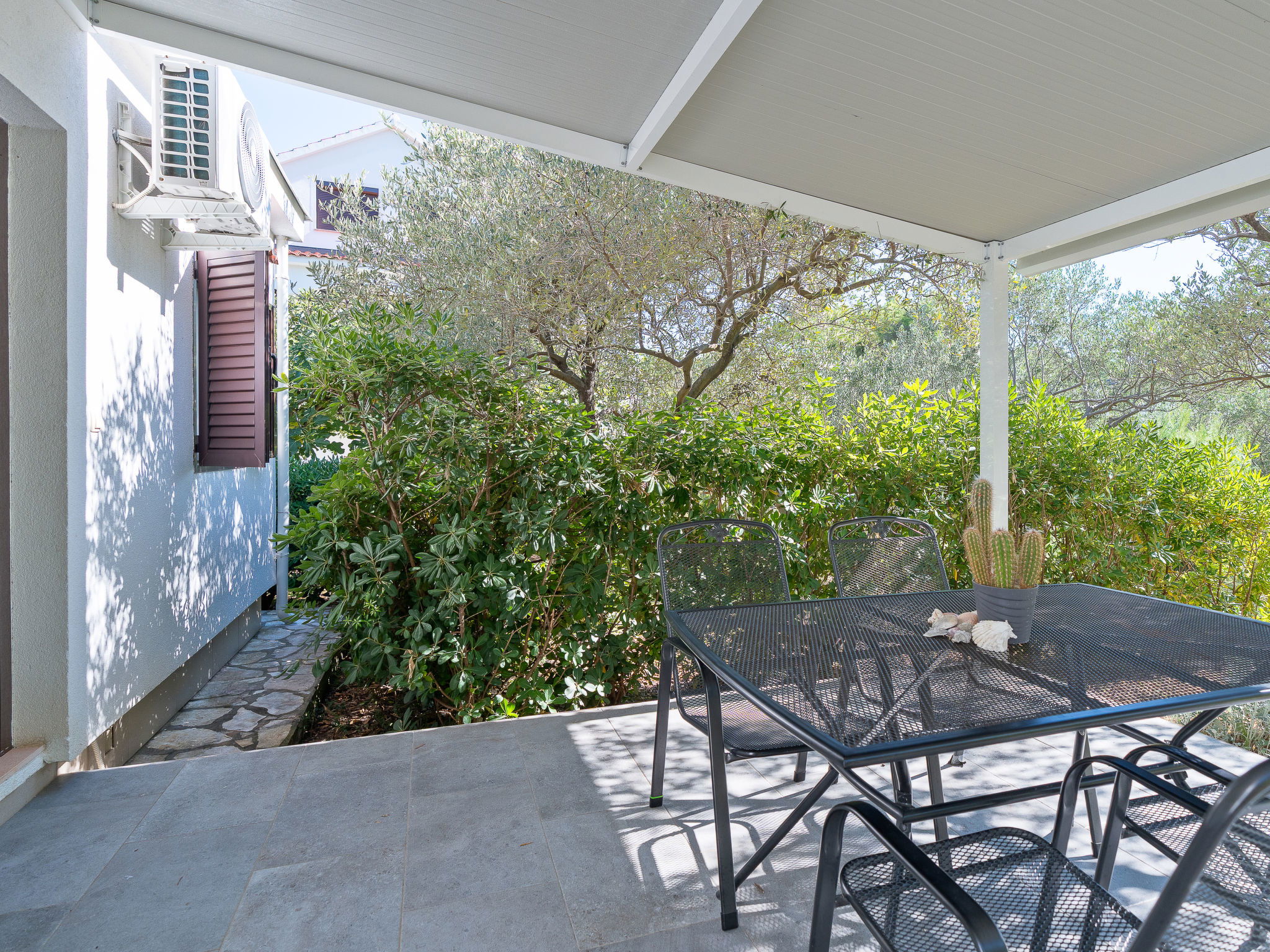 Belle, petite maison individuelle "Nikolina". En-dehors de la localité, à 1 km du centre de Vir, situation ensoleillée, à 400 m de la mer, à 400 m de la plage, dans la verdure. En commun: jardin avec plantes et arbres, verger, piscine rectangulaire (10 x 6 m, profondeur 150 - 170 cm, disponibilité saisonnière: 04.Mai. - 14.Sep.) avec marches intérieures. Douche extérieure, barbecue, espace de jeux pour les enfants. A usage privé: jardin avec pelouse. Infrastructures de la Maison: accès internet. Place de parking près de la maison sur le terrain. Magasins 500 m, restaurant 1 km, arrêt de bus 2.2 km, plage de galets 400 m. Située sur le même terrain que la maison HR4050.120.