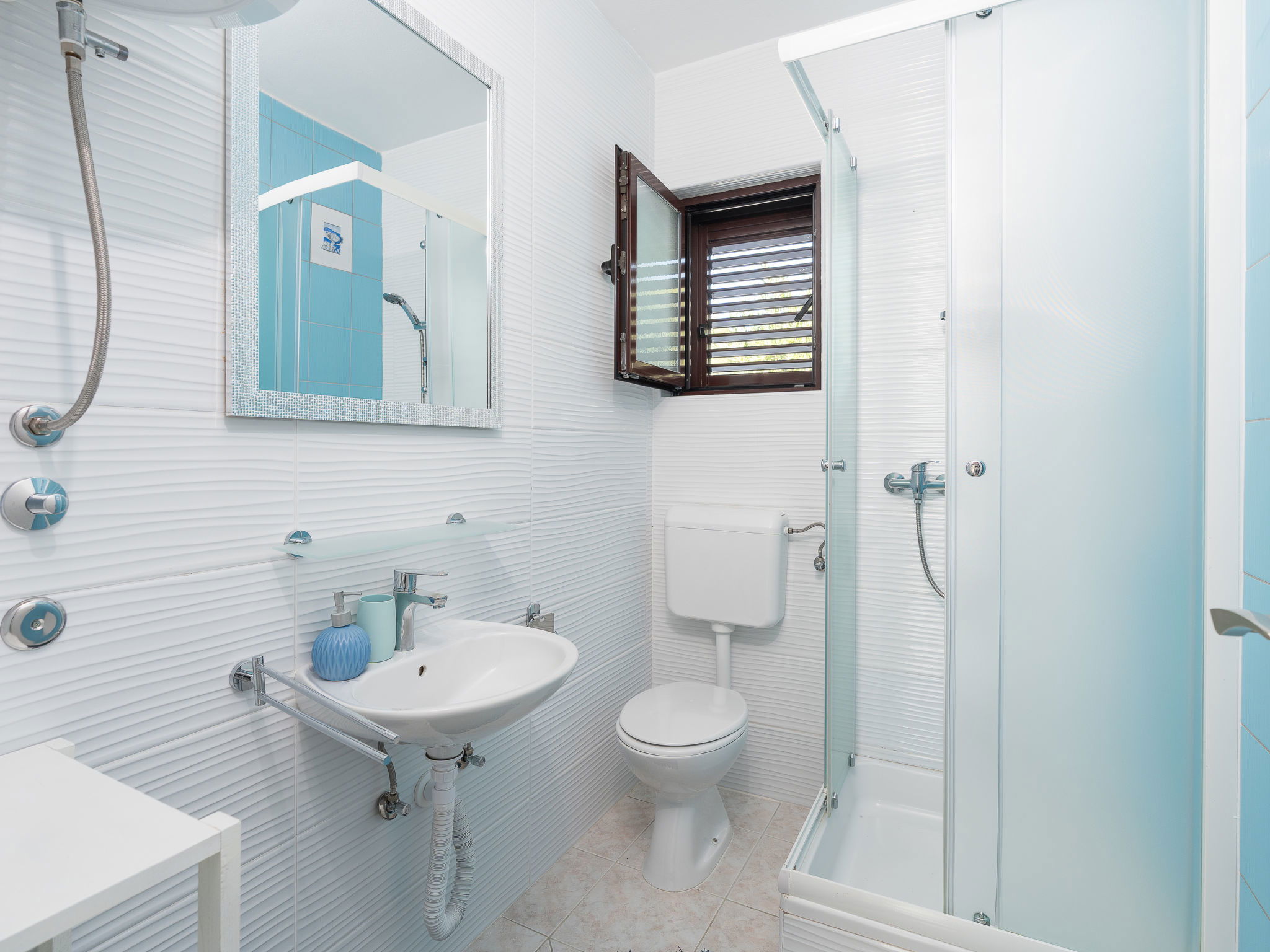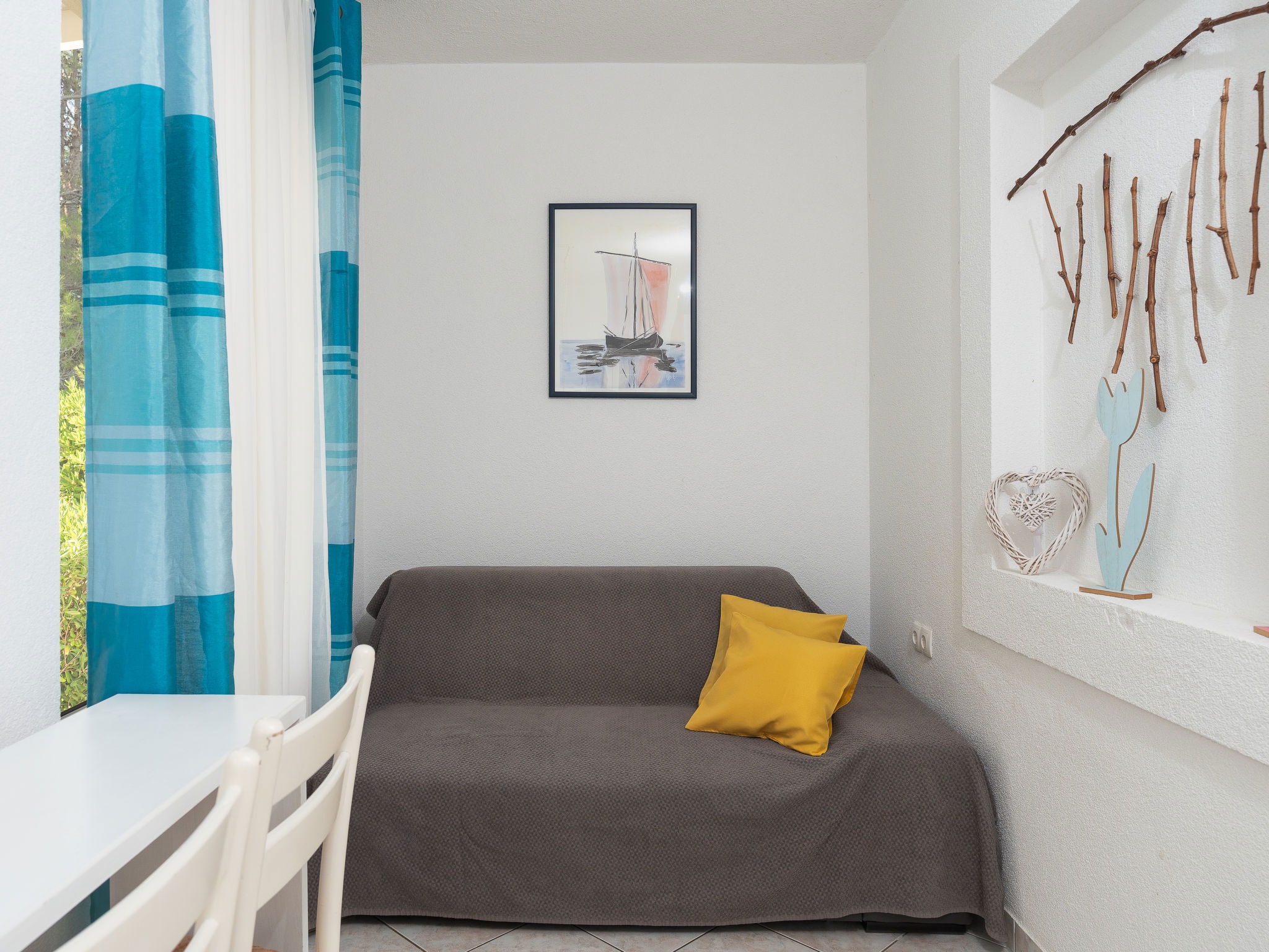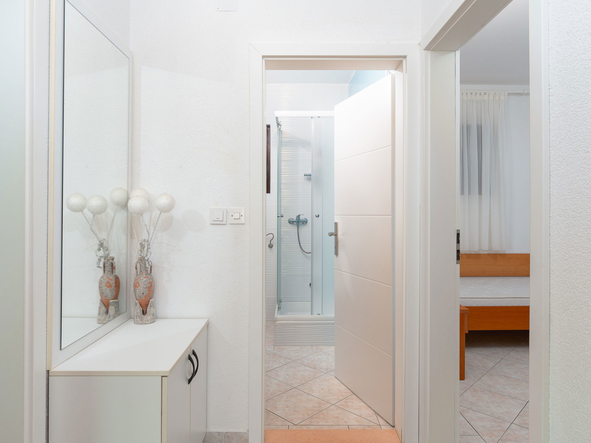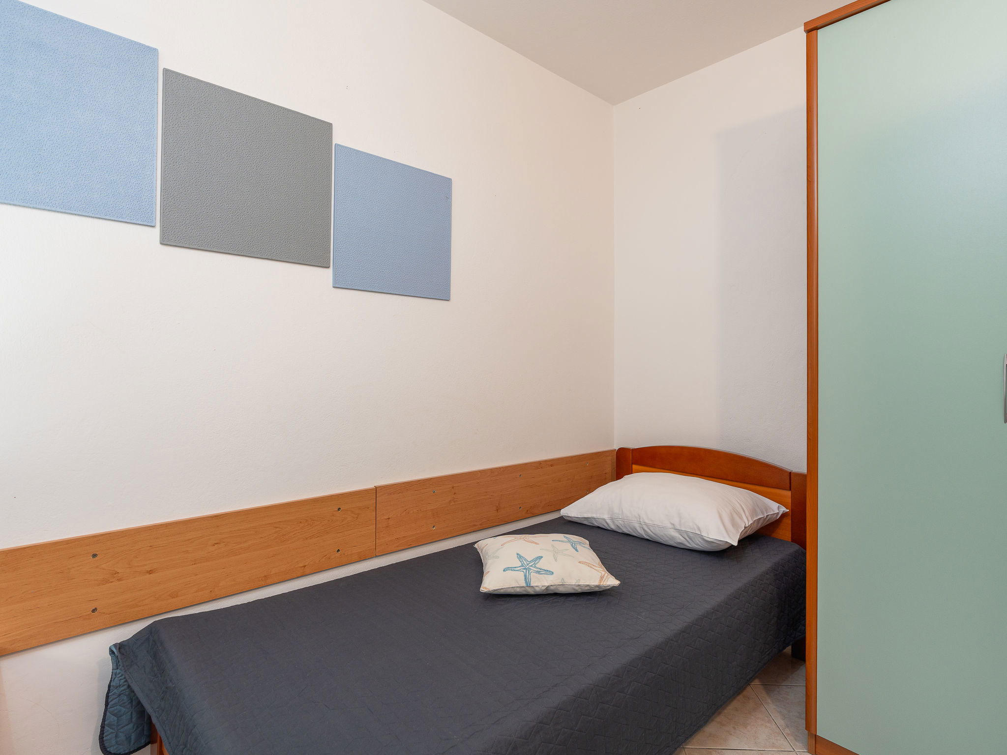 Belle, petite maison individuelle "Nikolina". En-dehors de la localité, à 1 km du centre de Vir, situation ensoleillée, à 400 m de la mer, à 400 m de la plage, dans la verdure. En commun: jardin avec plantes et arbres, verger, piscine rectangulaire (10 x 6 m, profondeur 150 - 170 cm, disponibilité saisonnière: 04.Mai. - 14.Sep.) avec marches intérieures. Douche extérieure, barbecue, espace de jeux pour les enfants. A usage privé: jardin avec pelouse. Infrastructures de la Maison: accès internet. Place de parking près de la maison sur le terrain. Magasins 500 m, restaurant 1 km, arrêt de bus 2.2 km, plage de galets 400 m. Située sur le même terrain que la maison HR4050.120.