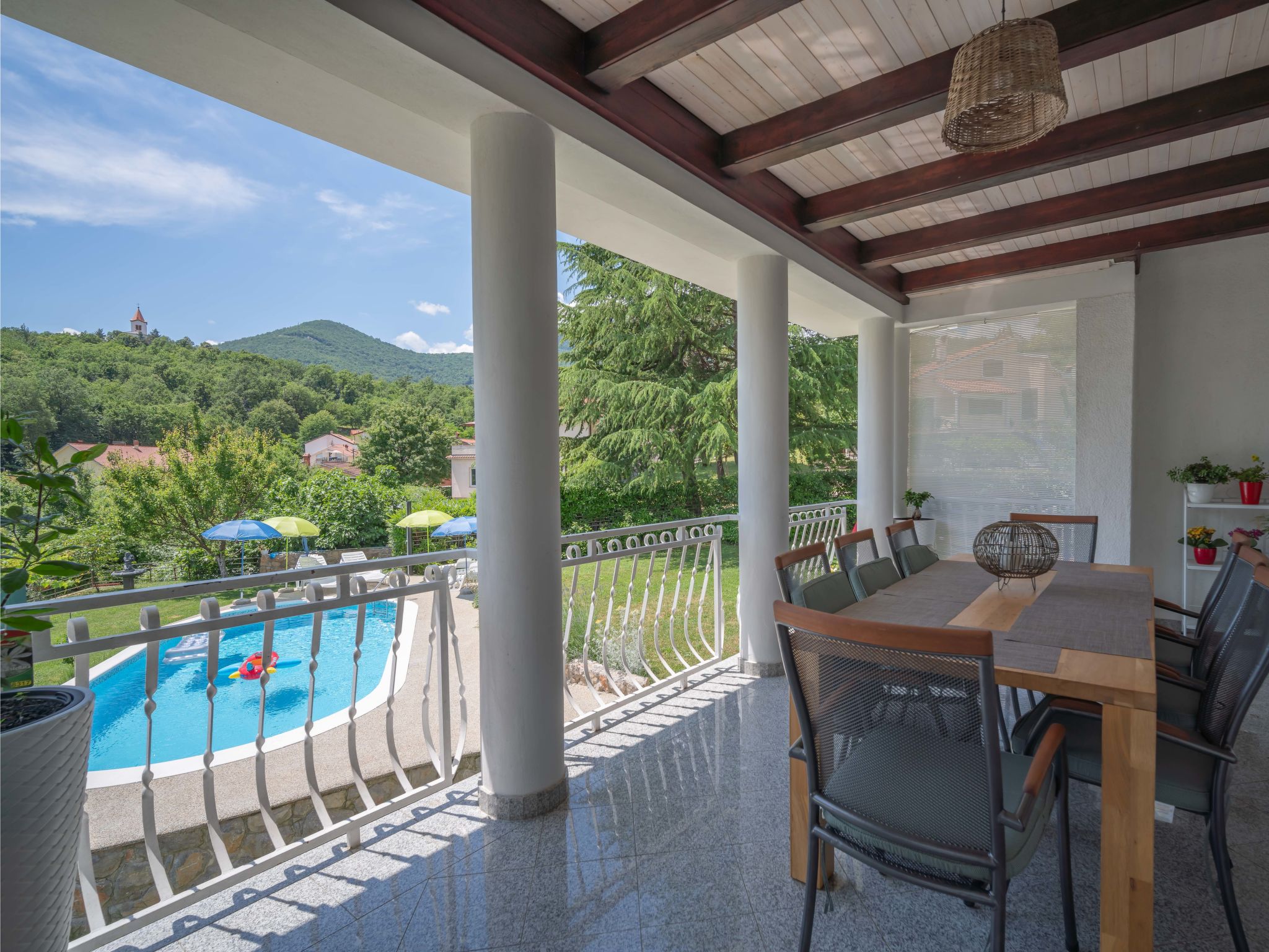 Maison jumelée "Zorica", de 2 étages. Dans le haut de la station d'Opatija, dans le hameau de Mihelići, à 1.7 km du centre de Matulji, à 5 km du centre d'Opatija, situation tranquille, ensoleillée, à 3.5 km de la mer, à 3.5 km de la plage, dans une impasse, dans la verdure. A usage privé: terrain 1'300 m2 avec pelouse 200 m2 plantes, piscine (32 m2, profondeur 140 cm, disponibilité saisonnière: 20.Avr. - 13.Oct.). Douche extérieure, terrasse (50 m2), meubles de jardin, barbecue. Infrastructures de la Maison: accès internet, lave-linge, sèche-linge. Place de parking (pour 3 voitures) près de la maison sur le terrain. Magasins 1.7 km, supermarché 1.7 km, restaurant 200 m, arrêt de bus 350 m, plage de graviers 3.5 km, plage bétonnée 3.5 km. L'organisation de soirées n'est pas autorisée. .