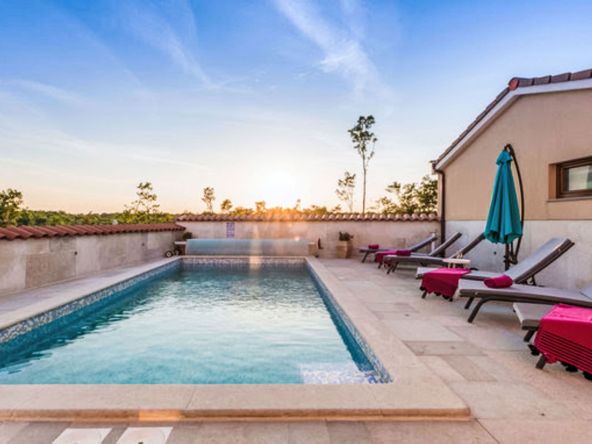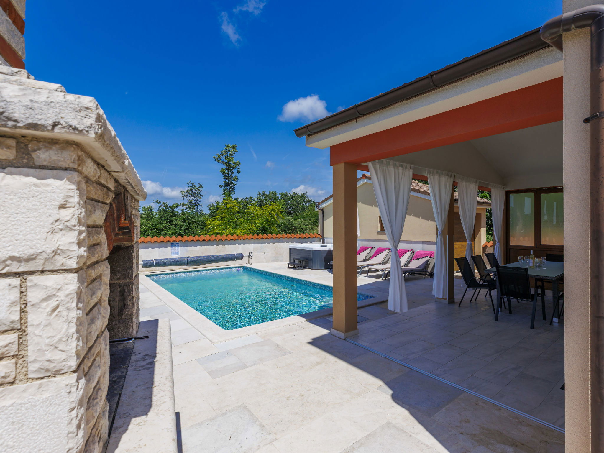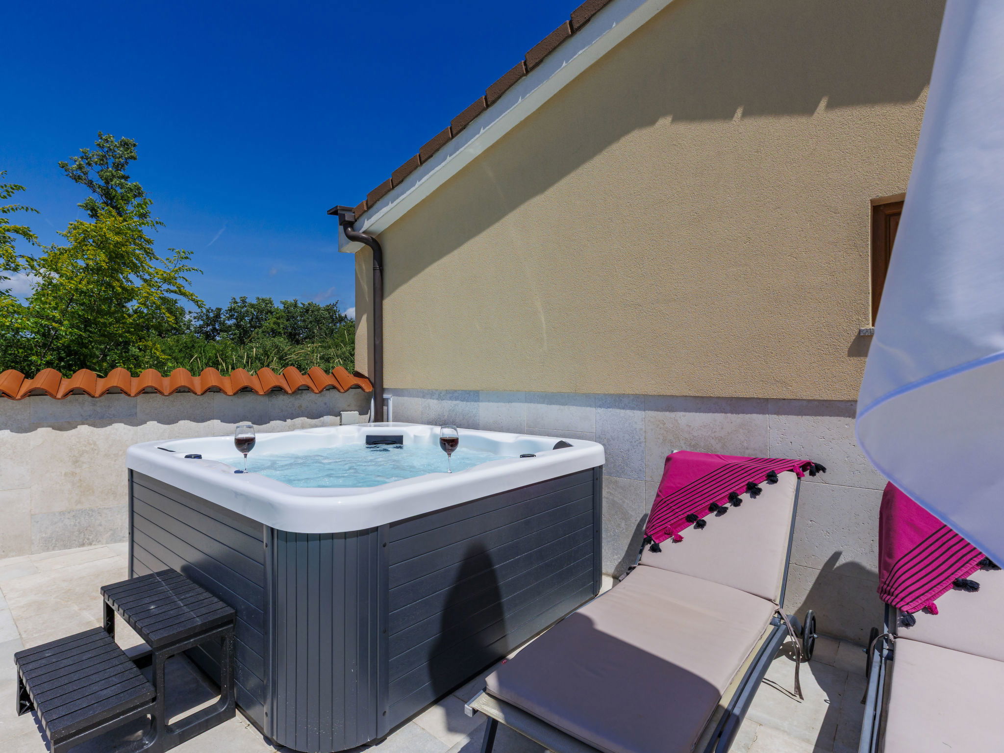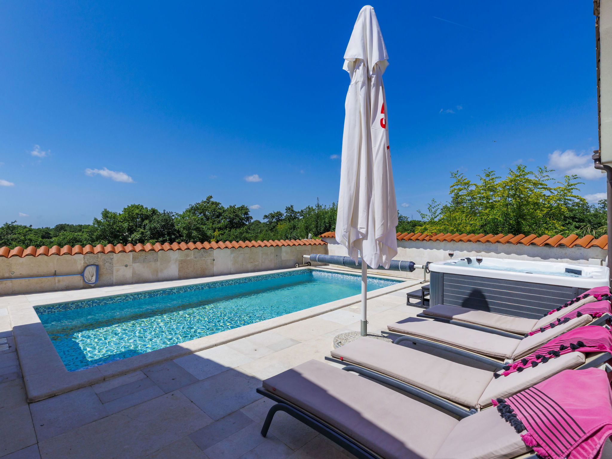 À 15 km de Pula: Maison individuelle accueillante "Manera". Dans le hameau de Krvavići, à 3 km du centre de Marčana, situation ensoleillée, à 10 km de la mer. A usage privé: terrain 400 m2 (clôturé), petit jardin avec pelouse, piscine rectangulaire, chauffée (8 x 4 m, profondeur 140 cm, disponibilité saisonnière: 01.Mar. - 01.Dec.) avec marches intérieures. Douche extérieure, bain à remous , terrasse (20 m2), barbecue, entretien de la piscine par le propriétaire/jardinier. Infrastructures de la Maison: accès internet. Place de parking (pour 4 voitures) près de la maison sur le terrain. Magasins 3 km, restaurant 3 km, arrêt de bus 3 km, plage de graviers 10 km, plage de rochers 10 km.