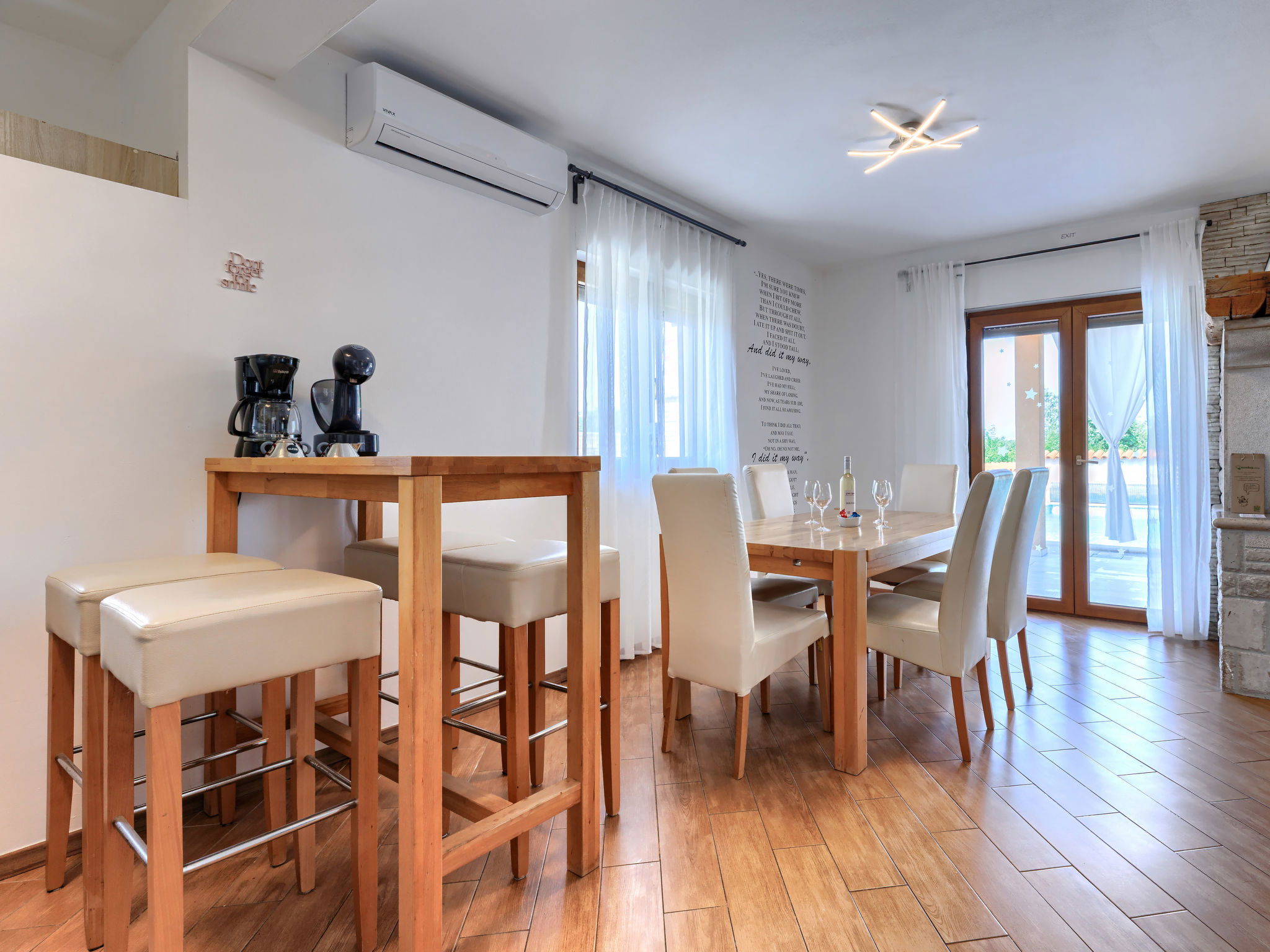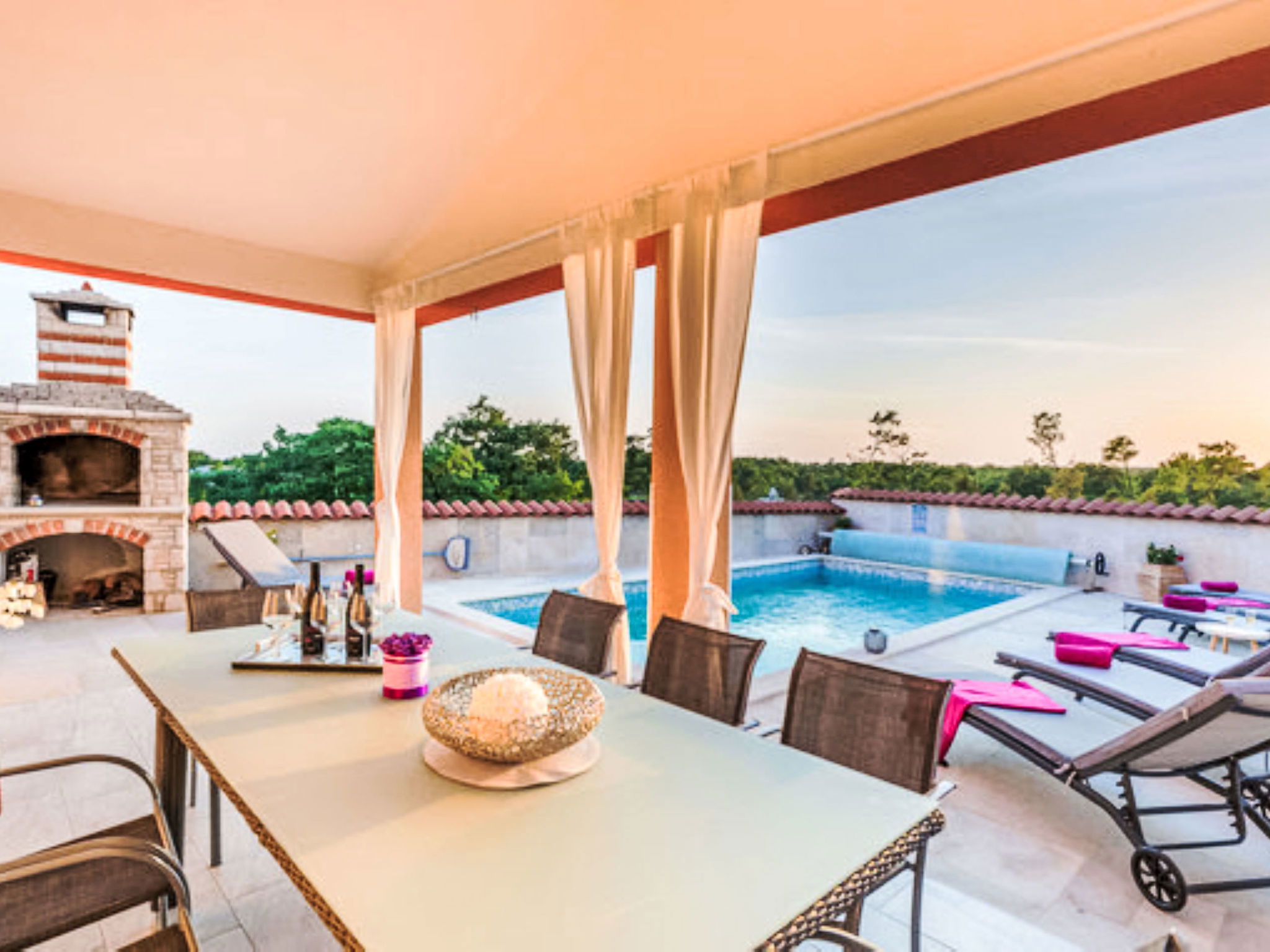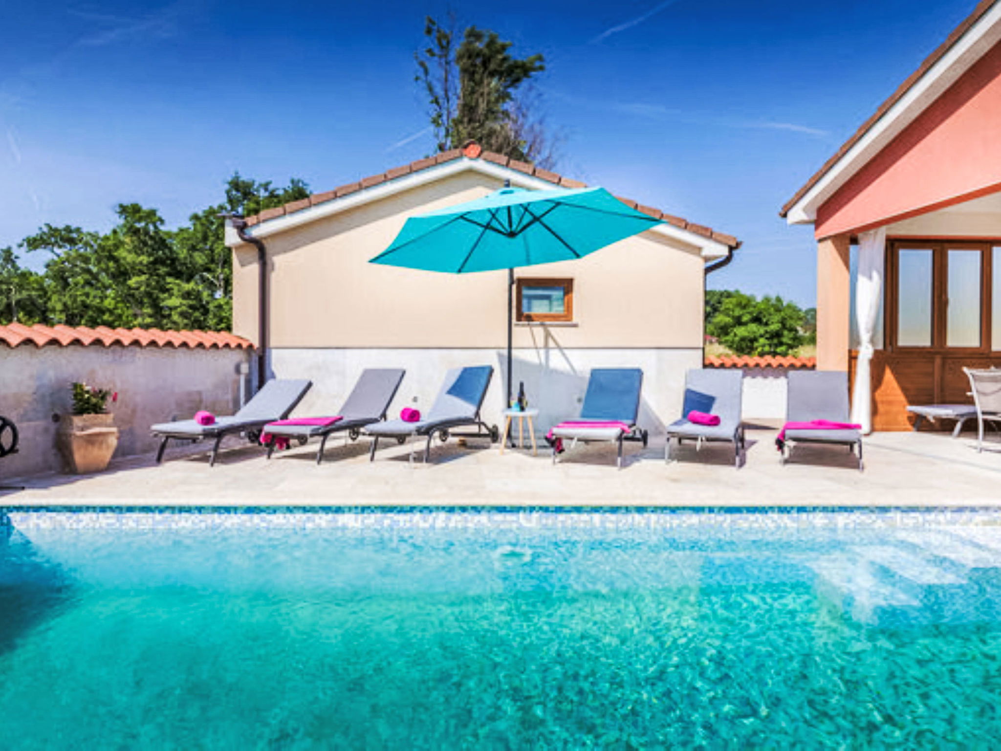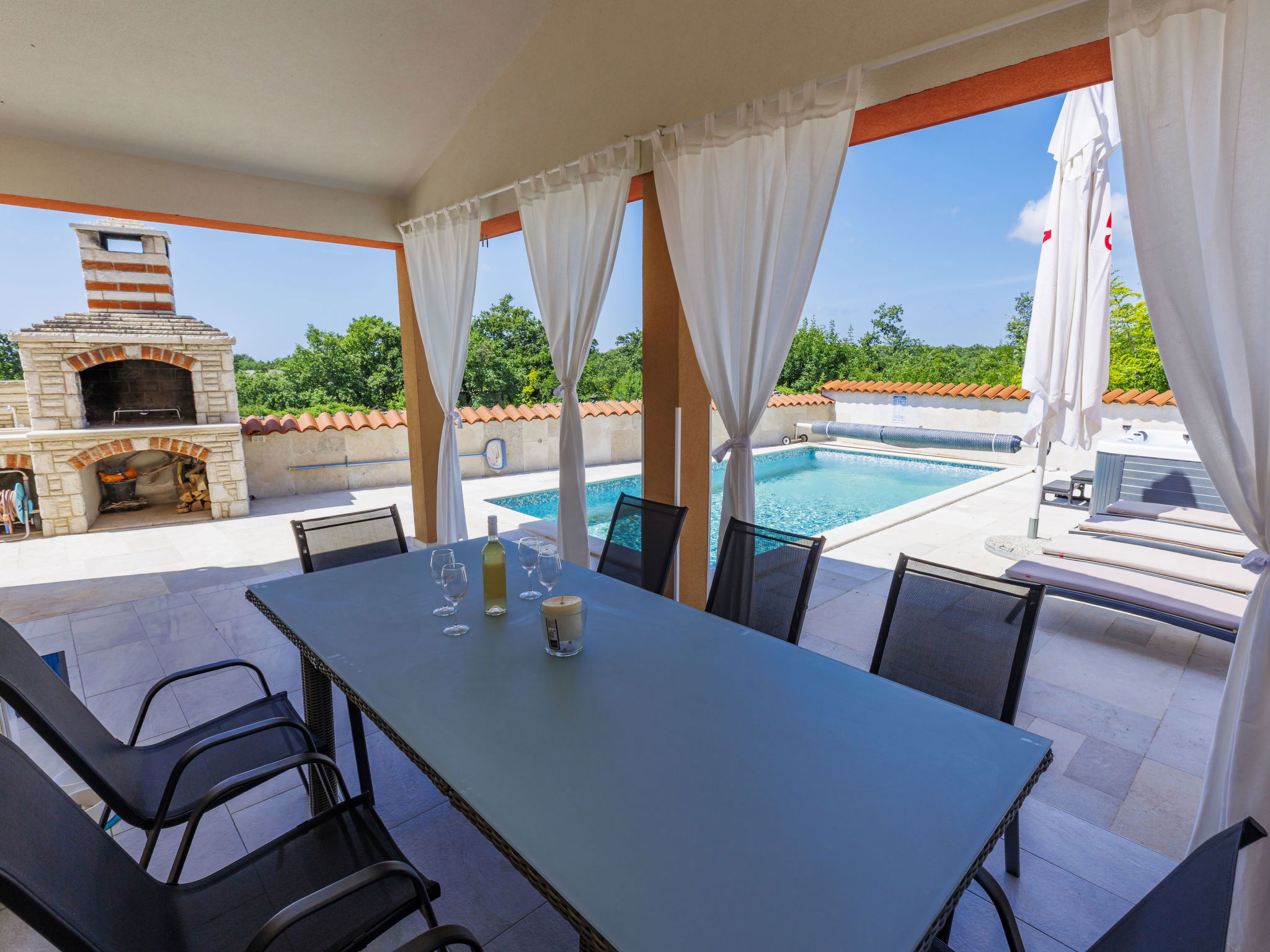 À 15 km de Pula: Maison individuelle accueillante "Manera". Dans le hameau de Krvavići, à 3 km du centre de Marčana, situation ensoleillée, à 10 km de la mer. A usage privé: terrain 400 m2 (clôturé), petit jardin avec pelouse, piscine rectangulaire, chauffée (8 x 4 m, profondeur 140 cm, disponibilité saisonnière: 01.Mar. - 01.Dec.) avec marches intérieures. Douche extérieure, bain à remous , terrasse (20 m2), barbecue, entretien de la piscine par le propriétaire/jardinier. Infrastructures de la Maison: accès internet. Place de parking (pour 4 voitures) près de la maison sur le terrain. Magasins 3 km, restaurant 3 km, arrêt de bus 3 km, plage de graviers 10 km, plage de rochers 10 km.