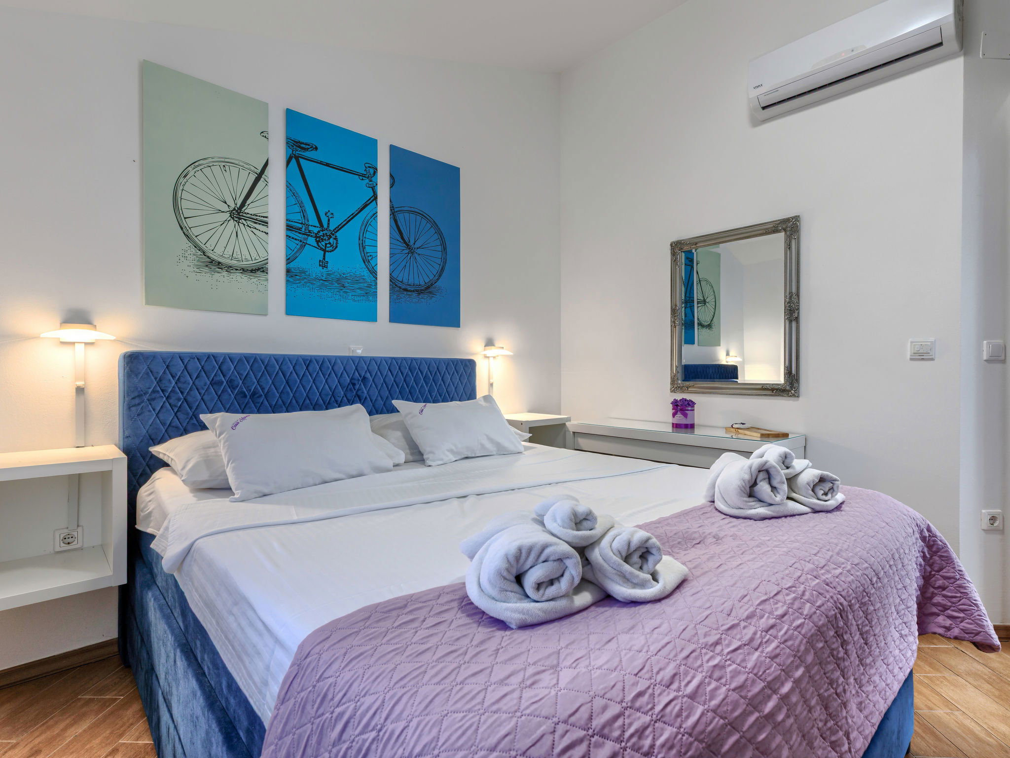 Maison 5 pièces 160 m2 sur 2 niveaux. Séjour/salle à manger avec TV (satellite) (écran plat), air-conditionné. Sortie sur la terrasse, sur la piscine. 1 chambre avec 1 grand-lit (140 cm, longueur 200 cm), TV (satellite) (écran plat), air-conditionné. Cuisine ouverte (four, lave-vaisselle, 4 plaques vitrocéramiques, grille-pain, bouilloire électrique, micro-ondes, congélateur, cafetière électrique). Douche/WC. À l'étage supérieur: 2 chambres, chaque chambre avec: 1 grand-lit (160 cm, longueur 200 cm), TV (satellite) (écran plat), air-conditionné. 1 chambre avec 1 grand-lit (160 cm, longueur 200 cm), TV (satellite) (écran plat), air-conditionné. Sortie sur la terrasse. Terrasse 5 m2, couverte. Vue sur les alentours. A disposition: lave-linge, sèche-linge, sèche-cheveux. Internet (Connexion WIFI, gratuit). Maximum 3 animaux/ chiens autorisés.
