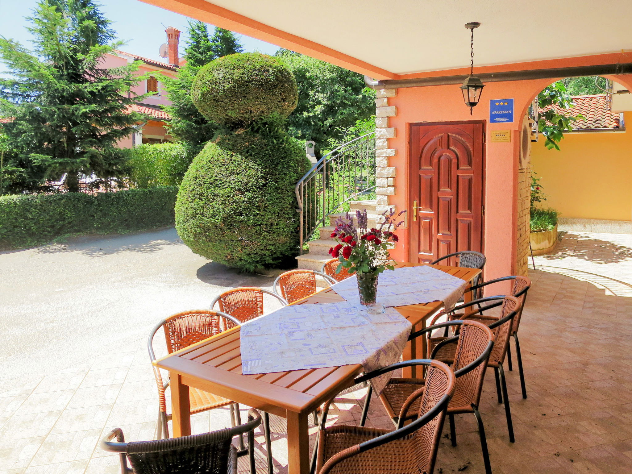 Maison mitoyenne "Edi", de 2 étages. À 25 km du centre de Rovinj, à 1.4 km du centre de Žminj, situation isolée, à 20 km de la mer, dans la verdure. En commun: terrain 1'500 m2 avec arbres. A usage privé: piscine (10 x 5 m, profondeur 120 cm, disponibilité saisonnière: 15.Mai. - 07.Oct.). Douche extérieure, terrasse, barbecue. Infrastructures de la Maison: accès internet, lave-linge. Place de parking sur le terrain. Magasins 1.4 km, restaurant 1.4 km, arrêt de bus 1.6 km, plage de graviers 25 km. Marina 25 km, tennis 1 km, centre équestre 3 km. Veuillez noter: la propriété référencée HR2500.714.1 est située sur le même terrain.