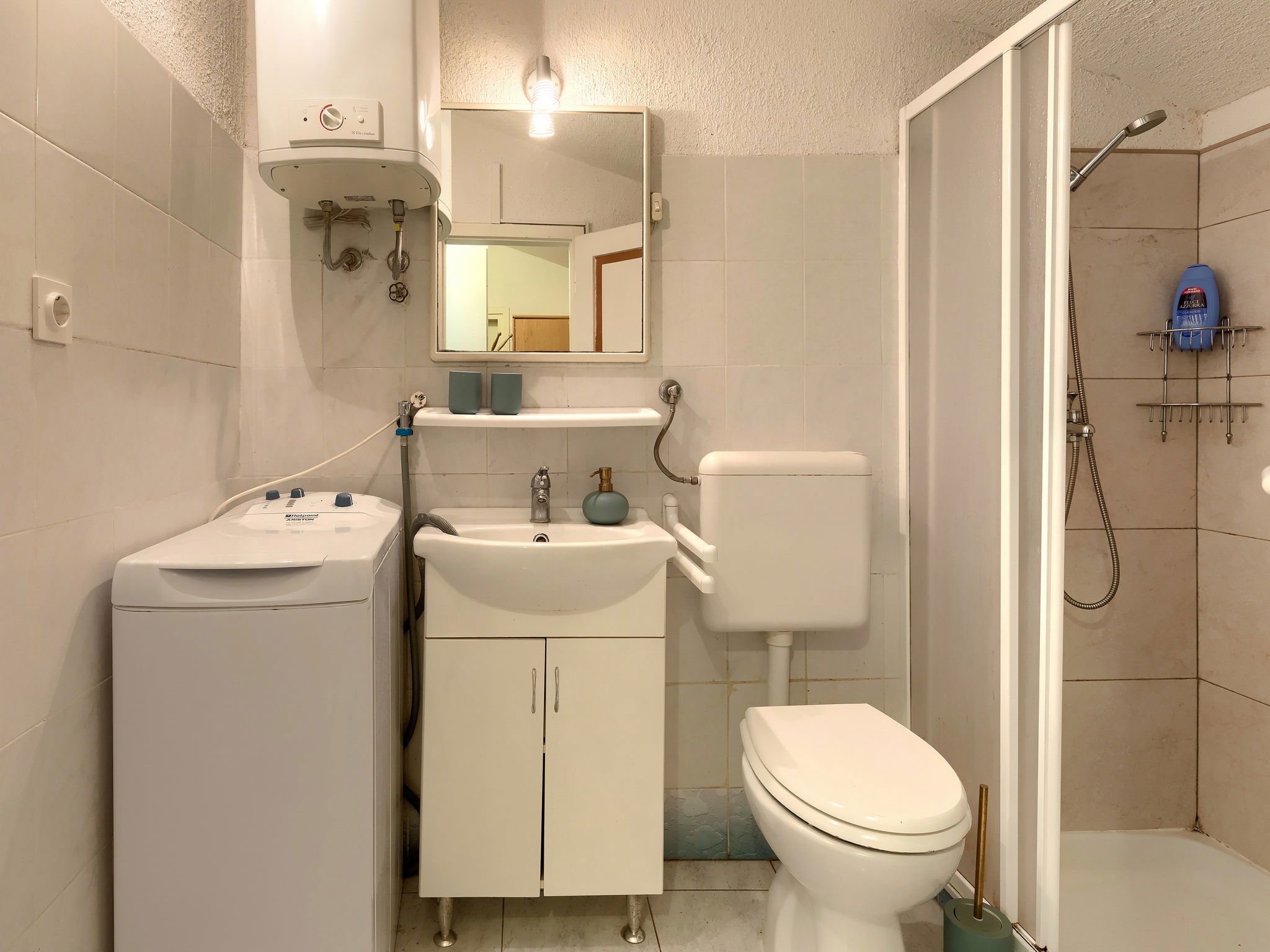 Maison 3 pièces 60 m2 sur 2 niveaux. Séjour/salle à manger avec cheminée (uniquement à titre de décoration), TV (satellite) (écran plat), DVD. Cuisine ouverte (2 plaques de cuisson, four, lave-vaisselle, 2 feux, grille-pain, bouilloire électrique, congélateur, cafetière électrique). Douche/WC. À l'étage supérieur: entrée, hauteur plafond 185 cm avec air-conditionné. 2 chambres, mansardées hauteur plafond 120 - 185 cm, chaque chambre avec: 2 lits. Pas de chauffage. 2 terrasses. Meubles de terrasse, chaises longues, réduit. A disposition: fer à repasser. Internet (Connexion WIFI, gratuit). Veuillez noter: maison non-fumeur. Maximum 1 animal/ chien de petite taille autorisé.