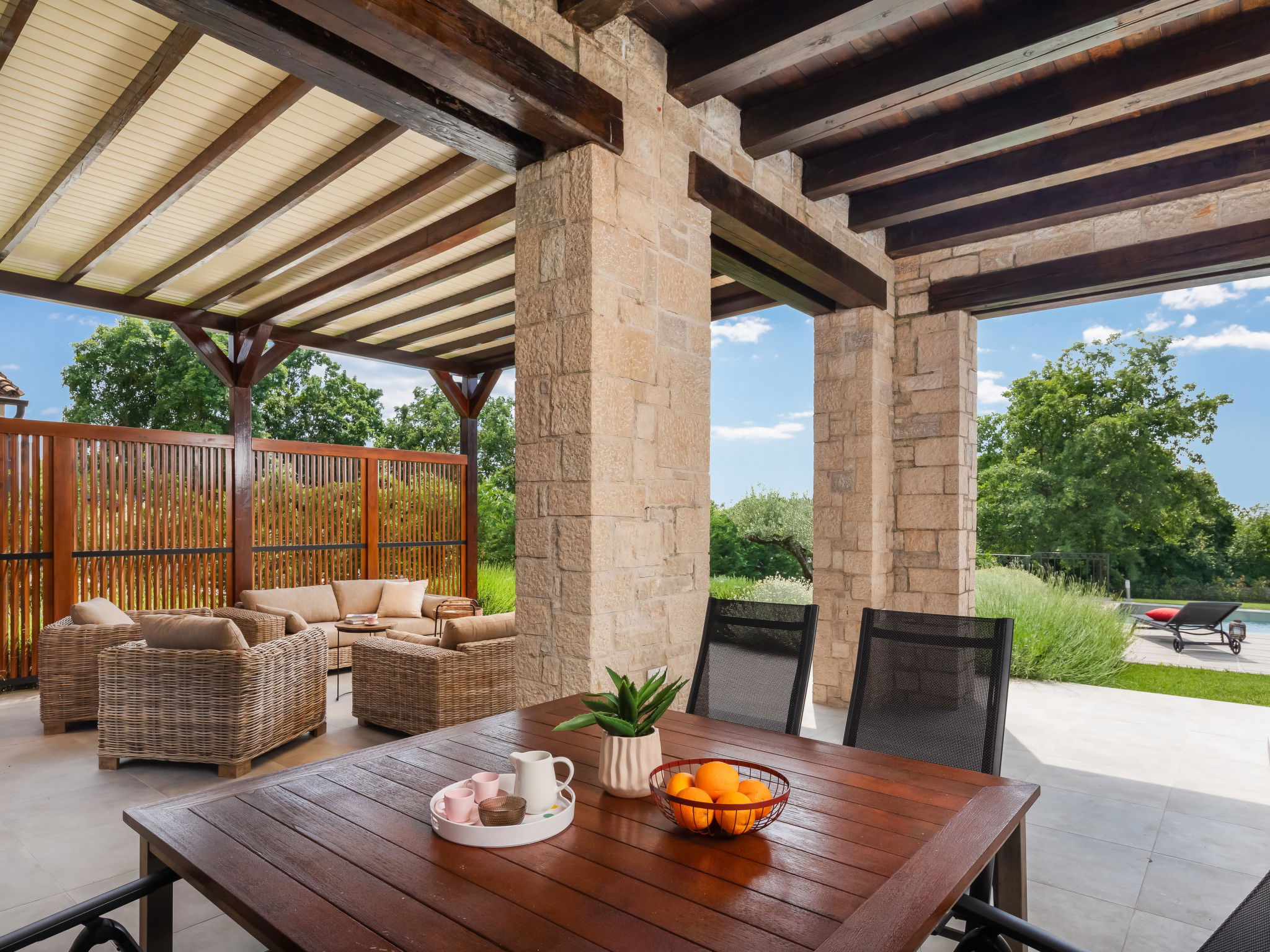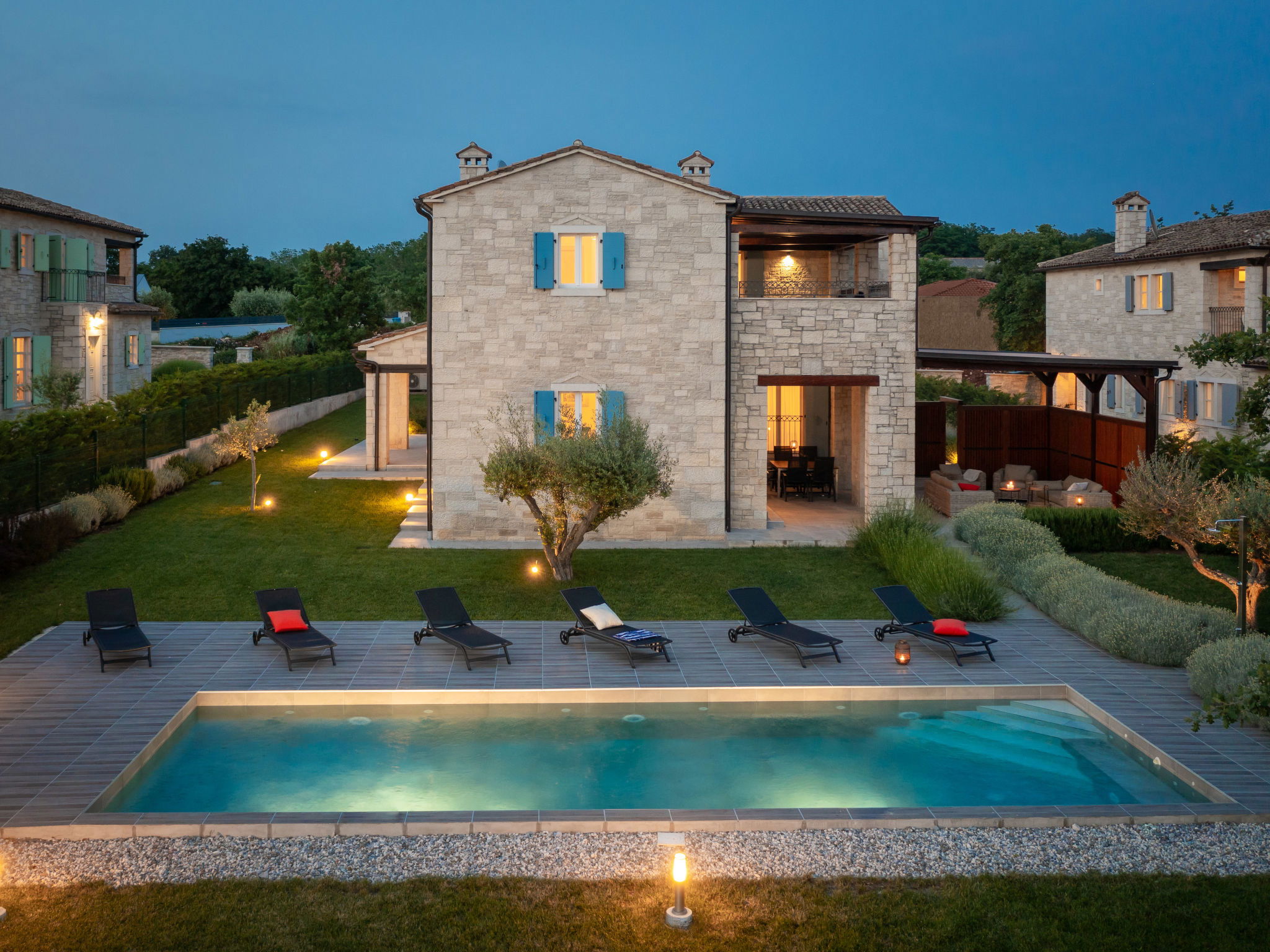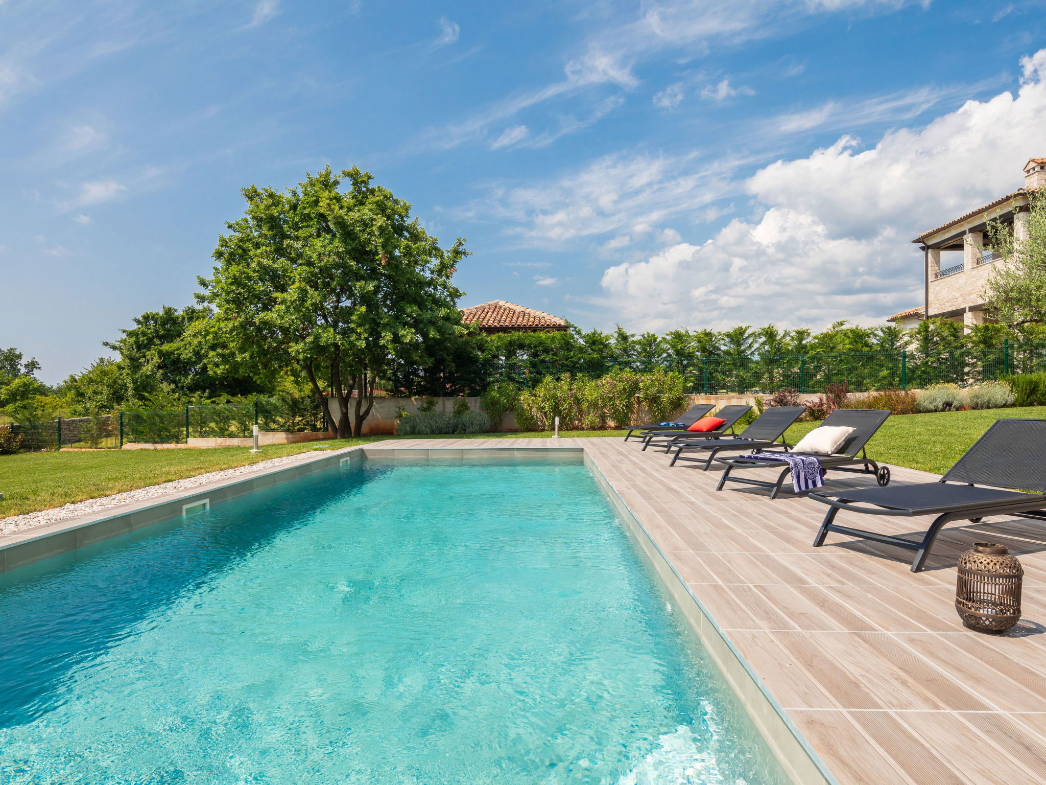 Sv. Lovreč à 12 km de Poreč: Belle maison "Villa Grando II", de 2 étages. Dans le hameau de Mofardini, à 4.4 km du centre de Sv. Lovreč, situation ensoleillée, à 20 km de la mer. A usage privé: terrain 1'400 m2 (clôturé) avec pelouse, piscine rectangulaire, chauffée (40 m2, profondeur 160 cm, disponibilité saisonnière: 01.Mai. - 01.Nov.) avec marches intérieures. Douche extérieure, terrasse (20 m2), meubles de jardin, barbecue. Infrastructures de la Maison: accès internet, lave-linge. Place de parking (pour 2 voitures) près de la maison sur le terrain. Magasins 3.5 km, supermarché 3.5 km, restaurant 2 km, arrêt de bus 300 m, plage de graviers 20 km. Veuillez noter: Aéroport 45 km de la maison. Piscine chauffée (en sus).
