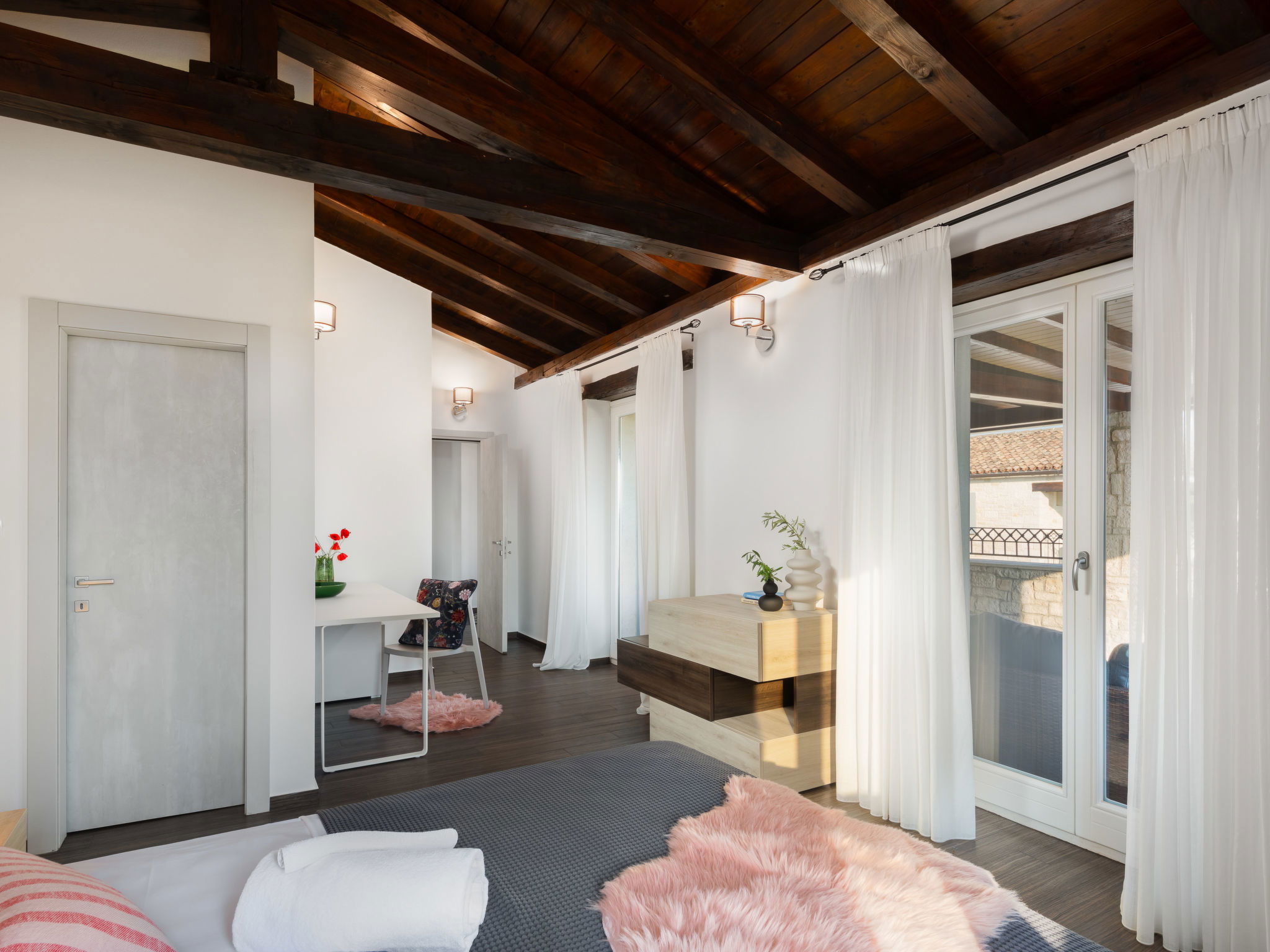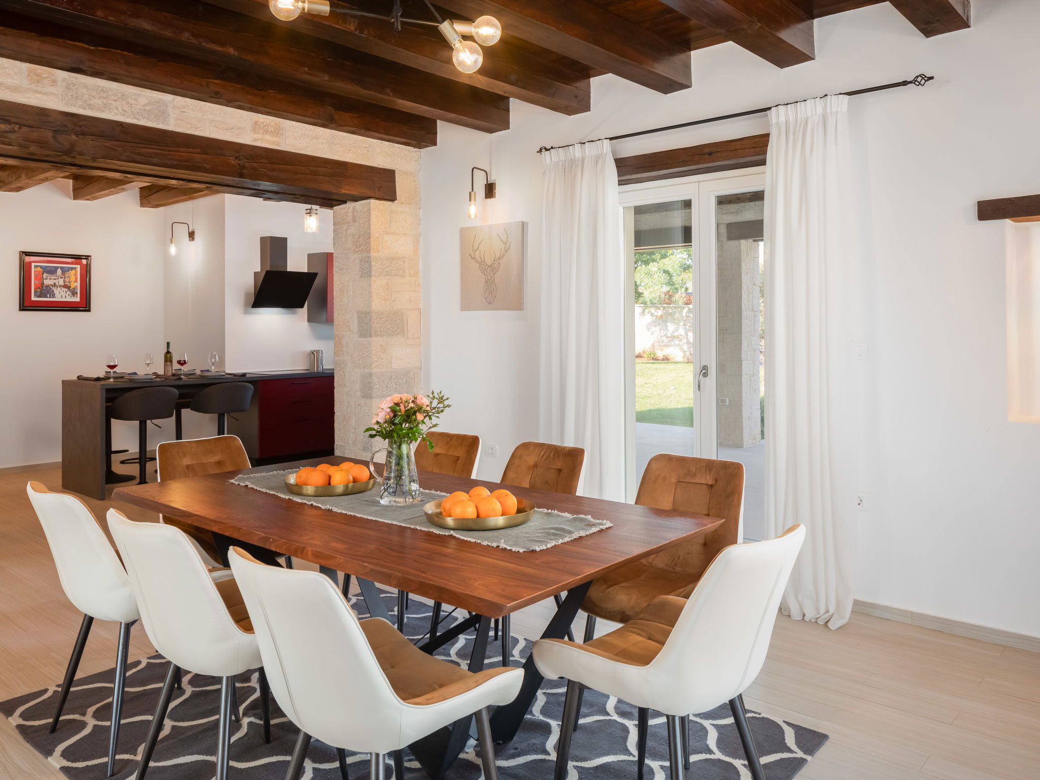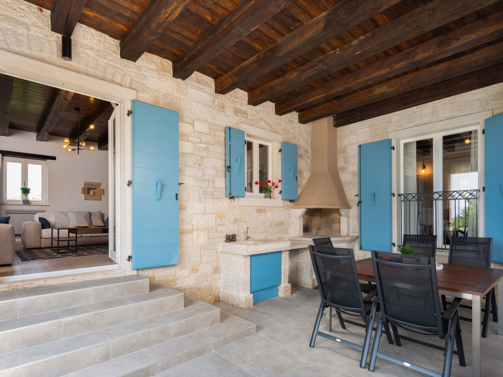 Sv. Lovreč à 12 km de Poreč: Belle maison "Villa Grando II", de 2 étages. Dans le hameau de Mofardini, à 4.4 km du centre de Sv. Lovreč, situation ensoleillée, à 20 km de la mer. A usage privé: terrain 1'400 m2 (clôturé) avec pelouse, piscine rectangulaire, chauffée (40 m2, profondeur 160 cm, disponibilité saisonnière: 01.Mai. - 01.Nov.) avec marches intérieures. Douche extérieure, terrasse (20 m2), meubles de jardin, barbecue. Infrastructures de la Maison: accès internet, lave-linge. Place de parking (pour 2 voitures) près de la maison sur le terrain. Magasins 3.5 km, supermarché 3.5 km, restaurant 2 km, arrêt de bus 300 m, plage de graviers 20 km. Veuillez noter: Aéroport 45 km de la maison. Piscine chauffée (en sus).
