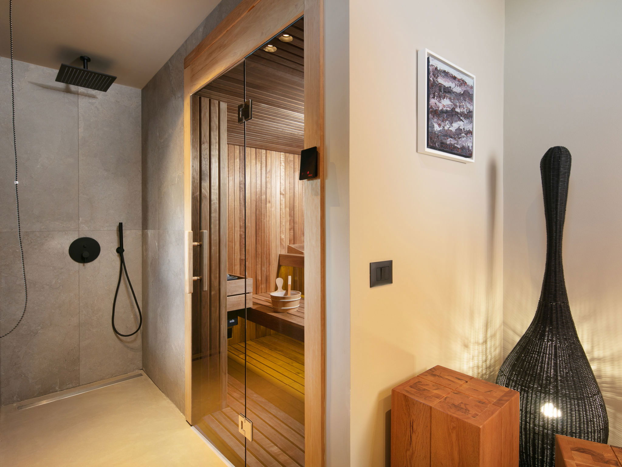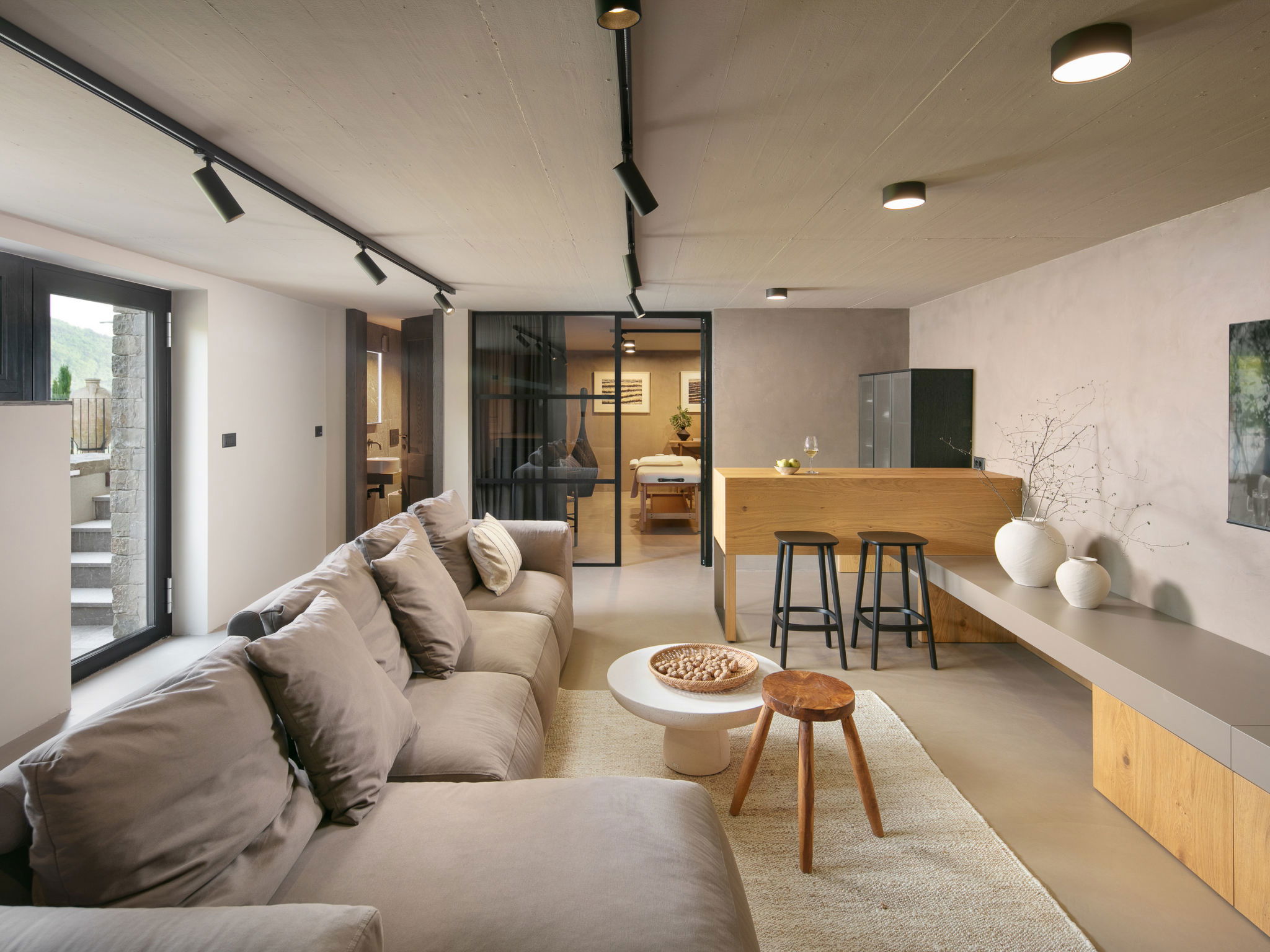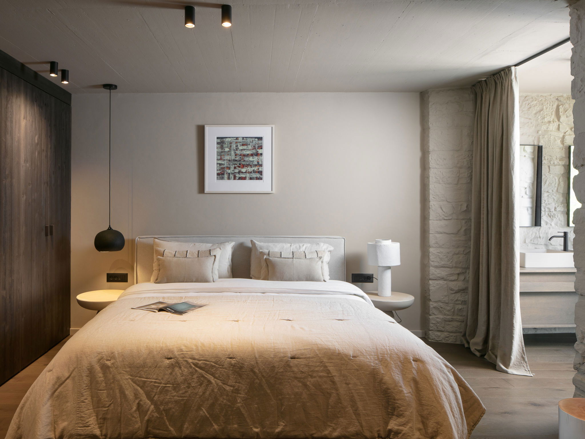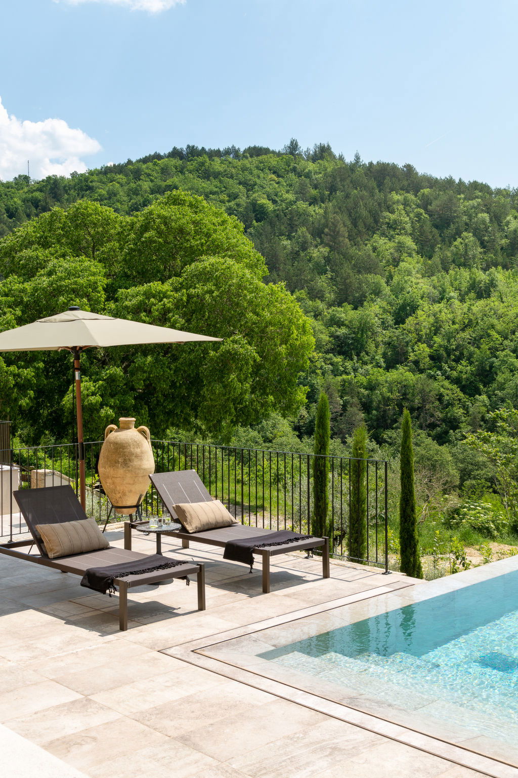 Villa 5 pièces 270 m2 sur 3 niveaux. Séjour/salle à manger avec TV (satellite). Sortie sur la terrasse, sur la piscine. 1 chambre avec 1 grand-lit (180 cm, longueur 200 cm), bain/douche/WC et TV (satellite). Sortie sur le balcon. Cuisine ouverte (four, lave-vaisselle, 6 plaques à induction, grille-pain, bouilloire électrique, micro-ondes, congélateur, cafetière électrique). WC séparé. À l'étage inférieur: séjour avec TV (satellite). Sortie sur la terrasse. 1 chambre avec 1 grand-lit (180 cm, longueur 200 cm), douche/WC, double vasque et TV (satellite). Sortie sur la terrasse. WC séparé. À l'étage supérieur: 1 chambre avec 2 lits (90 cm, longueur 200 cm), TV (satellite). Douche/WC. Balcon 4 m2, terrasse 10 m2. Meubles de terrasse, chaises longues. Vue sur les alentours. A disposition: coffre-fort, chaise haute pour enfant, lit bébé, sèche-cheveux. Internet (Connexion WIFI, gratuit). Veuillez noter: maison non-fumeur.