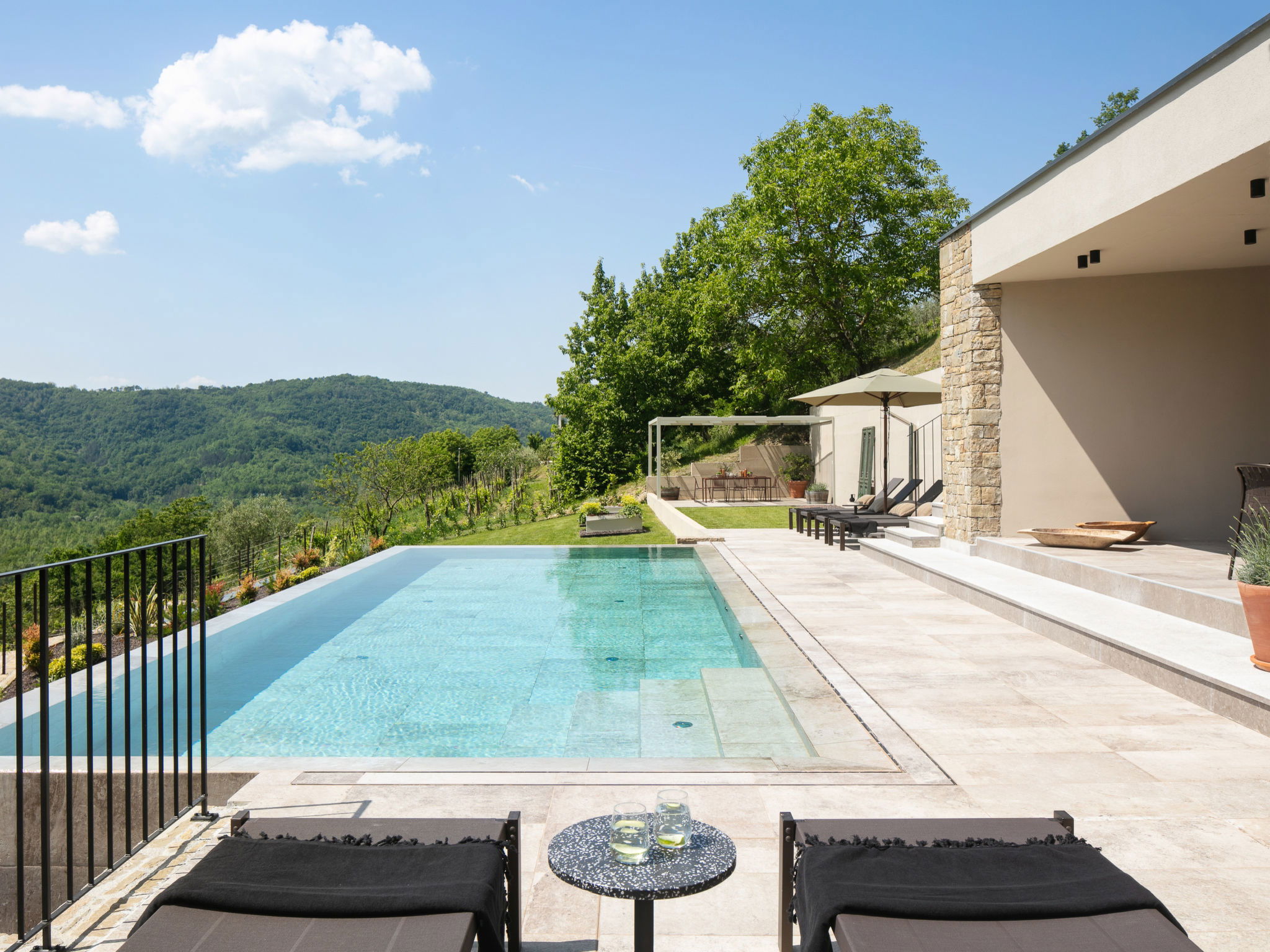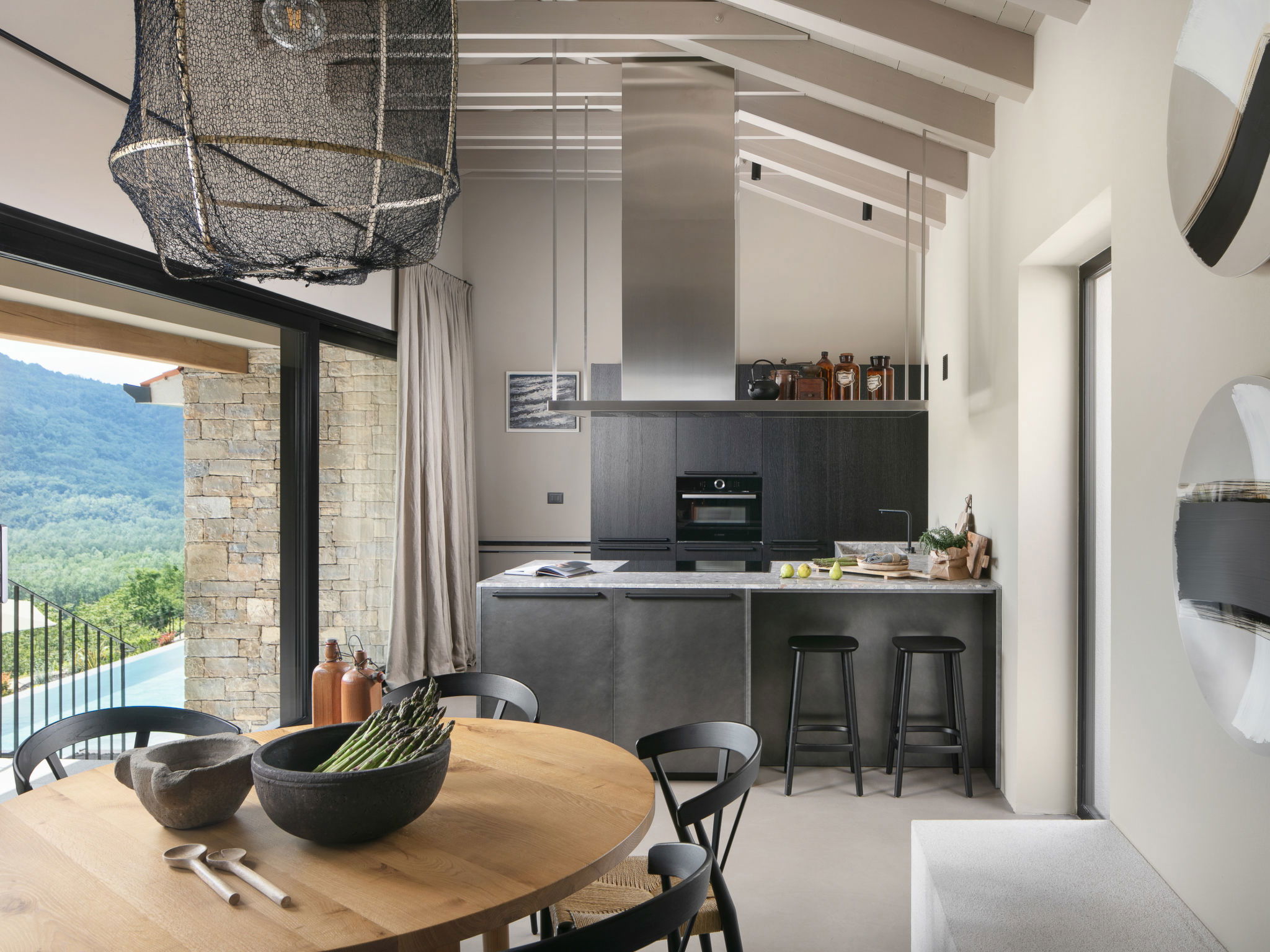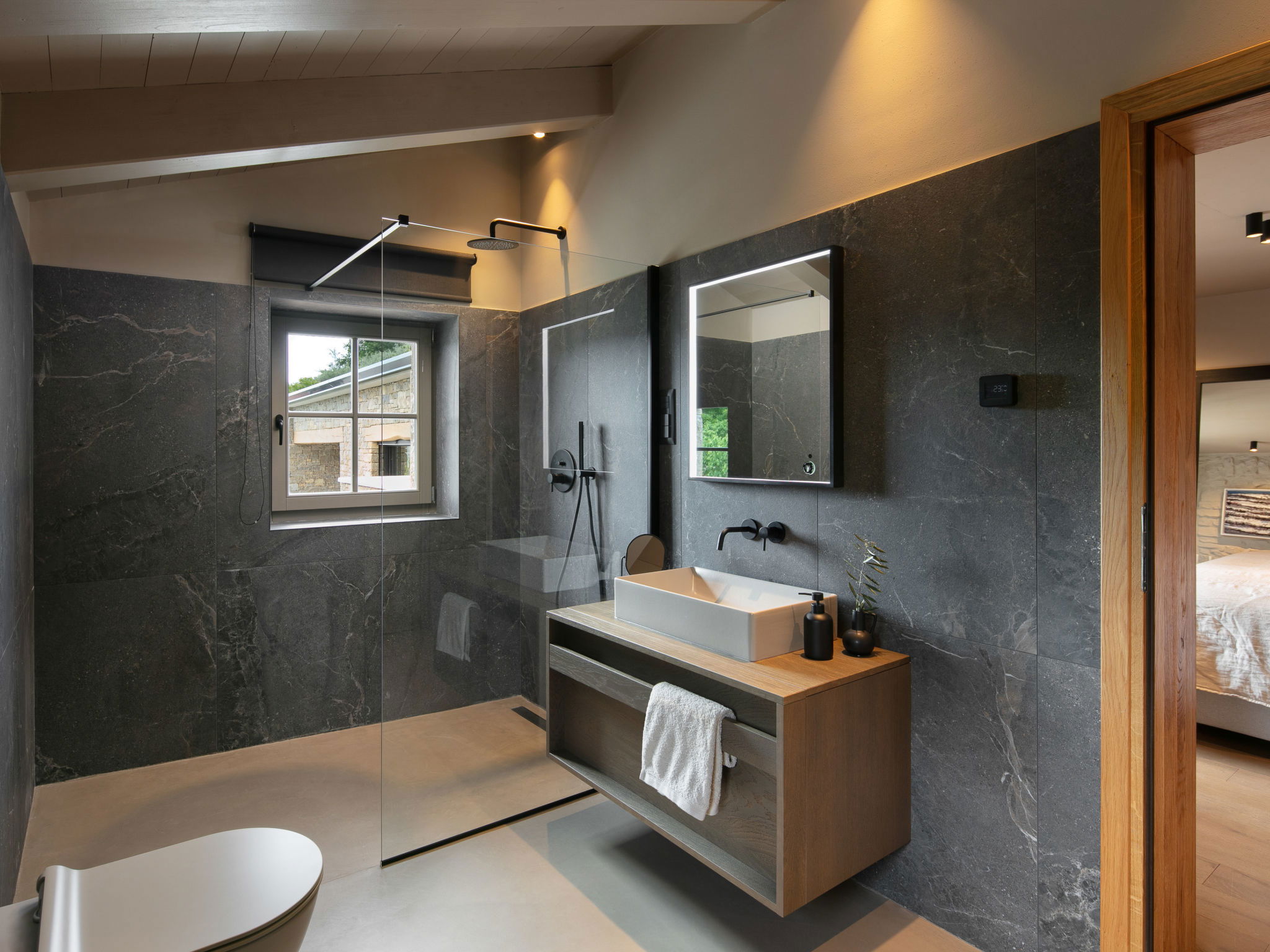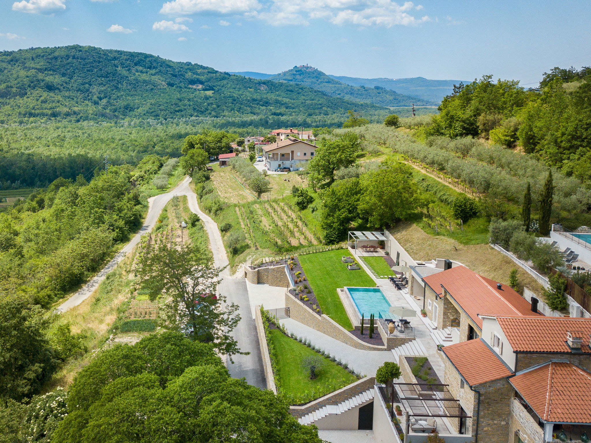 Belle villa "Panorama del Tartufo", de 3 étages, rénovée en 2023. Dans le hameau de Žugani, à 8 km du centre de Motovun, situation tranquille, ensoleillée sur un versant, à 30 km de la mer, dans la verdure. A usage privé: terrain 1'200 m2, jardin avec pelouse, piscine rectangulaire (10 x 4 m, profondeur 140 cm, disponibilité saisonnière: 01.Mai. - 30.Sep.) avec marches intérieures. Douche/WC dans l'espace piscine, douche extérieure, terrasse (50 m2), meubles de jardin, barbecue. Infrastructures de la Maison: accès internet, sauna, salle de relaxation, salle de jeux, baby foot, trampoline, chauffage central, air-conditionné, lave-linge. Place de parking (pour 3 voitures) près de la maison sur le terrain. Magasins 8 km, supermarché 15 km, centre commercial 26 km, restaurant 4 km, arrêt de bus 12 km, gare ferroviaire 14 km, plage de graviers 30 km, plage de rochers 30 km, centre thermal 7 km. Chemins de randonnées pédestres depuis la maison 50 m. Le propriétaire n'accepte pas les groupes de jeunes. Veuillez noter: Aéroport 50 km de la maison. Massage (en sus) sur demande.