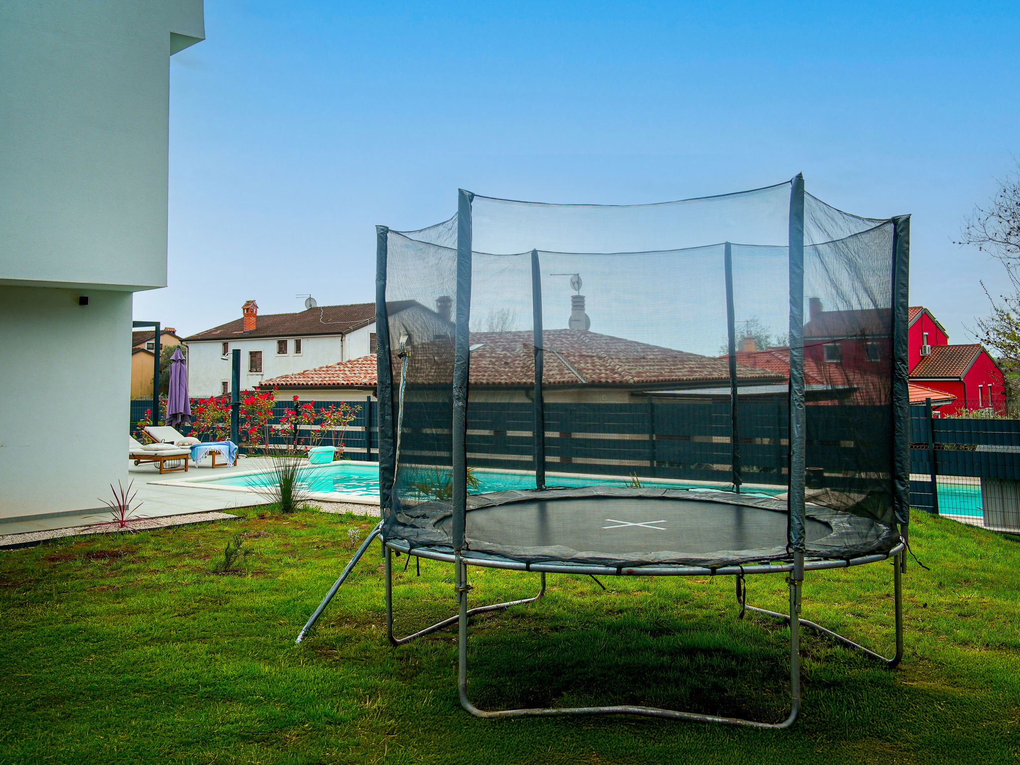 Villa moderne, confortable "Villa Noel", de 2 étages. Dans le hameau de Valica, à 6 km du centre d'Umag, à 1.2 km de la mer, à 1.2 km de la plage. A usage privé: terrain 600 m2, piscine rectangulaire (9 x 4 m, profondeur 150 cm, disponibilité saisonnière: 01.Mai. - 01.Oct.). Douche extérieure, ping-pong, entretien de la piscine par le propriétaire/jardinier. Infrastructures de la Maison: Connexion WIFI, billard, trampoline, lave-linge. Place de parking (pour 2 voitures) près de la maison sur le terrain. Arrêt de bus 6.6 km.