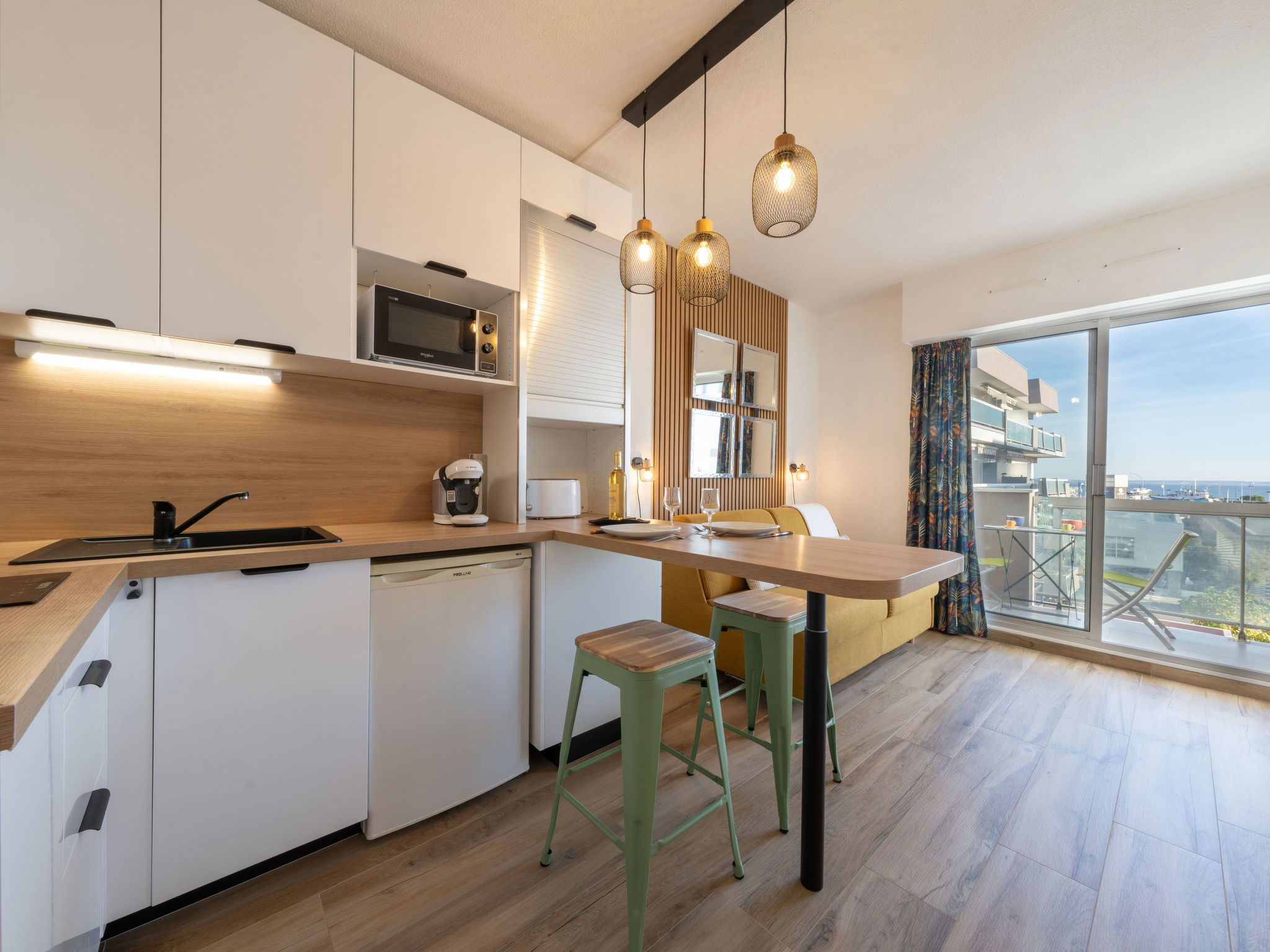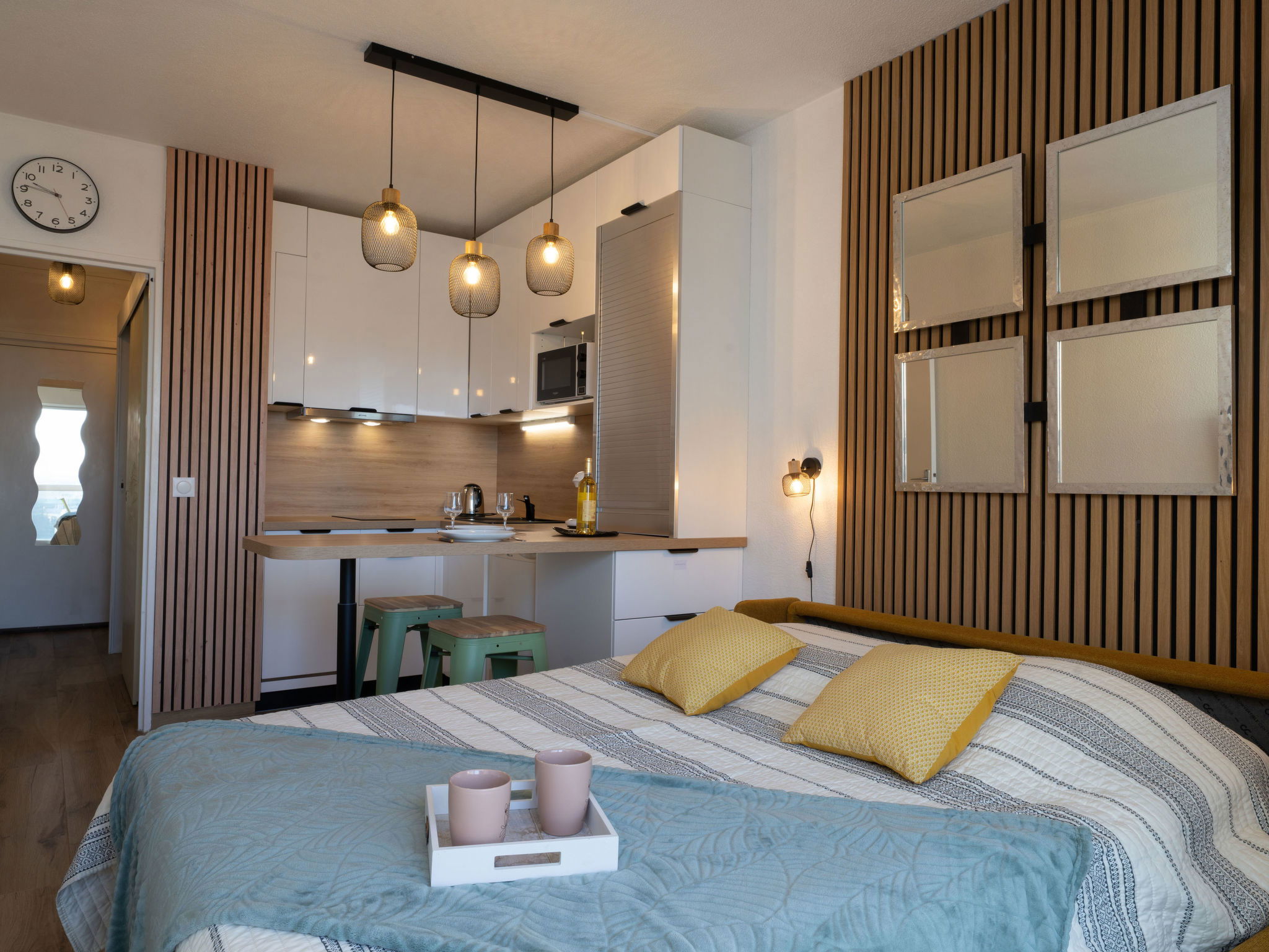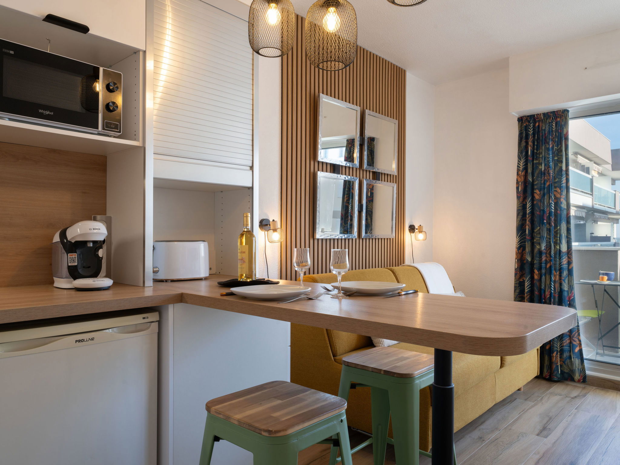 Studio 20 m2 au 4ème étage. Rénové en 2025, aménagement agréable et de bon goût: séjour/salle à manger avec 1 divan-lit double (1 x 140 cm, longueur 190 cm), TV (écran plat). Sortie sur le balcon. Cuisine ouverte (lave-vaisselle, 2 plaques à induction, grille-pain, bouilloire électrique, cafetière électrique, Capsules pour machine à café (Tassimo) (NON INCLUSES), combiné micro-ondes). Douche/WC. Chauffage électrique. Balcon 5 m2, situation nord. Mobilier de balcon. Vue partielle sur la mer et le Bassin d'Arcachon. A disposition: sèche-cheveux. Internet (Connexion WIFI, gratuit). Place de parking No 368 (cloturée, 1 Voiture). Veuillez noter: détecteur de fumée. Annonce d'un particulier (art 155, IV du CGI). 33009003339EA