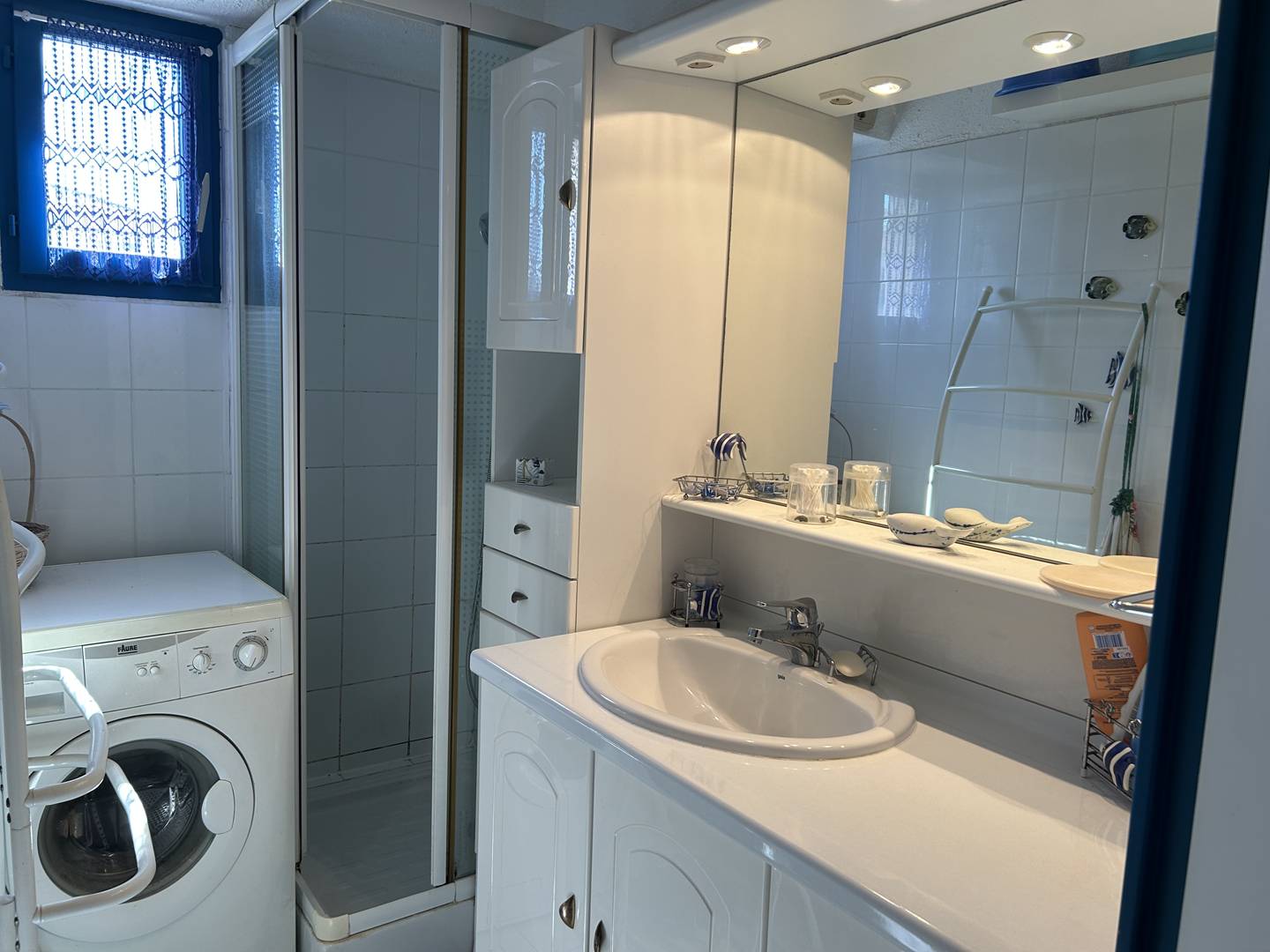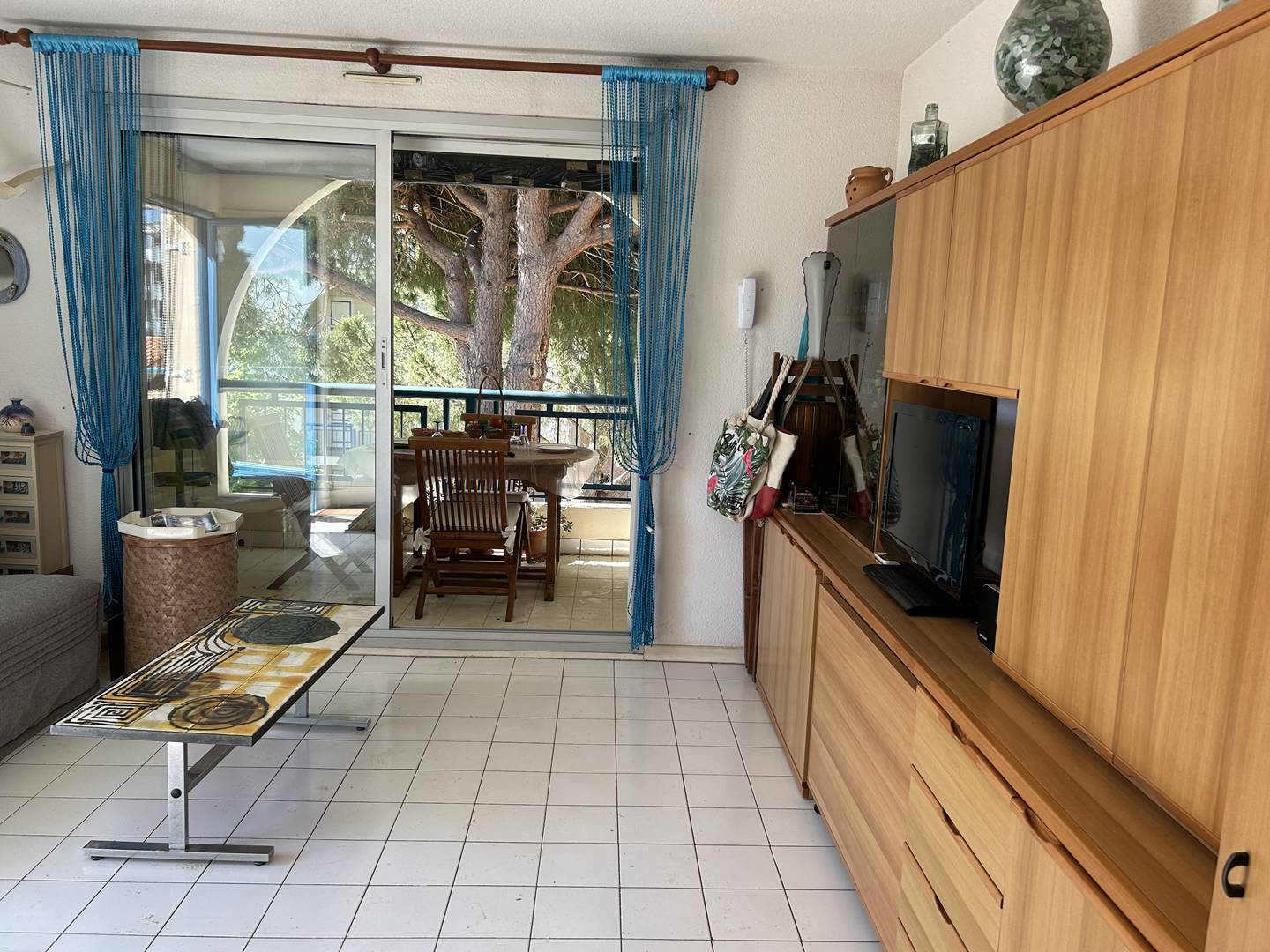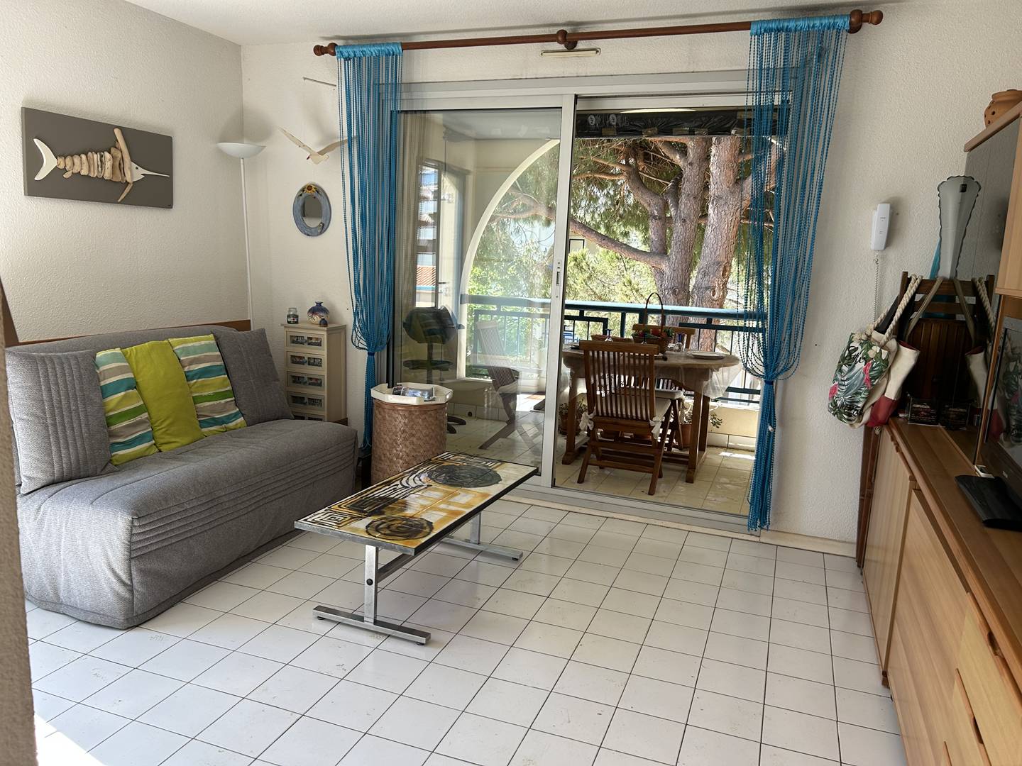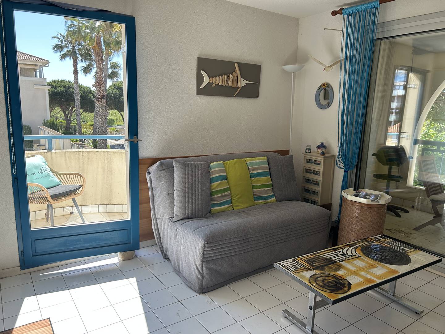 L'appartement vous propose une terrasse donnant sur un séjour avec un divan convertible , une kitchenette équipée , un coin nuit avec lits superposés, une chambre avec lit en 140 et une salle d'eau avec et lave-linge .wc indépendant.