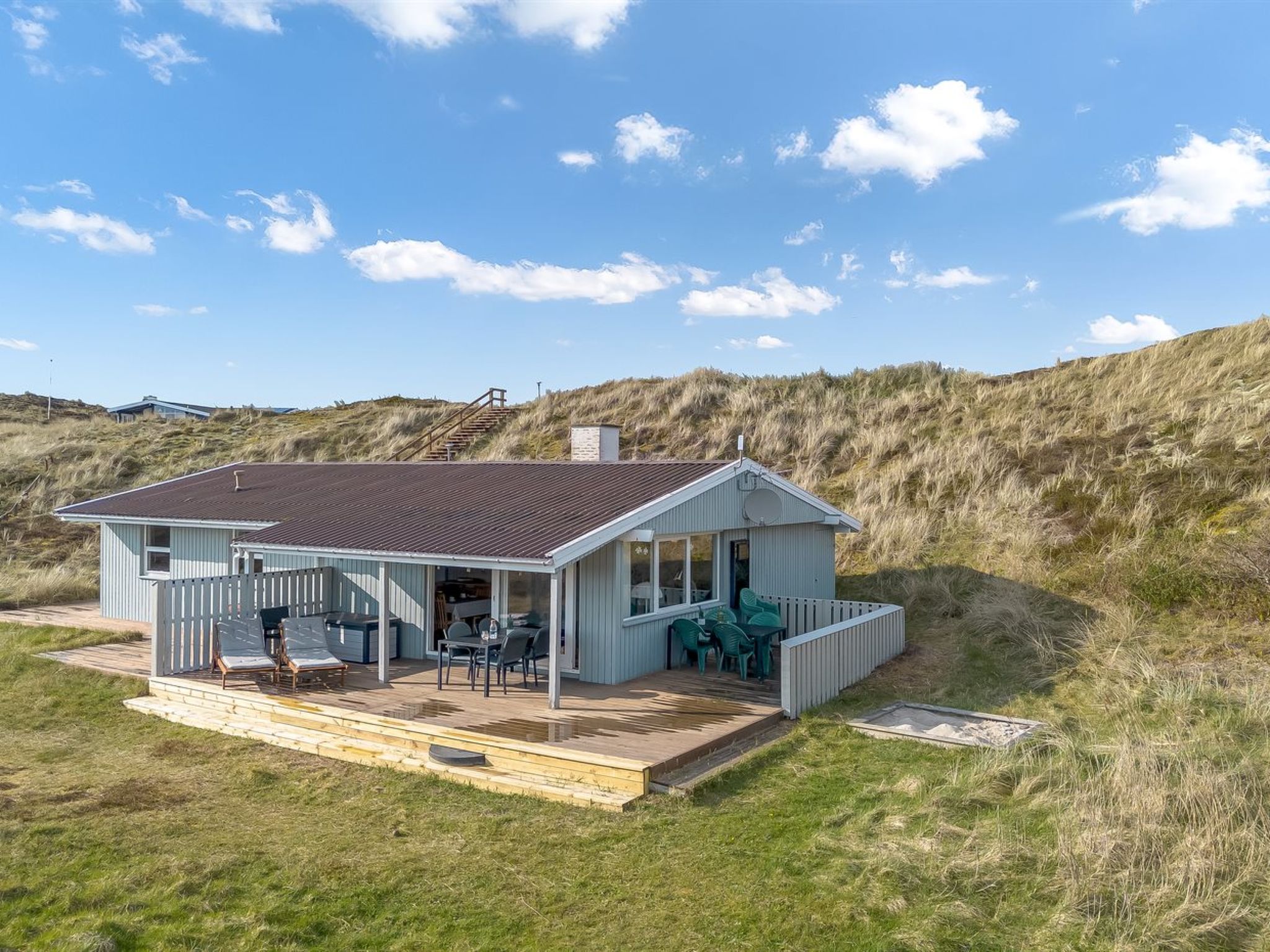 Maison individuelle, année de construction 1977. À 700 m de la mer. A usage privé: terrain 6'000 m2. Terrasse (69 m2), espace de jeux pour les enfants (balançoire). Infrastructures de la Maison: sauna, lave-linge, sèche-linge. Magasin d'alimentation 3.5 km. Le propriétaire n'accepte pas les groupes de jeunes.