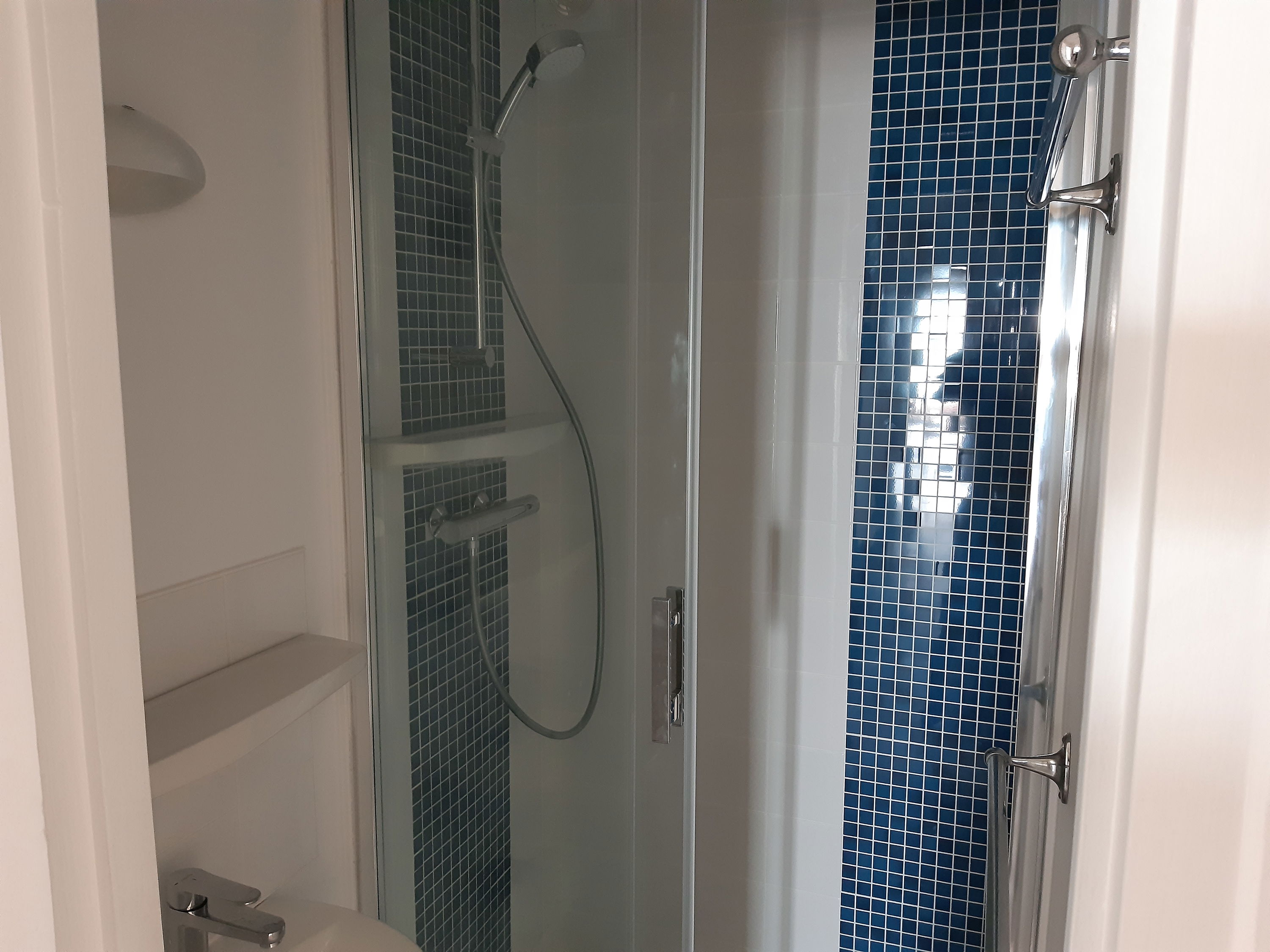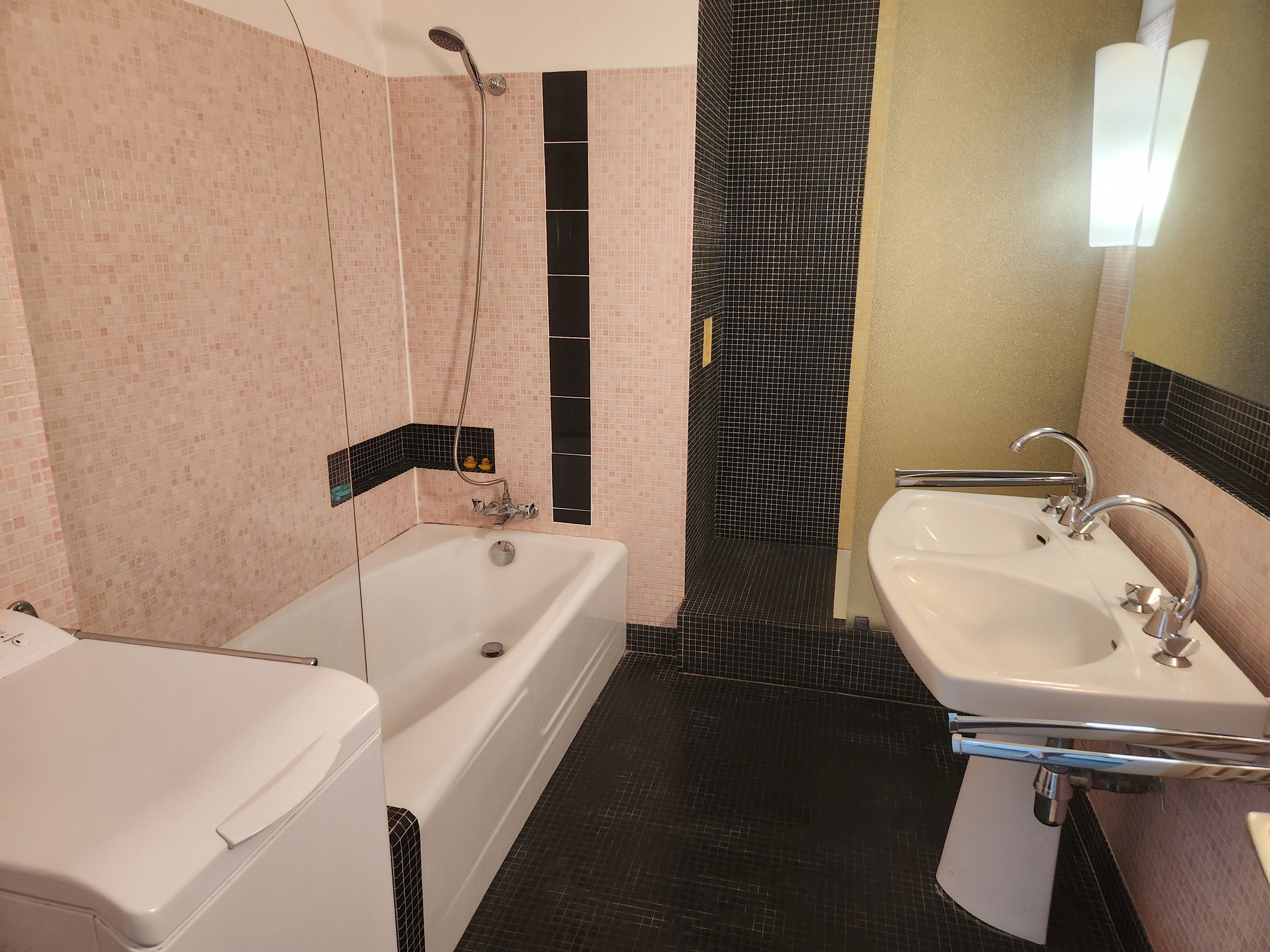 Salle de bains complète (baignoire + douche + lavabo) avec lave-linge