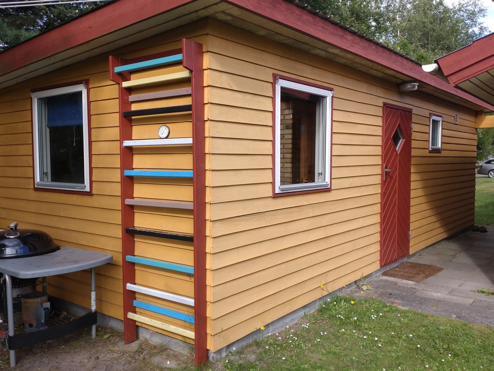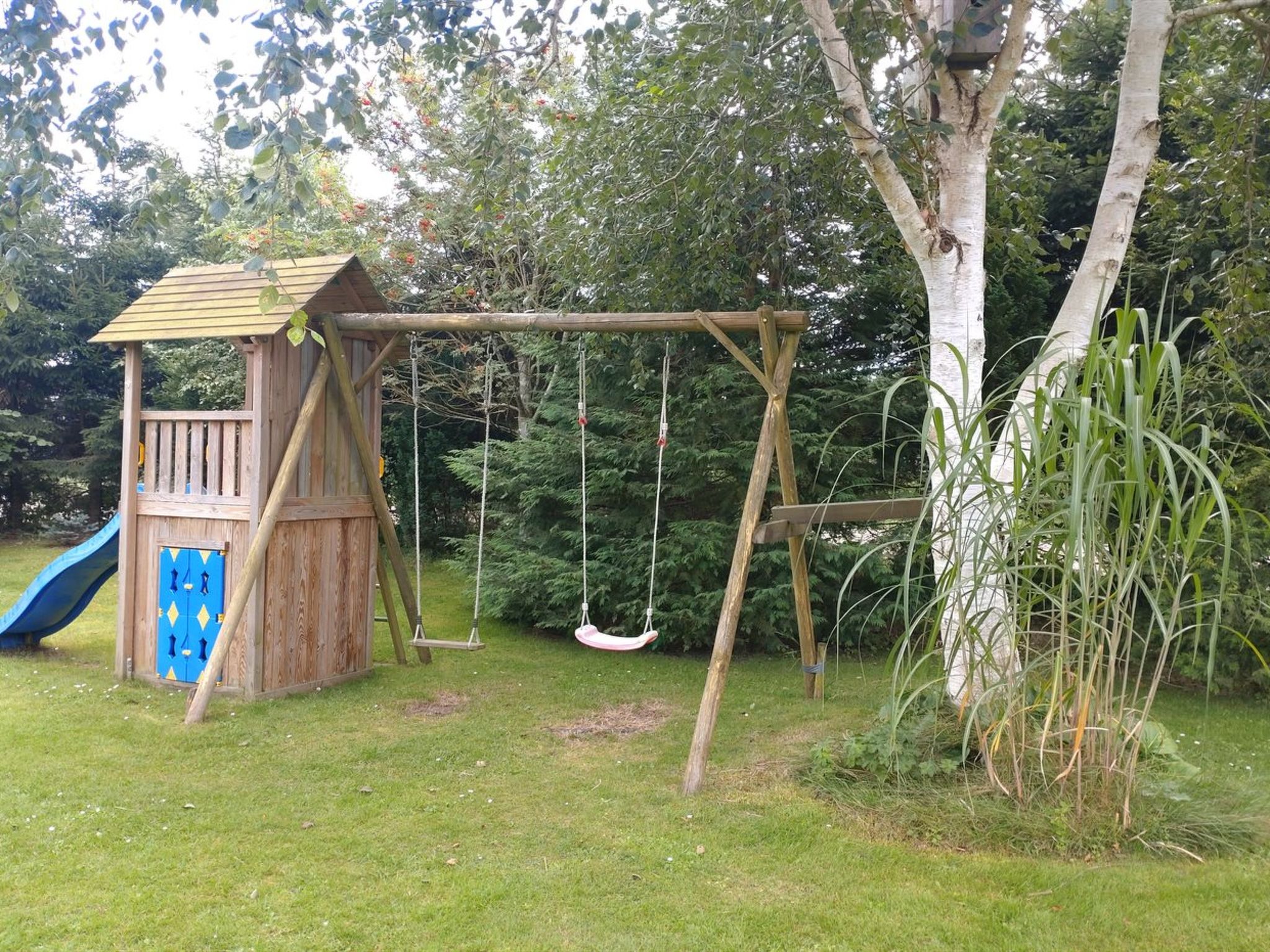 Maison individuelle, année de construction 1977. À 700 m de la mer. En commun: jardin. A usage privé: terrain 1'000 m2, jardin entretenu (clôturé). Espace de jeux pour les enfants (toboggan, balançoire). Infrastructures de la Maison: sauna, lave-linge. Place de parking près de la maison. Borne de recharge électrique. Magasin d'alimentation 900 m. Le propriétaire n'accepte pas les groupes de jeunes.