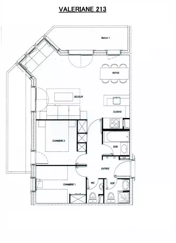 Les couchages sont répartis comme suit : une banquette, un lit gigogne et un lit simple dans le séjour, deux lits simples dans la première chambre, un lit double dans la seconde chambre. Les lits sont équipés de couettes.