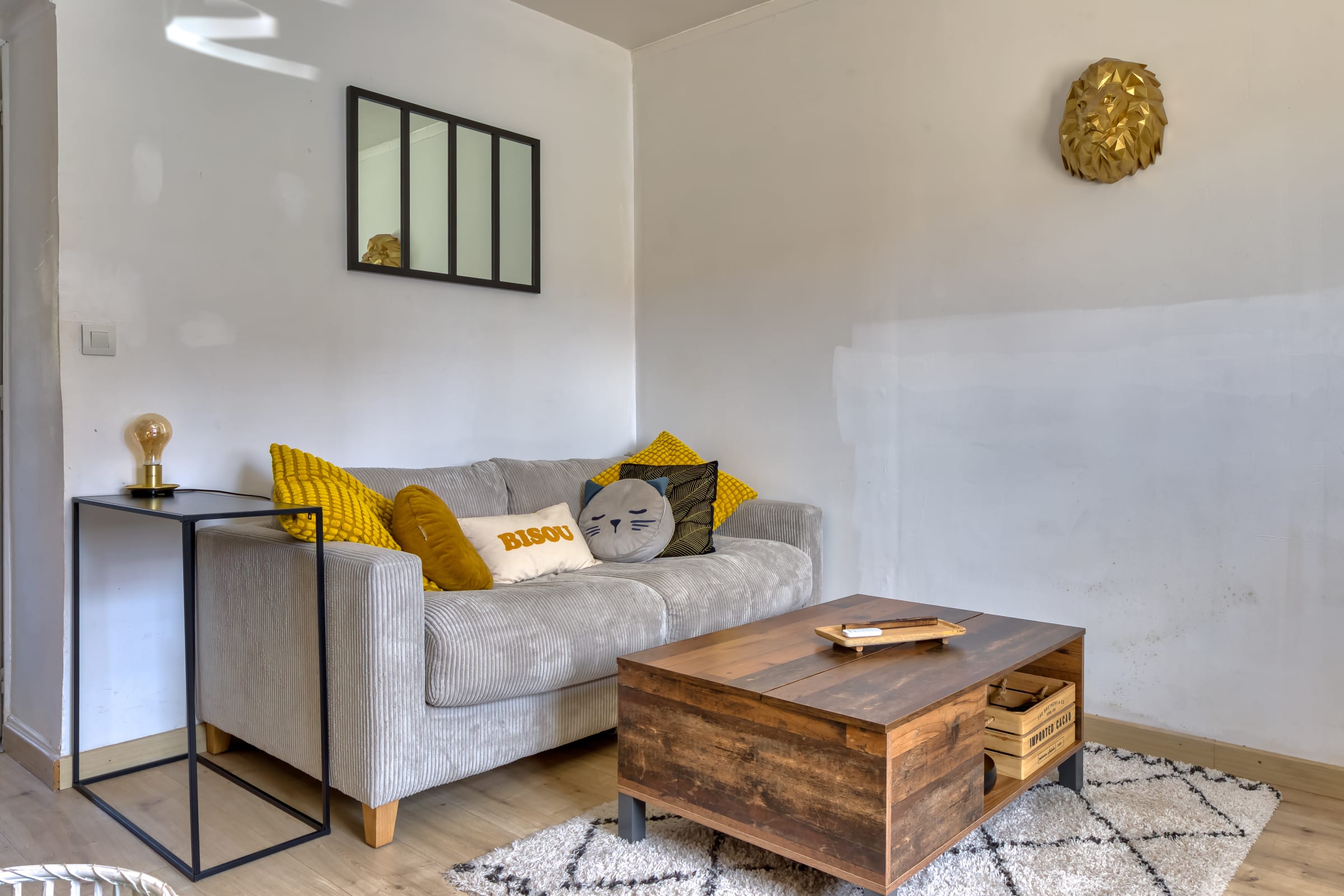 Dès votre arrivée, vous serez séduit par l’ambiance chaleureuse du lieu, idéale pour un séjour en couple, ou entre amis. Le salon lumineux vous invite à la détente avec son canapé convertible de qualité, transformable en couchage confortable pour la nuit, ainsi qu’une télévision et un espace cosy pour se retrouver. La grande cuisine ouverte, moderne et bien équipée, ravira les plus gourmets : réfrigérateur, four, micro-ondes, plaque de cuisson, cafetière senseo, bouilloire, vaisselle complète… tout y est pour cuisiner comme à la maison. La salle de bain, récemment rénovée, se distingue par son style contemporain et ses équipements pratiques. Les WC sont séparés pour plus de confort au quotidien.