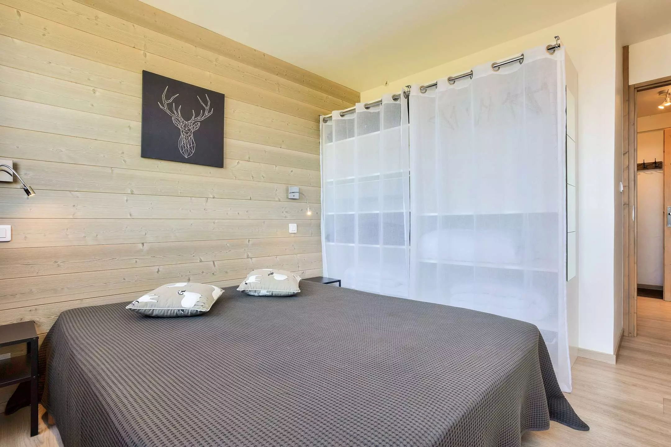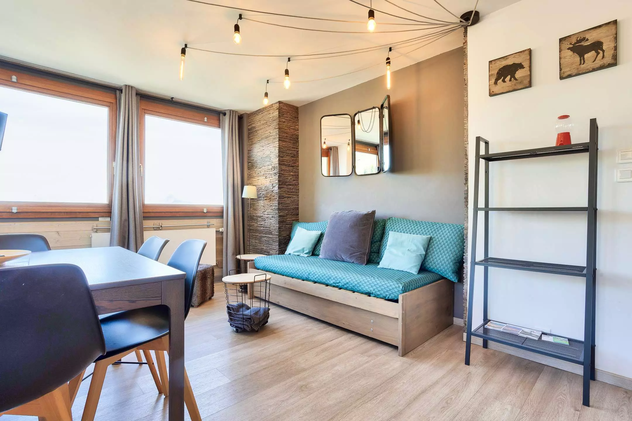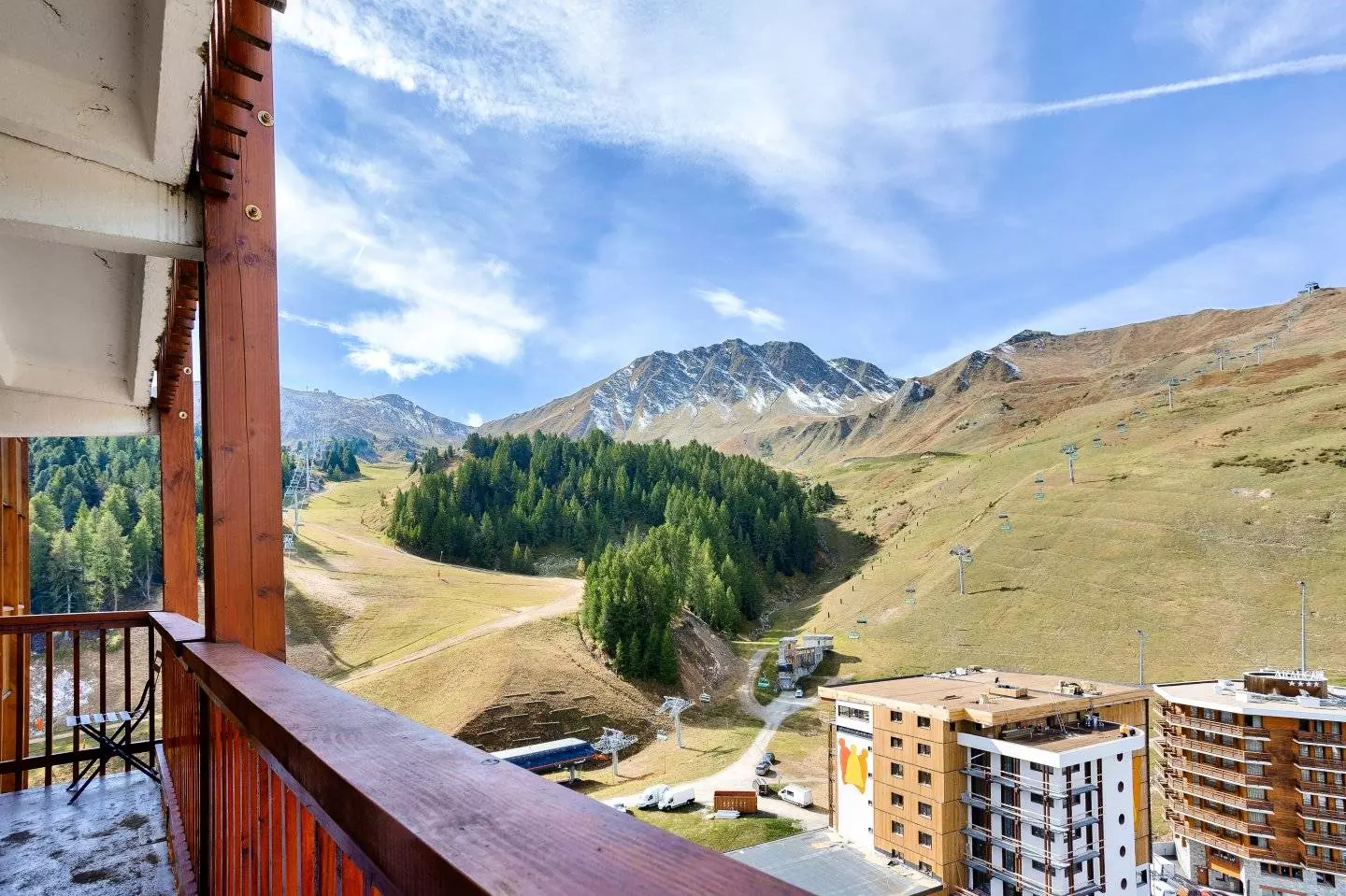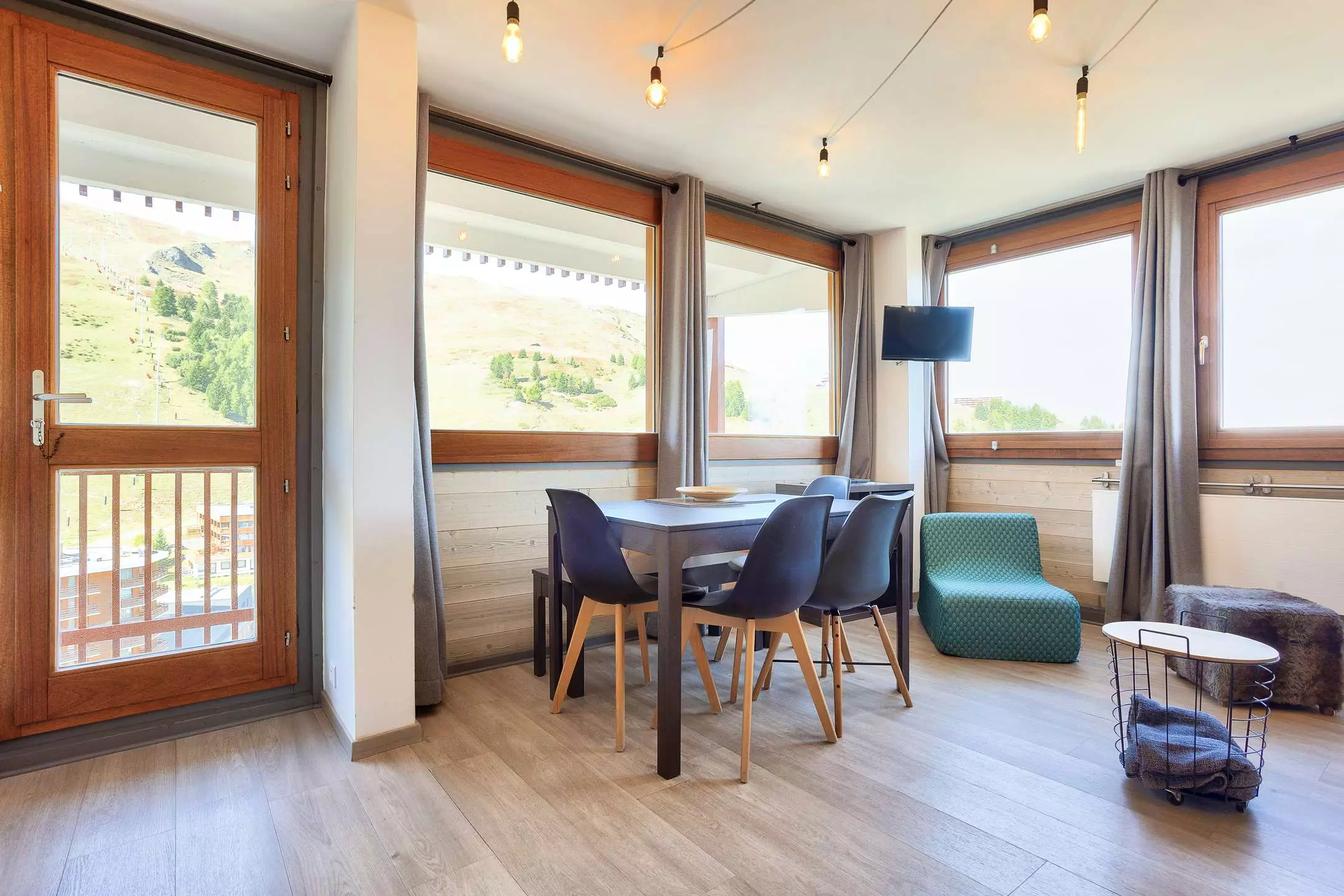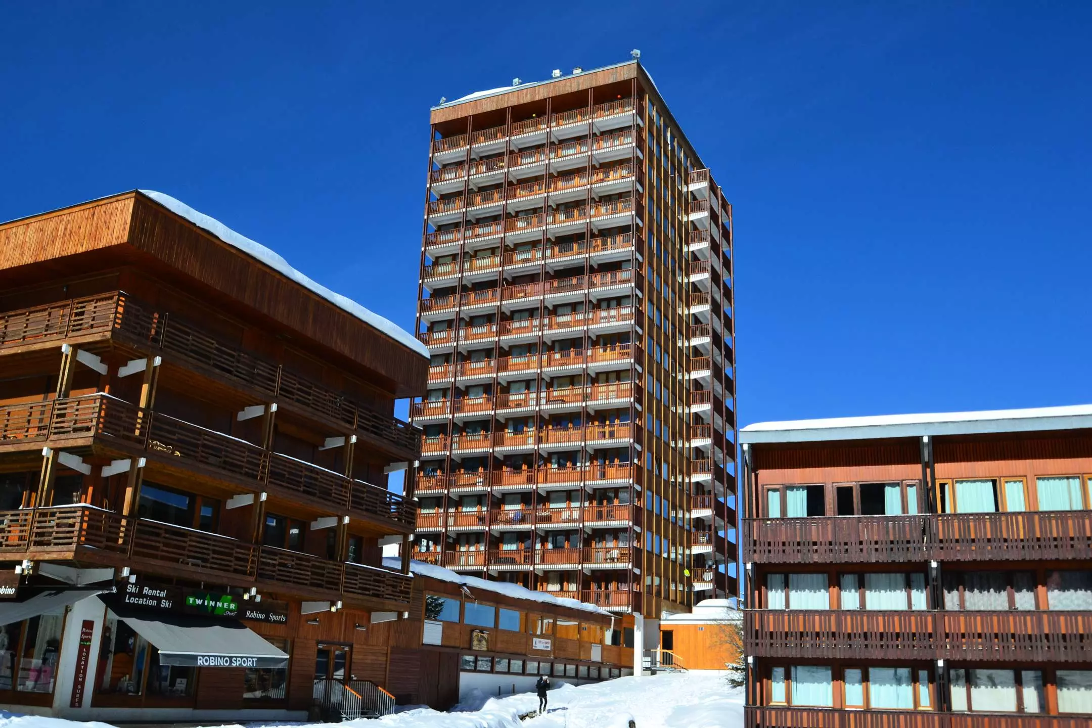 Appartement très lumineux, refait à neuf et décoration contemporaine, bois et pierres, situé au coeur de la station et AU PIED DES PISTES, balcon avec belle vue sur station et une partie pistes - Casier à skis n°131 - La Résidence est reliée aux commerces par galerie marchande.