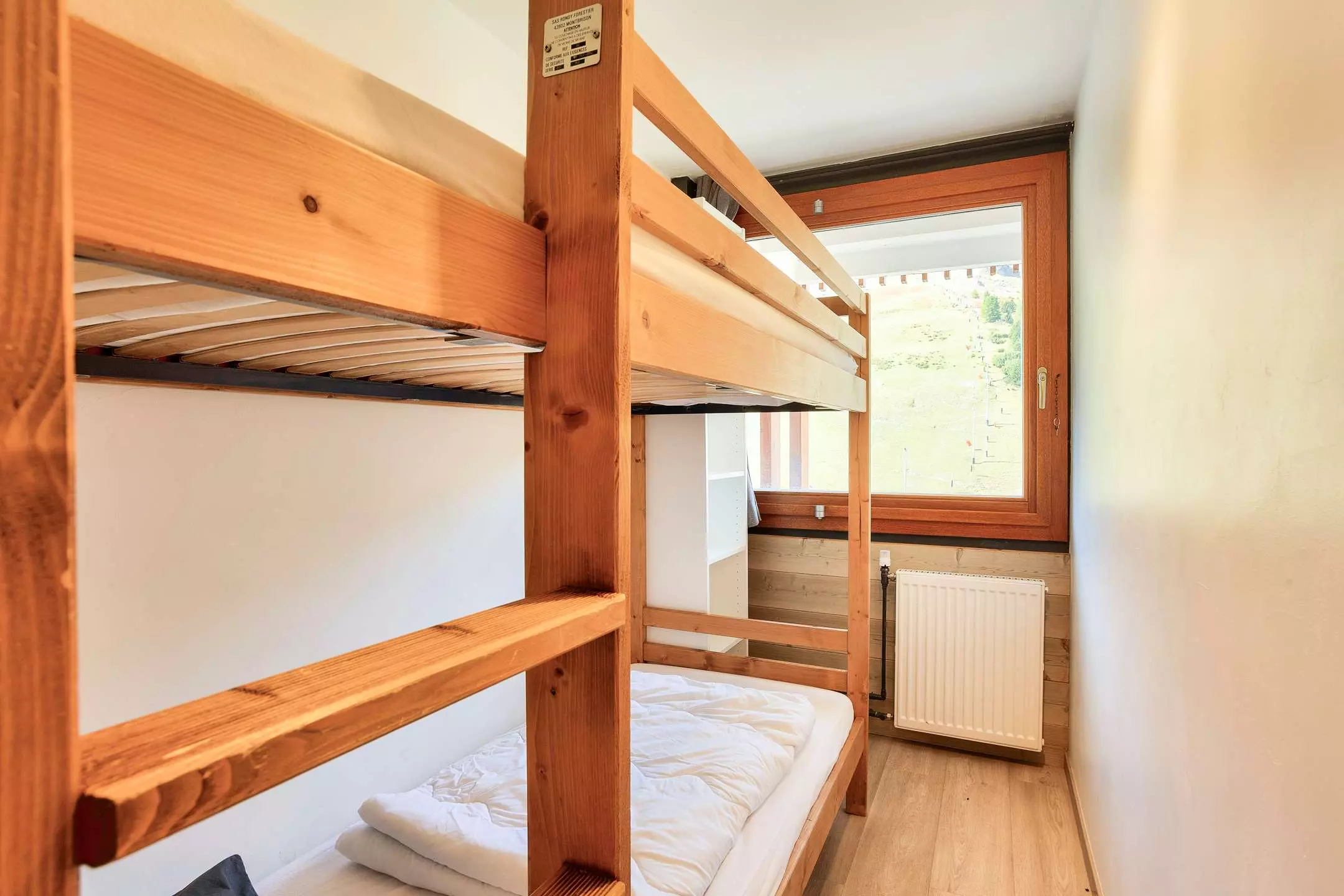 Appartement entièrement refait à neuf, 2/3 pièces, 5/6 pers., 41m2, grand balcon exposé Ouest/Nord, magnifique vue à 180° sur la station, les pistes et le Mont Blanc (appt en angle) - 13ème étage avec ascenseur Cuisine ouverte sur séjour : 3 plaques à induction, réfrigérateur/petit congélateur, four, four Micro-ondes, lave-vaisselle - cafetière elec et Nespresso (capsules non fournies) - Séjour : 2 lits gigognes 1 pers,(banquette), coin salon, coin repas, TV - Chambre : 1 lit double 160cm - Cabine : 2 lits superposés (80cm) - Salle de bains : douche, sèche-serviettes - WC séparés - Les sols : lames PVC -Literie : couettes - WIFI inclus. Appartement non fumeur, animaux non admis. En option et en supplément: Ménage de fin de séjour, draps, serviettes, forfaits ski. -
