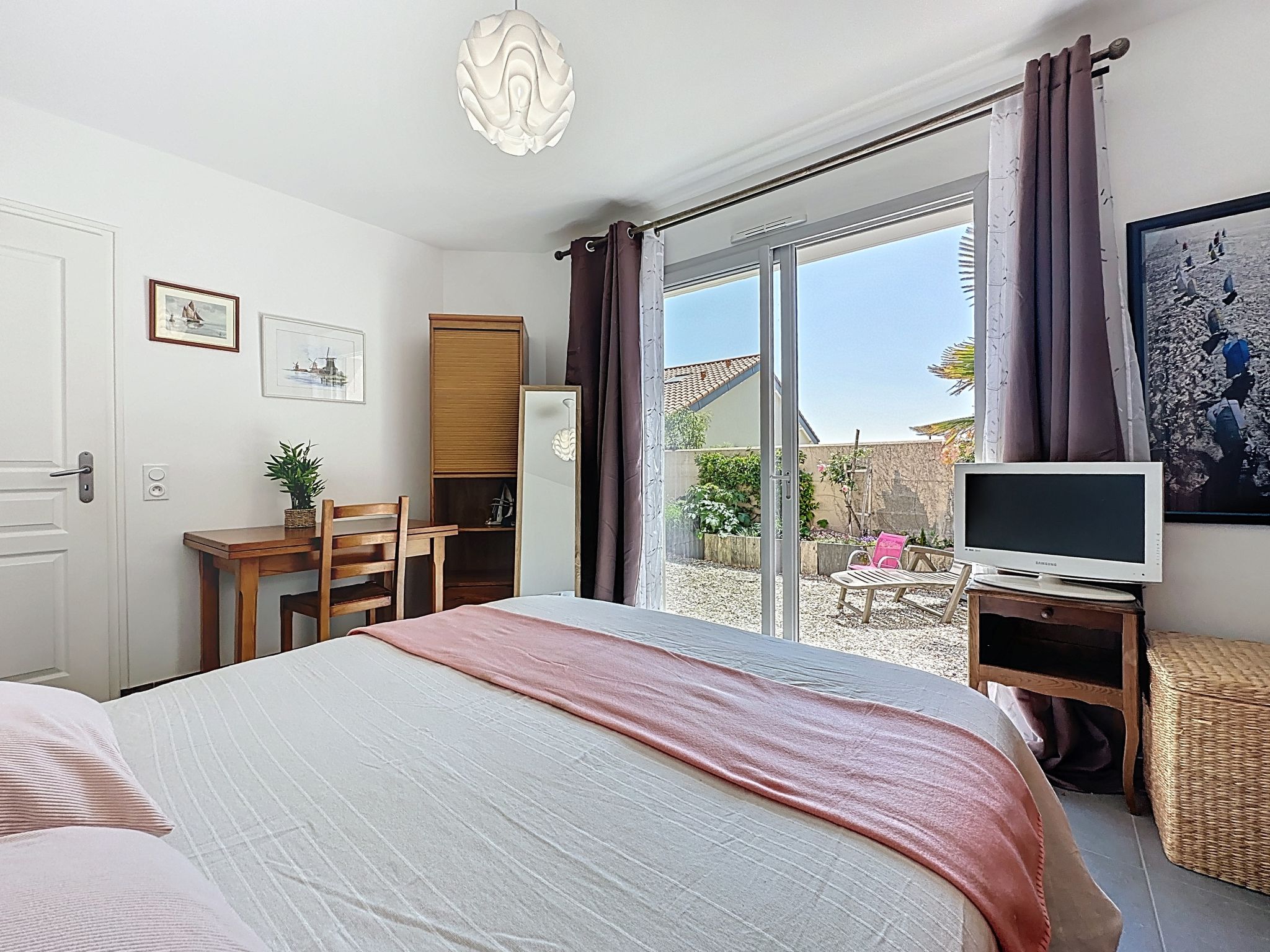 "Les Embruns", maison 4 pièces 90 m2, situation sud-ouest. Aménagement simple: séjour/salle à manger avec TV " 300 m, gare ferroviaire "La Bernerie en Retz" 600 m, plage de sable "Grande Plage" 350 m, centre thermal "Alliance Pornic Thalasso & Spa" 8 km. Terrain de golf (18 trous) 10 km, tennis 200 m, golf miniature 10 km. Attractions à proximité: Marché de la Bernerie en Retz 400 m, Pornic Aventure Accrobranche 8 km, Port du Collet 11 km, Planète Sauvage 26 km, Les Machines de l'Ile - Nantes 45 km, Noirmoutier 54 km. Les lacs connus sont facilement accessibles: Lac de Saint Viaud 23 km. La remise des clés a lieu à l’agence de Pornic, 7 km.