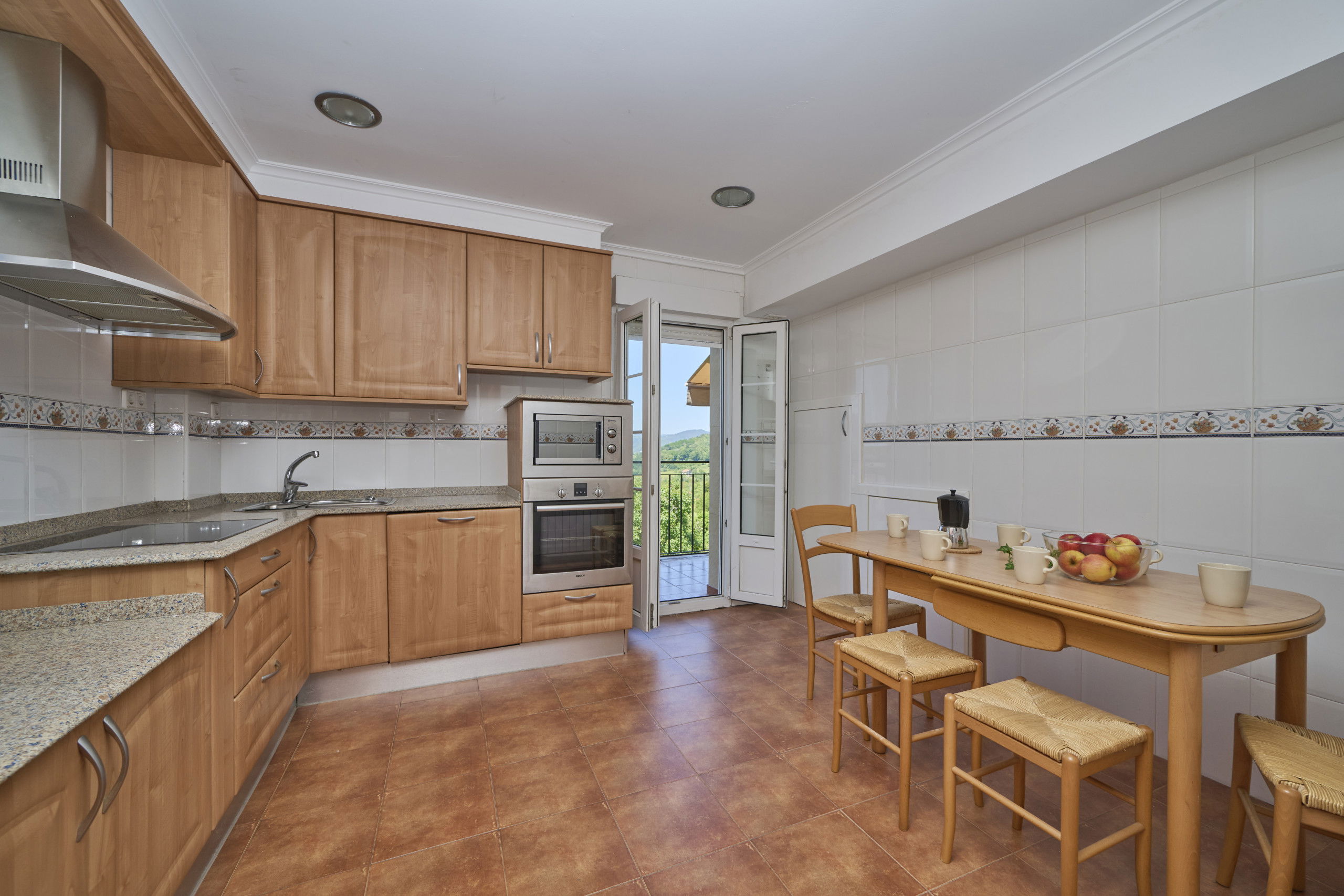 Rez-de-chaussée : on y trouve la cuisine, le salon, 2 chambres doubles et deux salles de bains complètes. Depuis la cuisine, on accède au balcon avec vue sur la Réserve Naturelle d'Urdabai.
