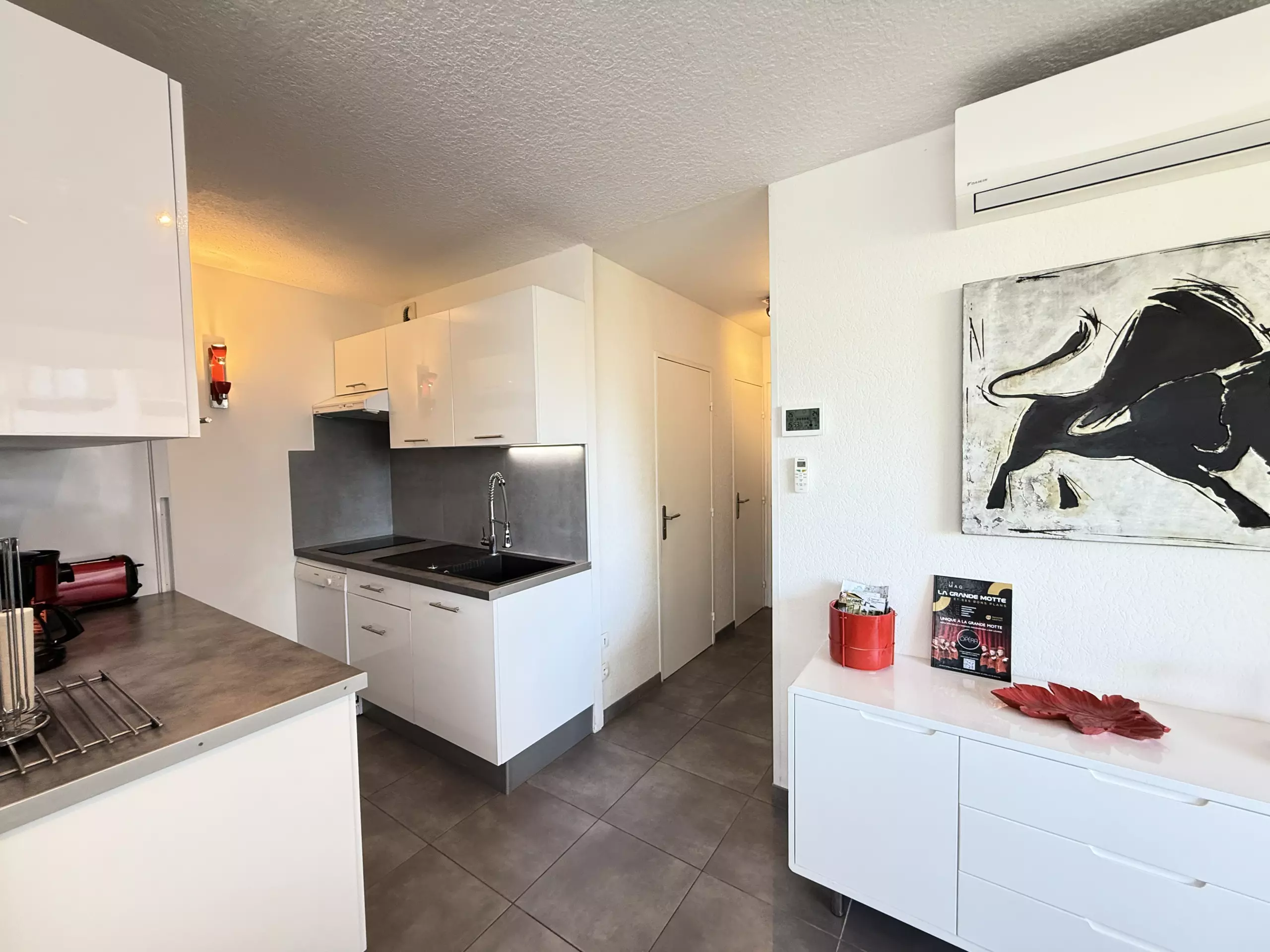 Bienvenue dans ce charmant appartement de 1 chambre parentale et un bel espace cabine pour les plus jeunes, entièrement rénové avec goût, situé à la Grande Motte. Parfait pour un séjour en famille, il peut accueillir jusqu’à 4 personnes dans un cadre moderne et confortable.