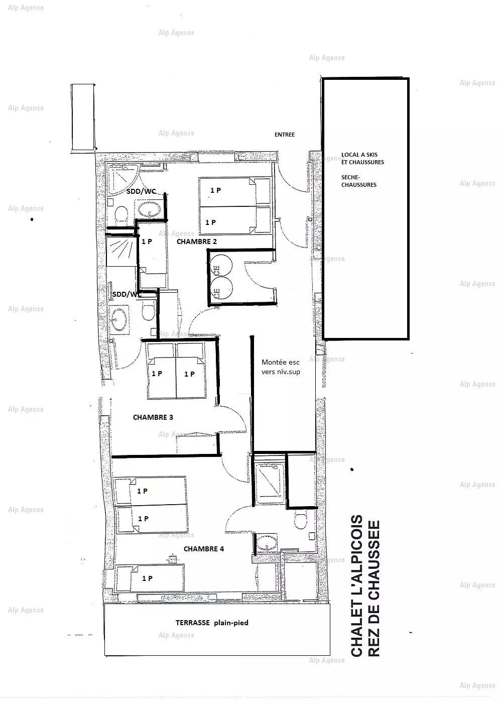 Beau Chalet individuel pour 10 pers, env.130m2, sur 2 niveaux , séjour + 4 chambres, 4 SDB, terrasse exposée Sud/ouest (déneigement non garanti), à environ 250m des pistes, vue sur la station. Niveau 1 : Cuisine Américaine : 4 plaques à induction, grand réfrigérateur, congélateur, four, four micro-ondes, Lave-vaisselle. Séjour très chaleureux : coin repas, coin salon avec cheminée (bois non fourni), TV - WIFI - Chambre 1 : 2 lits 1 pers.80 x200cm avec sa salle de douche/WC incl. - 1 WC séparés - Niveau bas : Chambre 3 : 2 lits 1 pers. (80x200cm) avec salle de douche/WC incl. - Chambre 2 et 4 : dans chacune : 3 lits individuels (80x200cm) et une salle de douche/WC - Lave-linge - Sas d'entrée pour casier à skis et sèche-chaussures -Literie : 1 couette 2p et 8 couettes 1p. Les sols : parquet -bois cheminée non fourni- Appartement non fumeur, animaux non admis. En option et en supplément: Ménage de fin de séjour, draps, serviettes, forfaits ski.