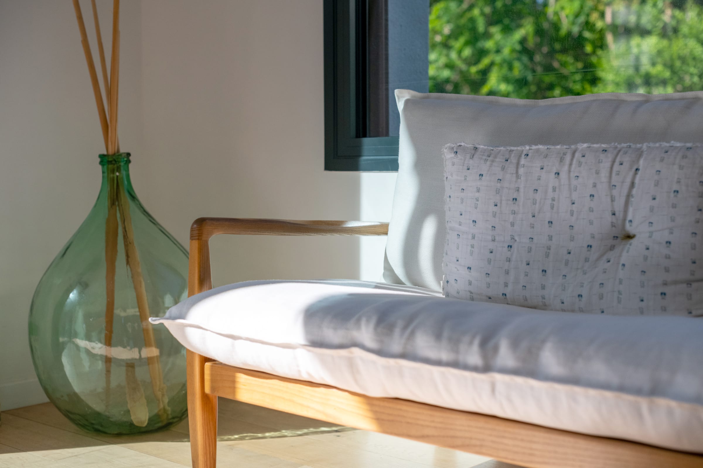 - un salon & salle à manger accueillant avec mobilier sur mesure, baigné de lumière naturelle,