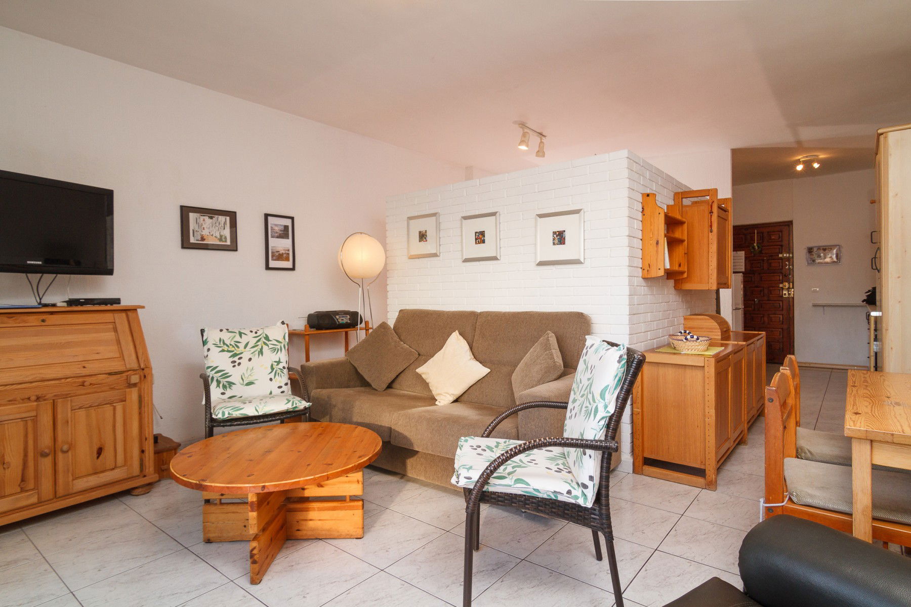 Accueillant Studioappartement avec une capacité de 2 personnes dans l'immeuble CARABEO I, à seulement quelques metres à pie de la plage. Laissez-vous inspirer des merveilleuxes vues sur la mer et les palmiers que vous pouvez profiter à partir du balcon de cette location. Dans l'appartement il y a un grand lit, une cuisine totalement equipé, salle de bain avec douche et son ambiance classique vous invite de se sentir à la maison.