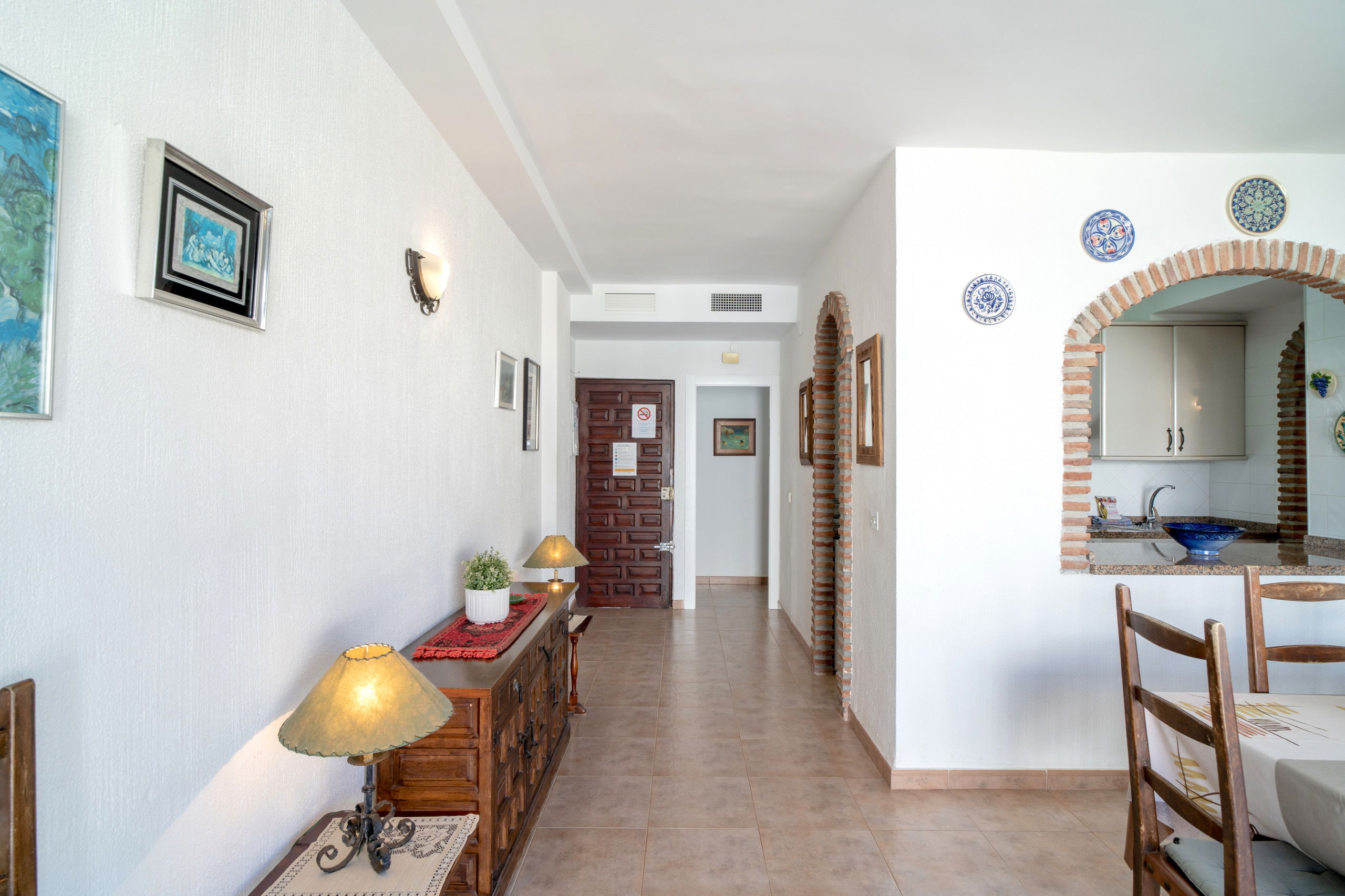 La décoration intérieure est chic et élégante, offrant une ambiance relaxante pour votre séjour. Le salon est meublé de sièges confortables et l'appartement est équipé de la télévision internationale et de l'Internet haut débit pour vous divertir. La climatisation centrale vous aidera à rester au frais pendant les chaudes journées d'été à Nerja.
