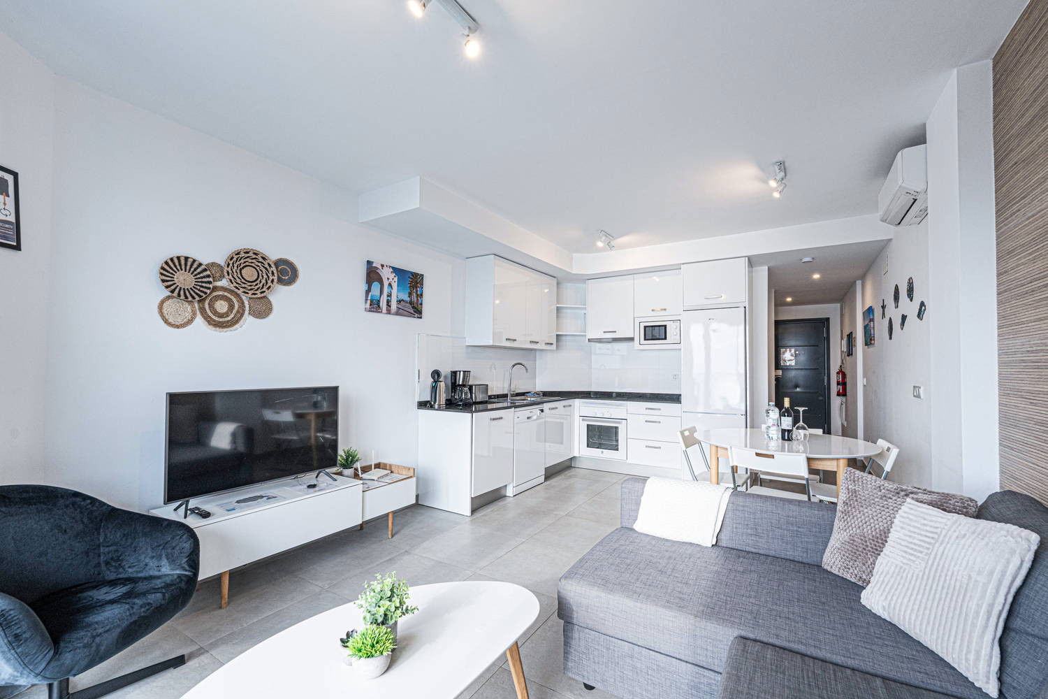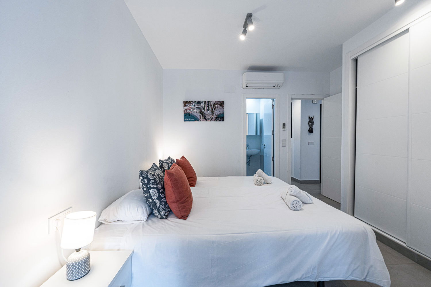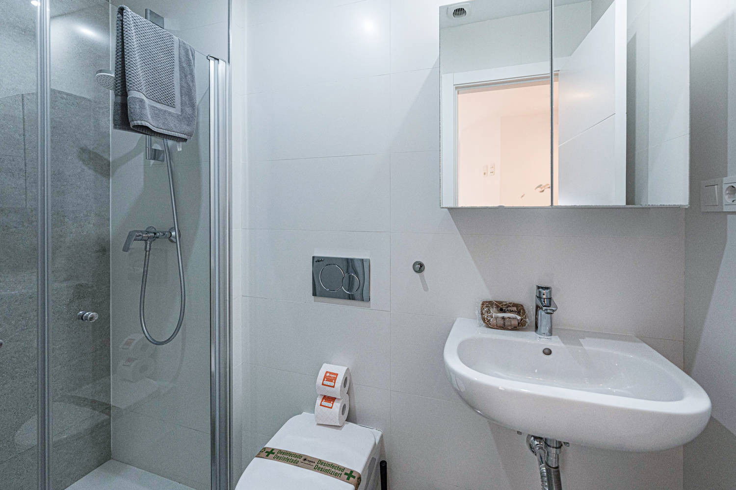 L'appartement dispose de deux chambres et de deux salles de bain : l'une avec un lit king size et une salle de bain privée, et une autre chambre avec des lits superposés. Il dispose également d'une cuisine moderne entièrement équipée avec des appareils dernier cri, parfaite pour que tu te sentes comme chez toi pendant tes vacances.