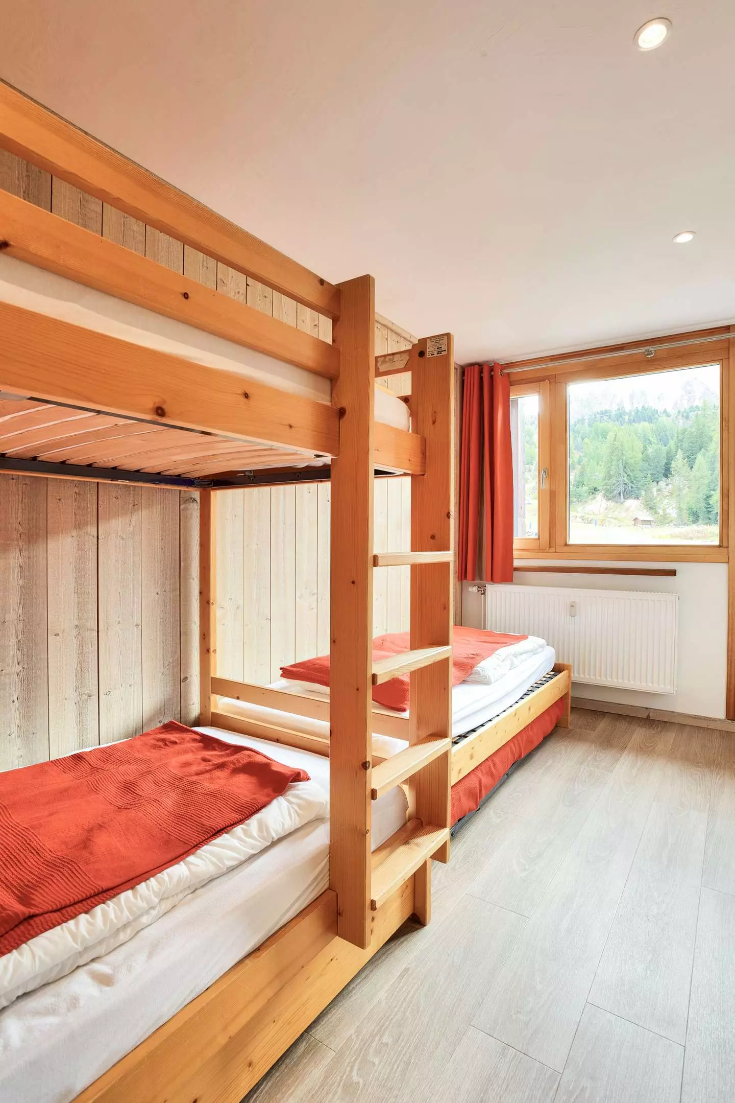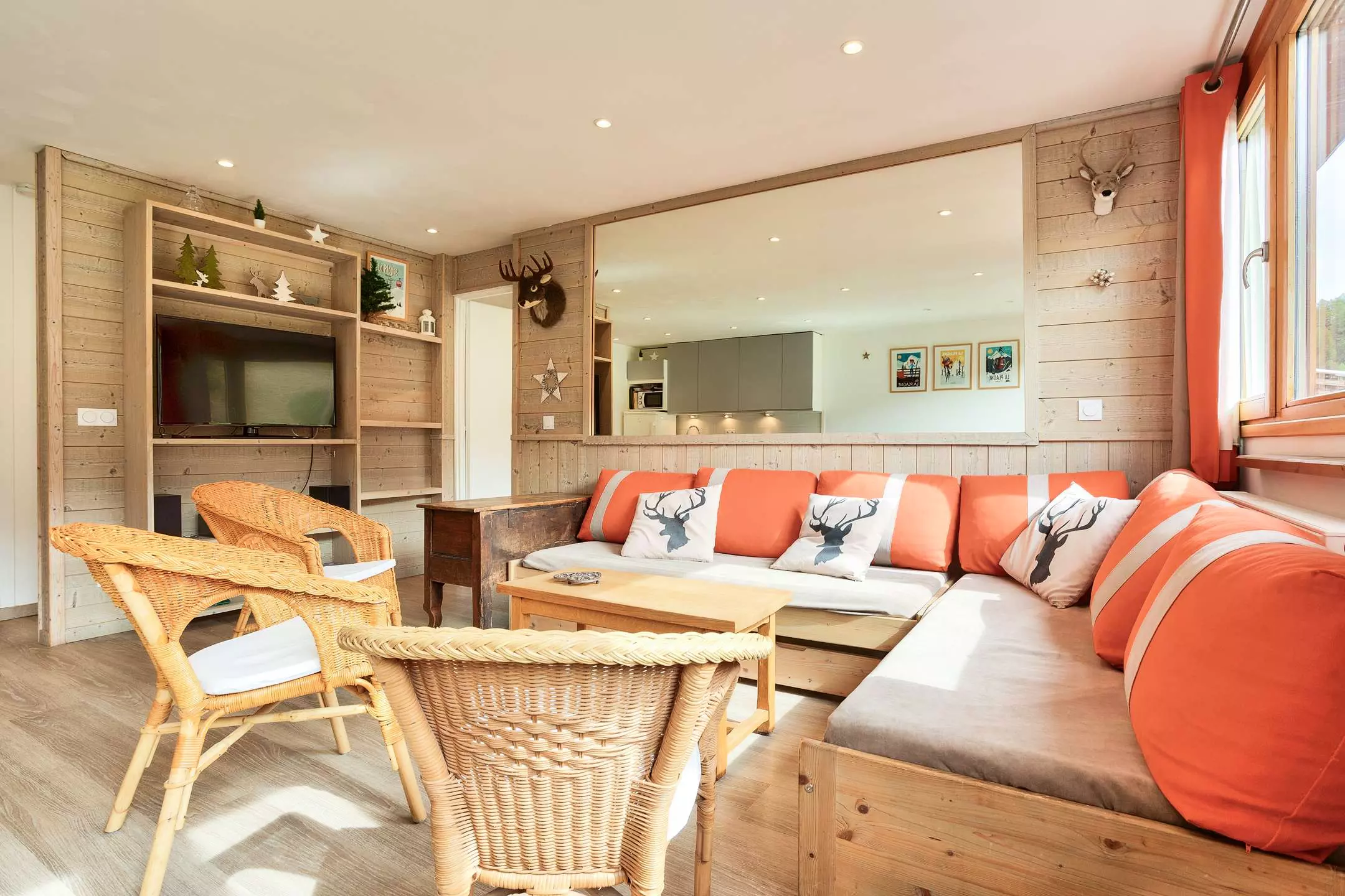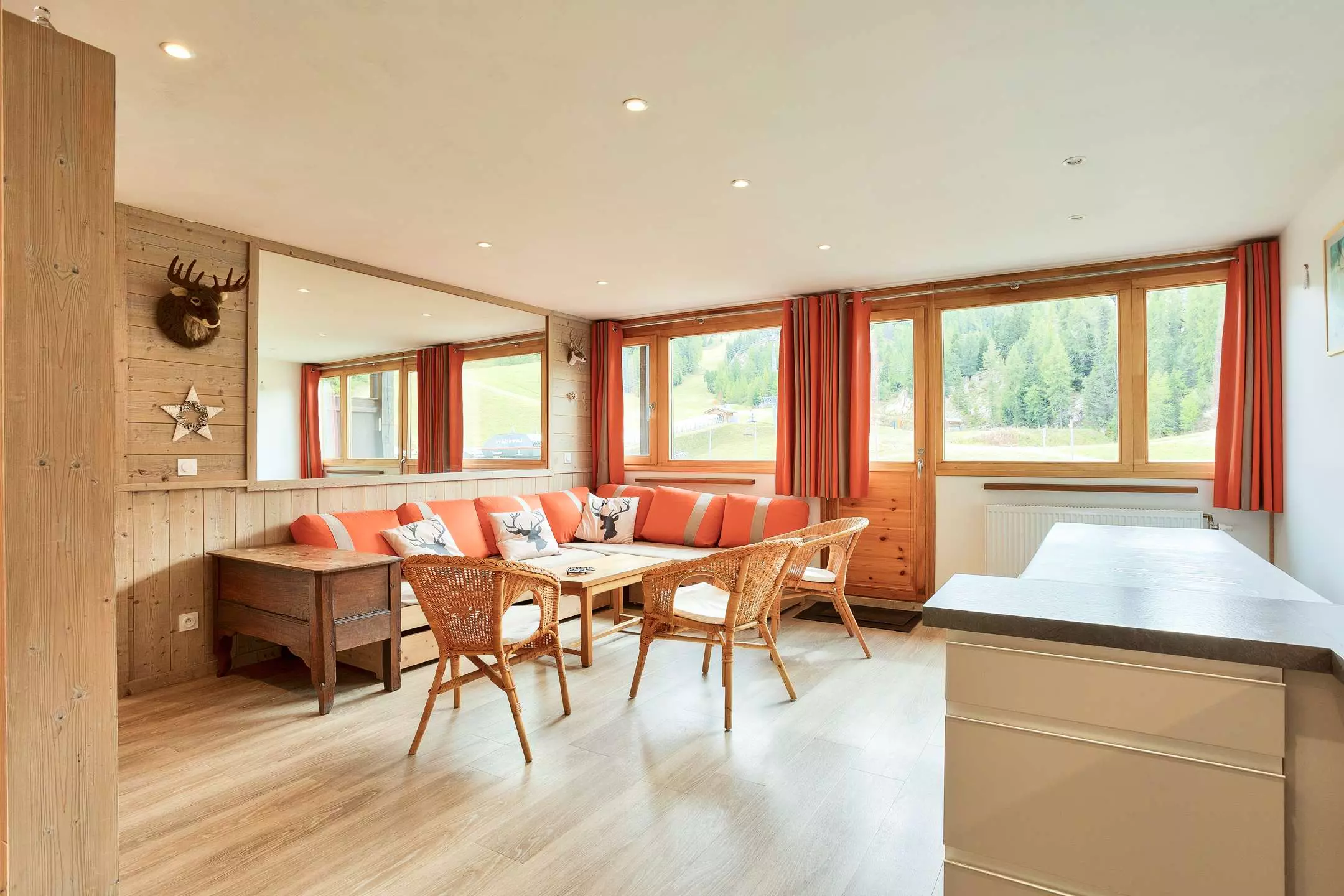 Appt 4 pièces 8/9 pers, 70 m2 entièrement rénové récemment, exposé au Sud, balcon, vue sur pistes, situé en front de neige, au 3ème étage sans ascenseur - Cuisine : 4 plaques vitrocéramiques, four traditionnel, micro-ondes, réfrigérateur congélateur, LV - Séjour : coin repas, 2 lits banquettes 1 pers, TV, lecteur DVD. - Chambre 1 : 2 lits superposés + 1 lit 1 pers. - Chambre 2 : 1 lit double (140cm) - Chambre Cabine 2 lits superposés - Salle de bains : baignoire, 2 WC séparés - Salle de douche - Lave linge - Literie : couettes - WIFI inclus (5go / jour) .- Casier à skis N° 34/35 niveau sortie pistes - 3 placards sur le palier de l'appt pour ranger les chaussures ou autres. Appartement non fumeur, animaux non admis. En option et en supplément: Ménage de fin de séjour, draps, serviettes, forfaits ski.