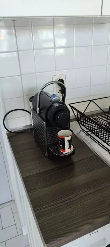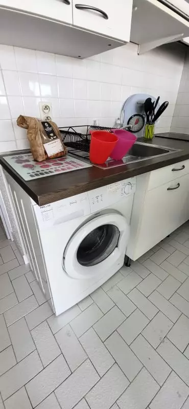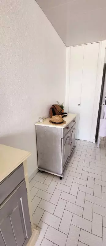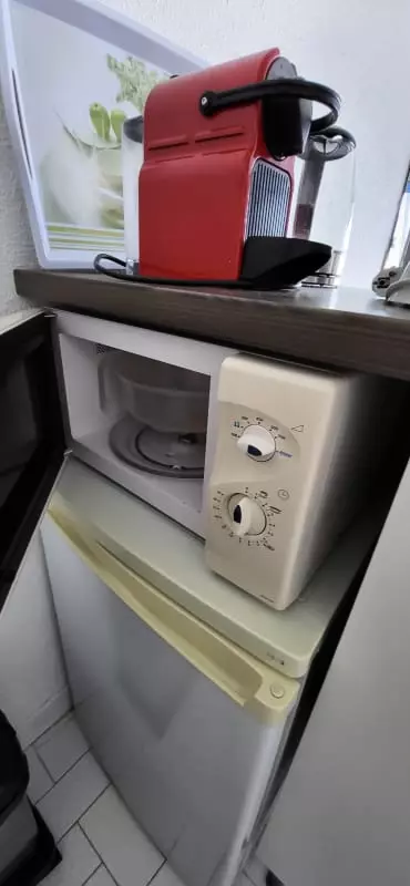 Côté cuisine : ouverte sur le séjour, entièrement équipée (Plaque 2 feux Vitrocéramique, micro-ondes, frigo, lave-linge, ** cafetière Nespresso ** , grille pain et bouilloire) avec une table ronde pour 4 personnes qui vous permettra d'accueillir vos repas et convives.