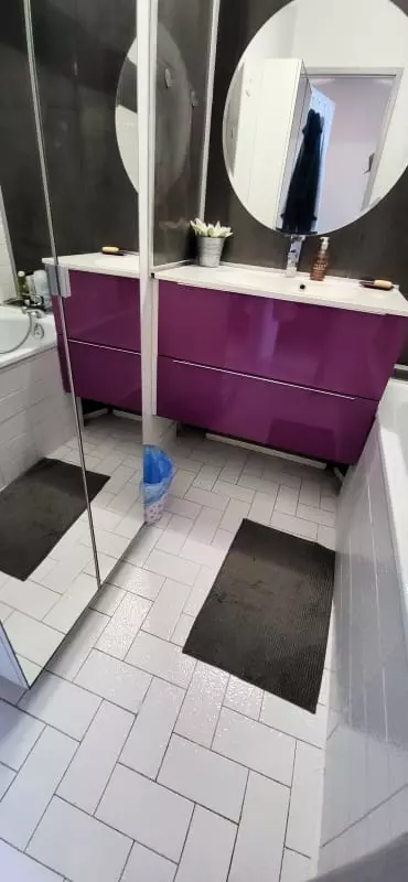 Salle de bain, Baignoire vasque avec meubles à tiroirs, et toilette séparé.