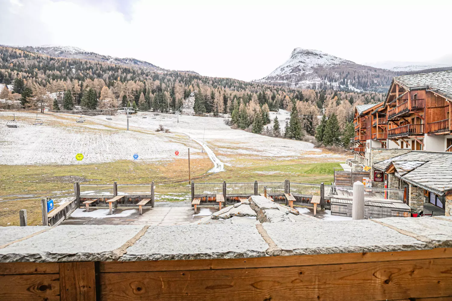 • Balcon-terrasse aménagé, exposition sud, vue sur les pistes