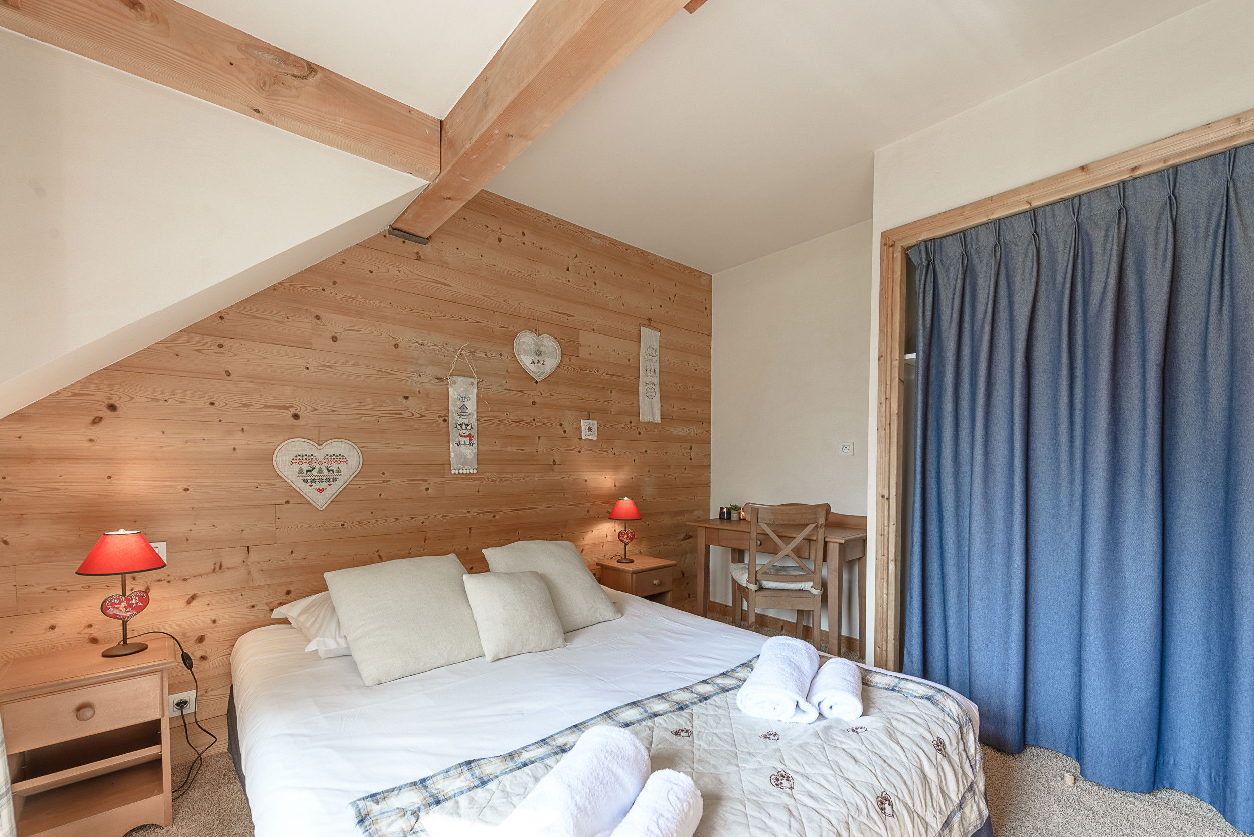 - Chambre n°1 : 1 lit double (140x190cm) placards de rangements et bureau, accès à un balcon