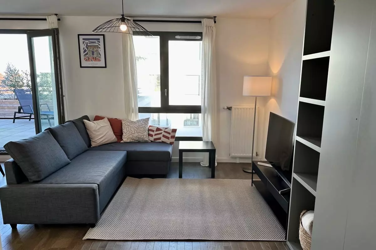 - Un grand séjour lumineux, avec un canapé convertible (2 couchages);