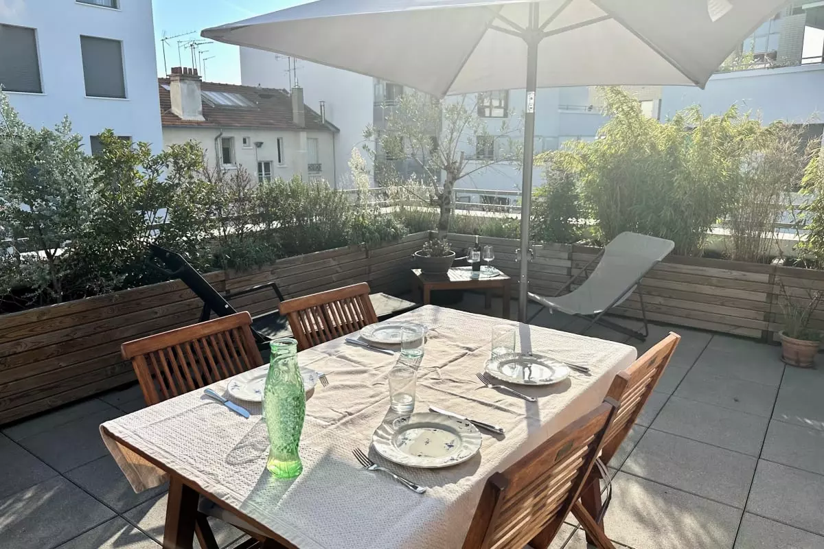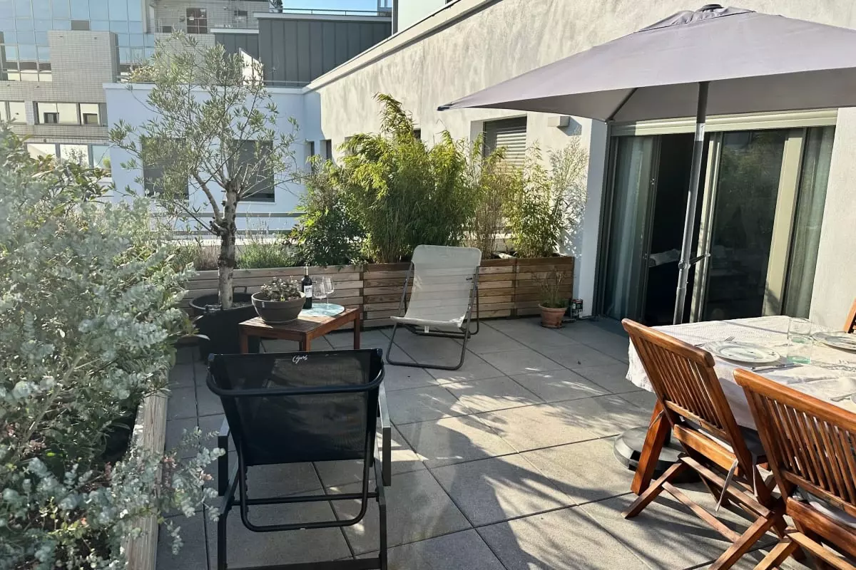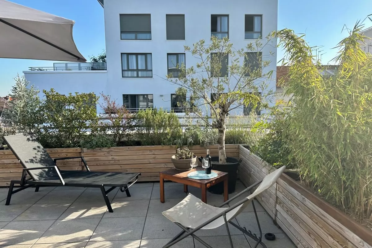 Profitez de deux terrasses pour vos moments de détente : l’une est équipée d’un espace repas, de transats et d’un parasol, tandis que l’autre est accessible directement depuis une chambre.