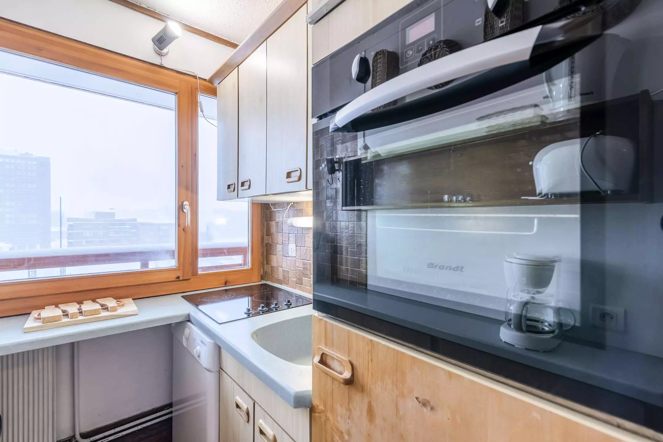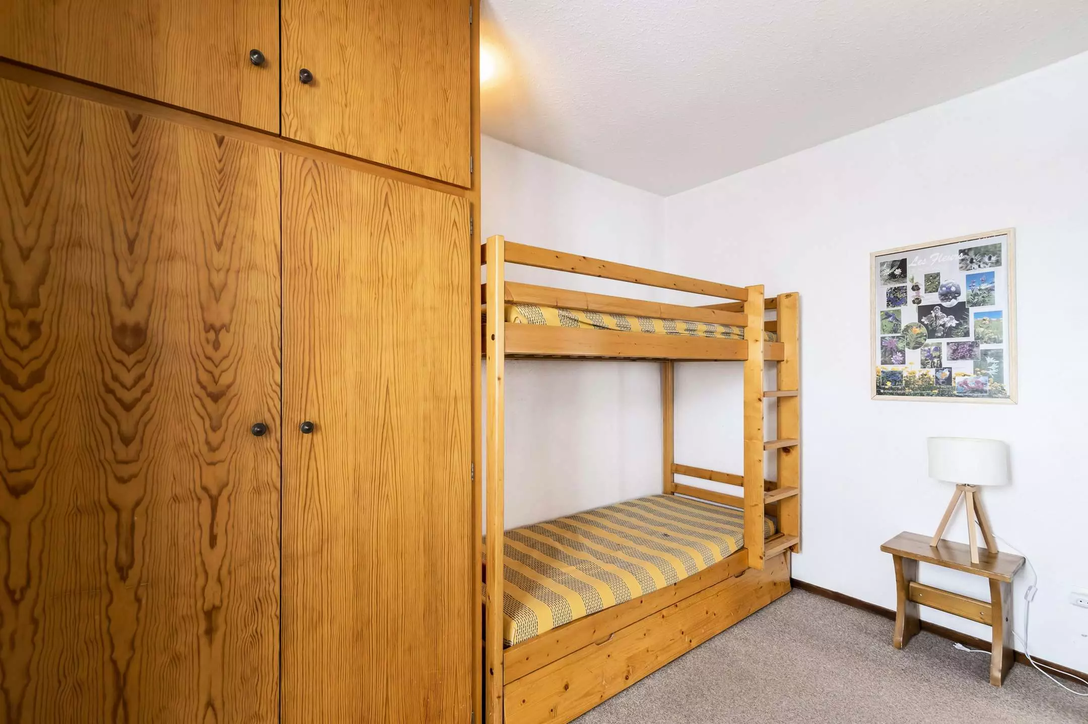 Appt 2 Pièces Divisible, 6 pers, 50m2, exposé Sud Ouest, vue sur les pistes, balcon, niveau 6 par ascenseur réellement 9ème étage sur pistes- Cuisine : 4 plaques vitrocéramiques, four, réfrigérateur, lave-vaisselle - Séjour : 1 canapé-lit 2 pers, TV - Partie divisible : coin repas, 1 banquette lit 1 pers - Chambre : 2 lits superposés 1 pers, 1 lit 1 pers, SDB : baignoire, WC séparés - Literie : 5 couettes 1 pers et 1 couette 2 pers- Sol : moquette sauf cuisne/couloir : carrelage, sdb :plastique. Appartement non fumeur, animaux non admis. En option et en supplément: Ménage de fin de séjour, draps, serviettes, forfaits ski. Appartement très bien exposé avec un grand balcon, belle vue sur pistes. Casier à skis n°62 au niveau sortie pistes - LA MEIJE : résidence de 9 étages située au cœur de la station et au pied des pistes. Accès direct à la galerie commerciale.