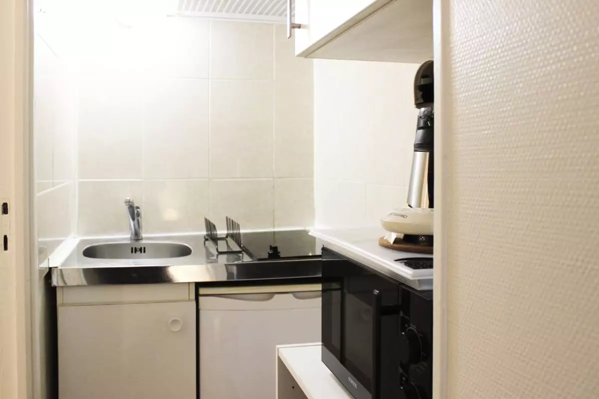 Cuisine équipée : micro-ondes, réfrigérateur.