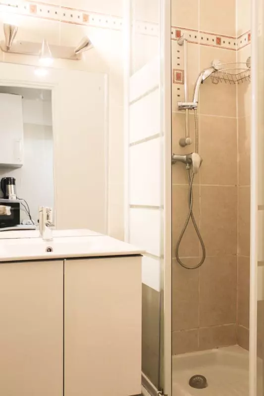 Salle d’eau : Une douche moderne et pratique.