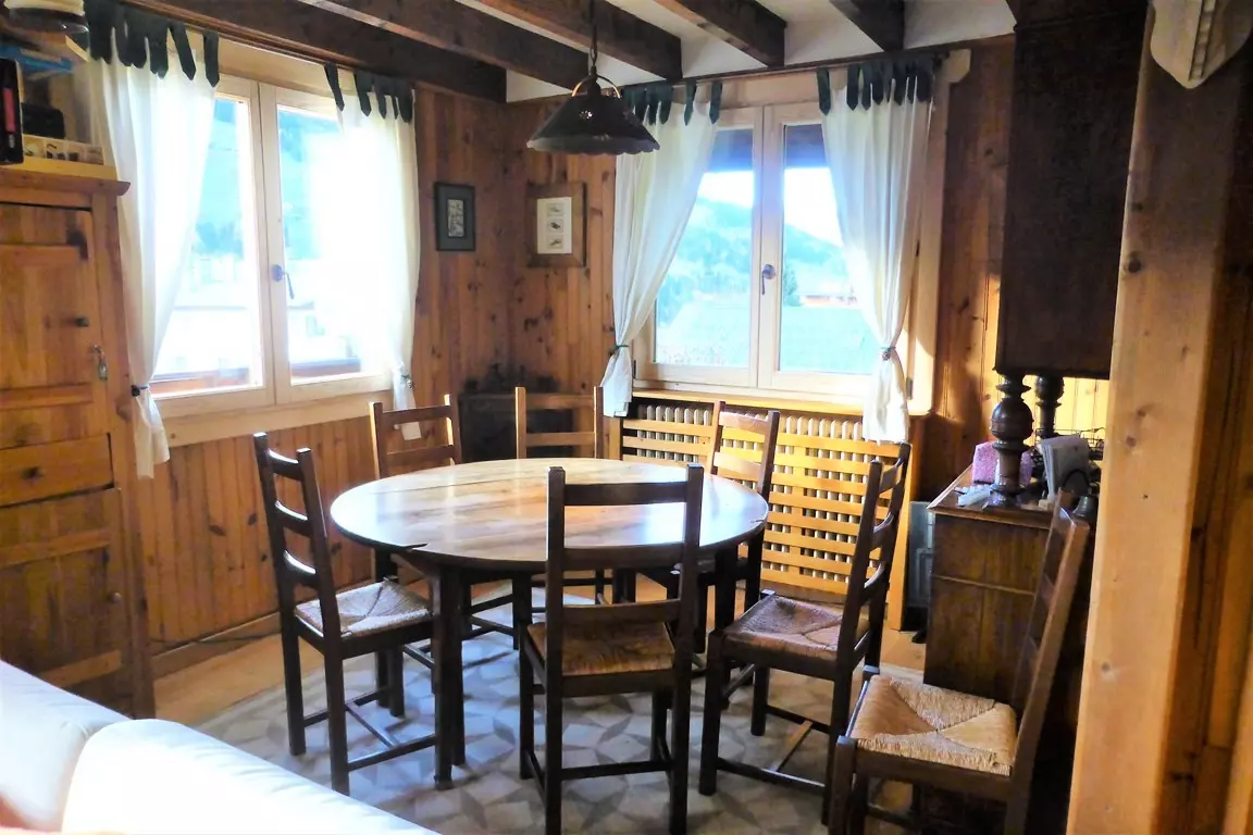 Ce chalet confortable et chaleureux de 150 m² est idéal pour 10/11 personnes. Il comprend : un double living, une belle entrée ski-room en RDC, 4 chambres + 1 lit 90 sous alcôve, une pièce TV et un petit coin sous les toits pour les enfants, une cuisine équipée, 2 wc, 2 salles de bains. Chalet fonctionnel et très bien équipé (Lave-vaisselle, DVD magnéto, stéréo, lave-linge, sèche-linge) grand balcon sud, jolie vue dégagée sur le village et les sommets environnants. Internet (wifi). Double vitrage. Vous vous sentirez comme à la maison. Interdiction d'utiliser la cheminée à la location.