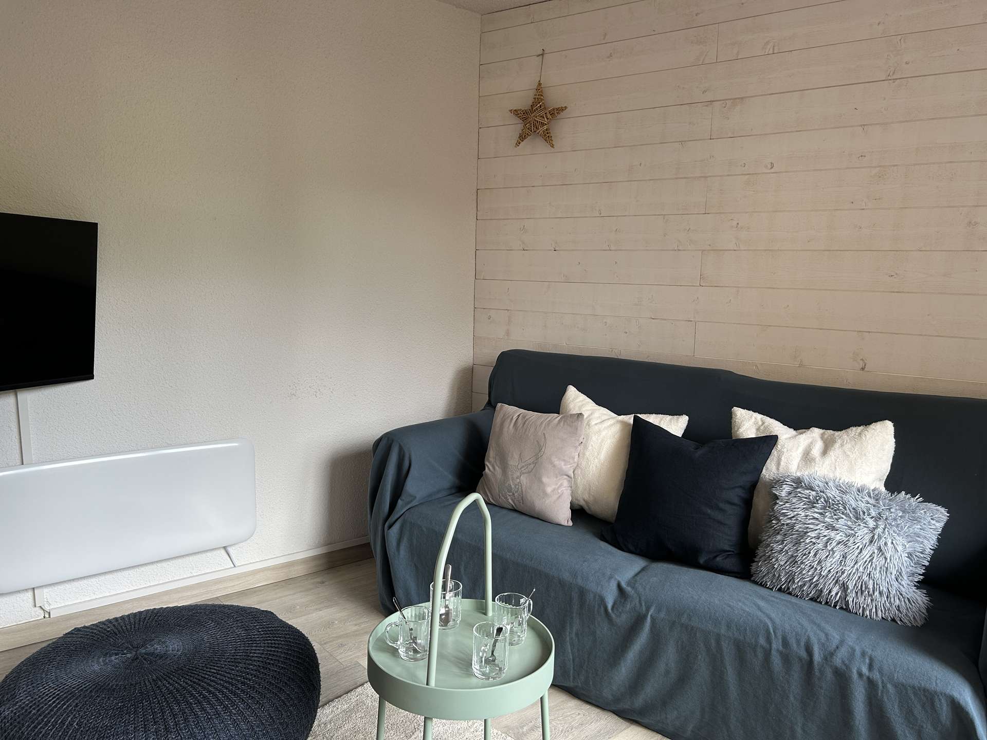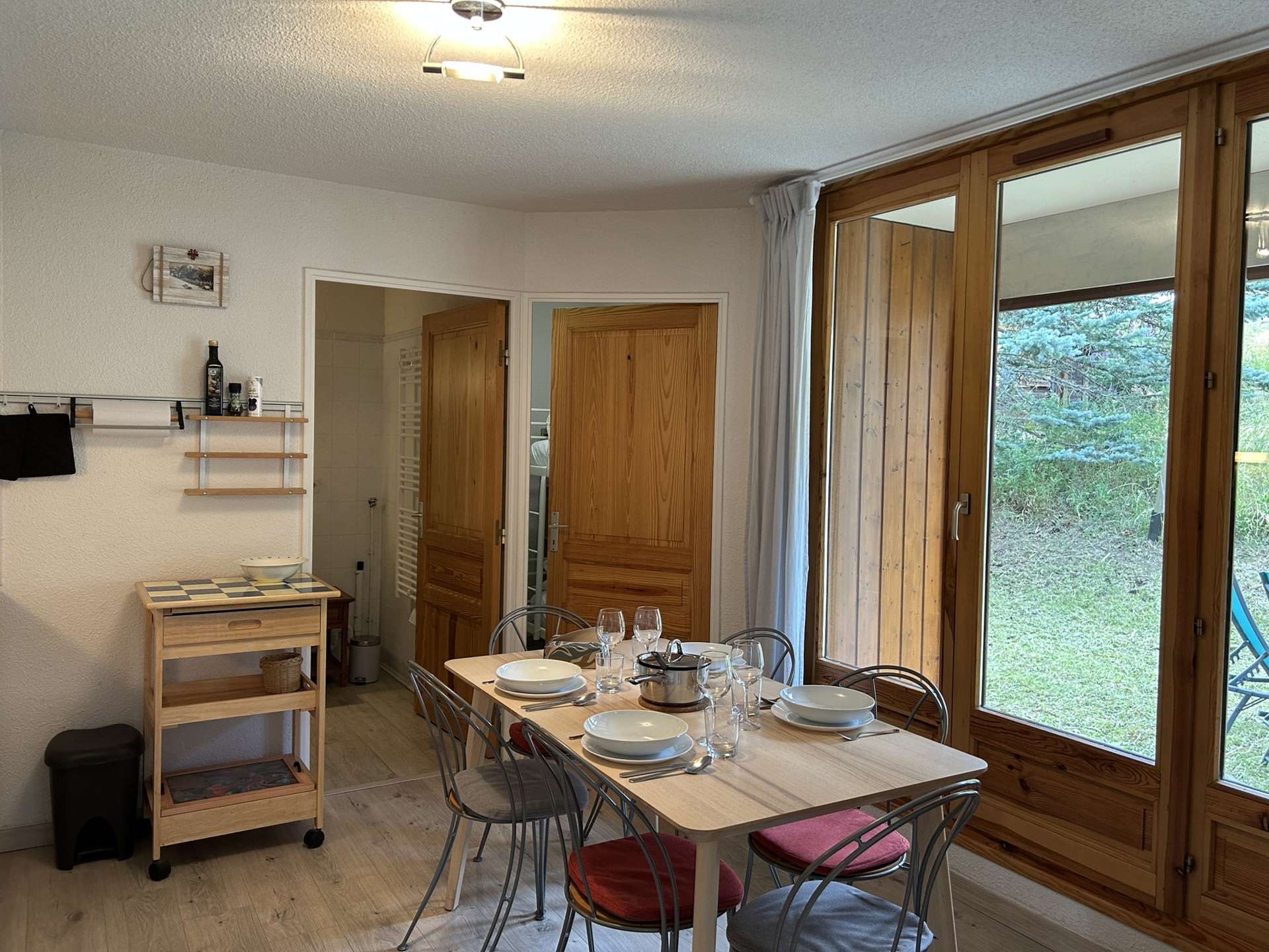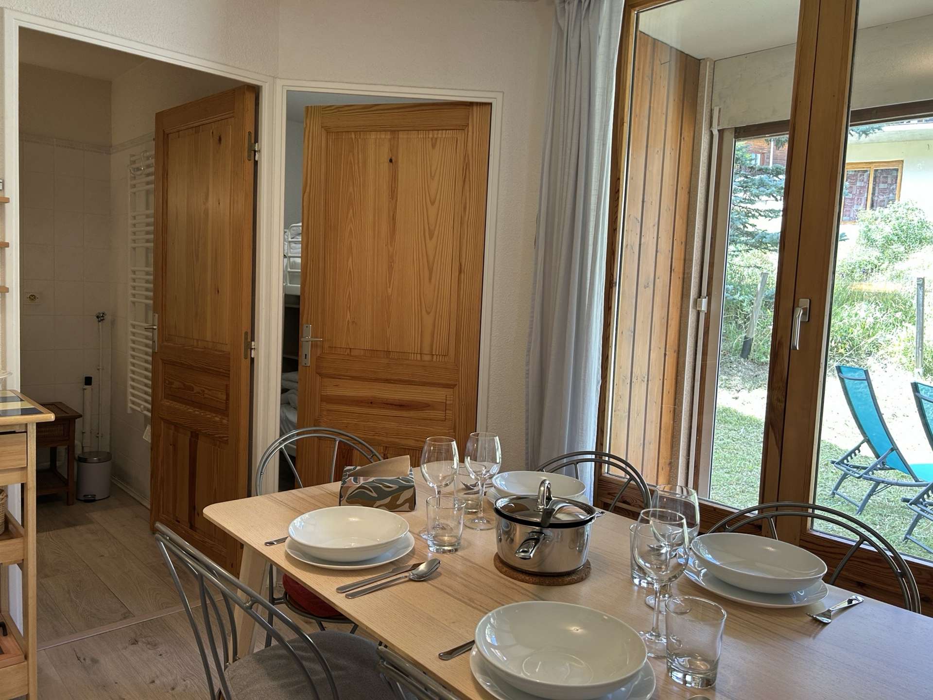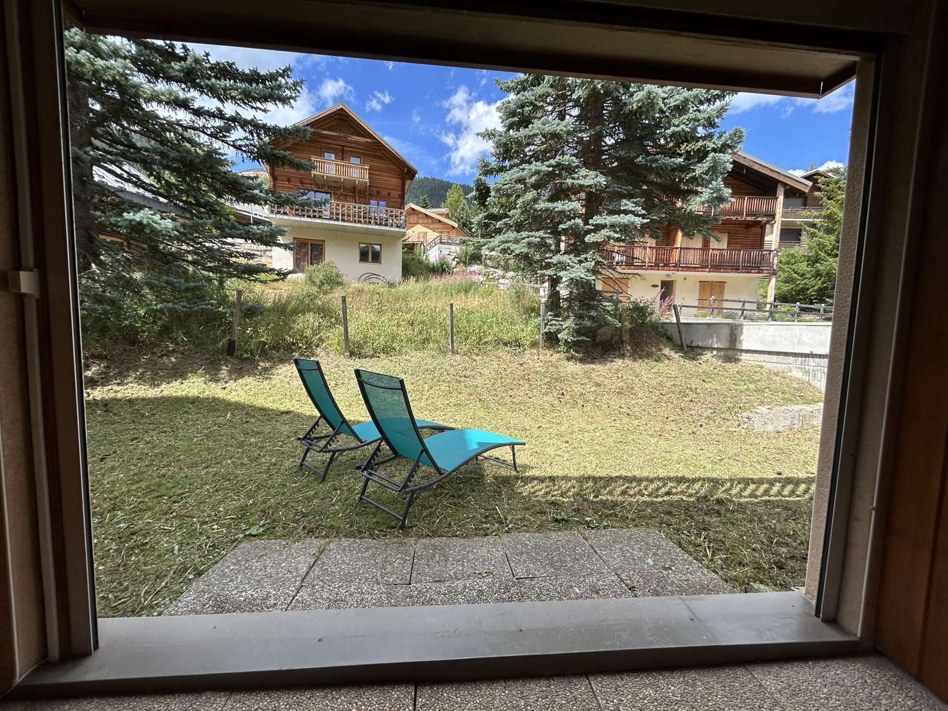 Les avantages de cette location à la montagne : l'appartement se trouve proche du centre du village, et en été on peut jouir d'un petit jardin.