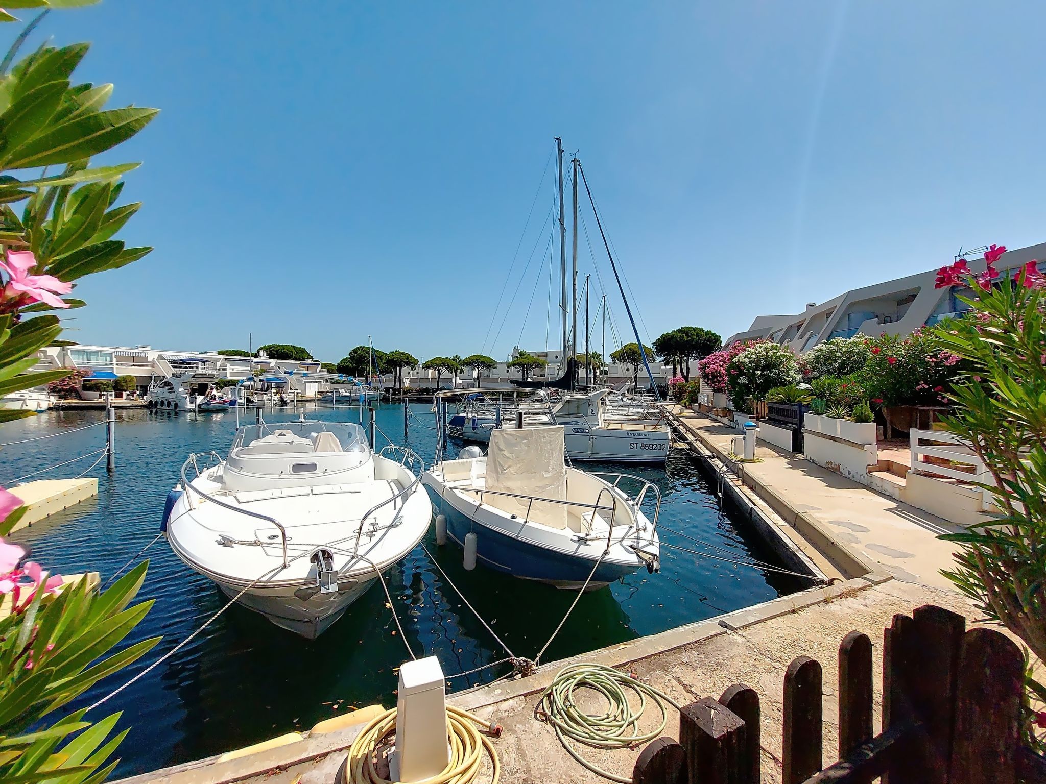 Résidence "Les Arpèges". Dans le quartier des Marinas II, dans la localité, à 500 m de la mer, à 500 m de la plage. Magasins, magasin d'alimentation 600 m, supermarché 3 km, restaurant 600 m, arrêt de bus "Quai aux Fleurs" 1.2 km, gare ferroviaire "Grau du roi" 6 km, plage de sable "Sud" 500 m, piscine 5.2 km, centre thermal "Thalazur" 1.2 km. Port plaisance 500 m. Attractions à proximité: Casino Flamingo 3.9 km, Seacquarium 5 km, Les Arènes Grau du Roi 6.3 km, Grande Motte 10 km, Aigues-Mortes 12 km, Nîmes 54 m. Région de randonnées: Réserve naturelle de Camargue. Veuillez noter: la remise des clés a lieu à l’agence de Port Camargue, 4 km. Aéroport 24 km de la maison.