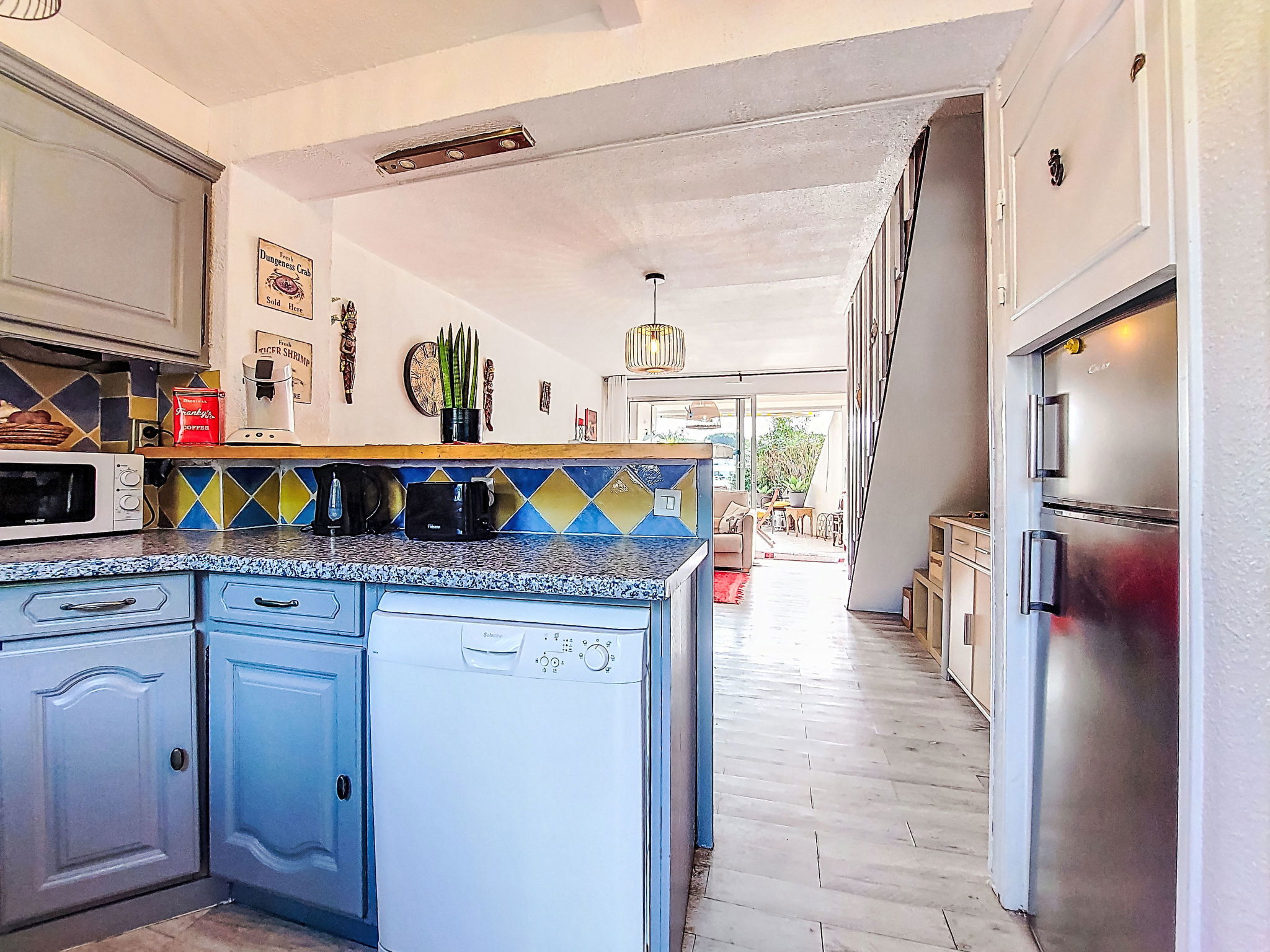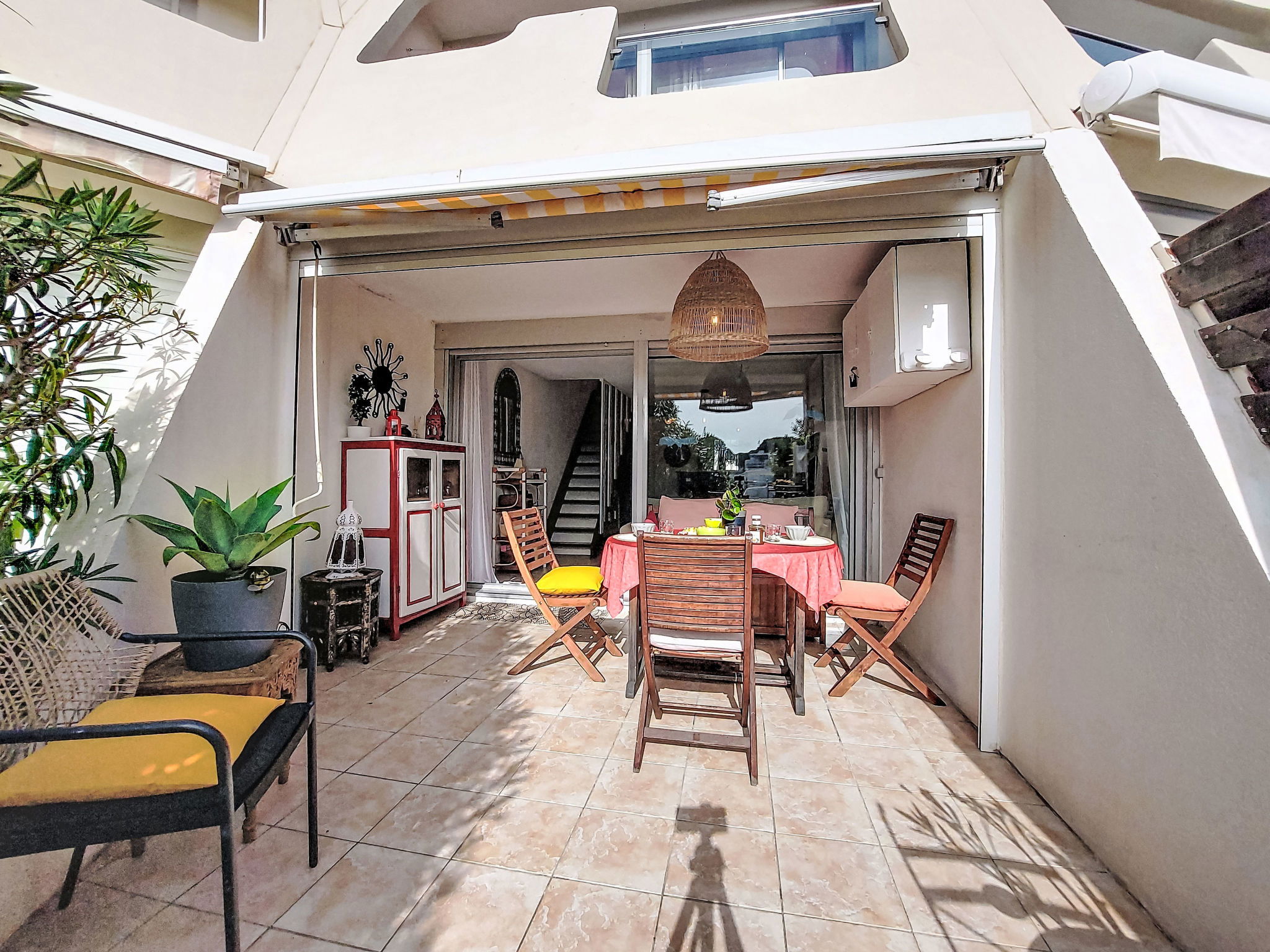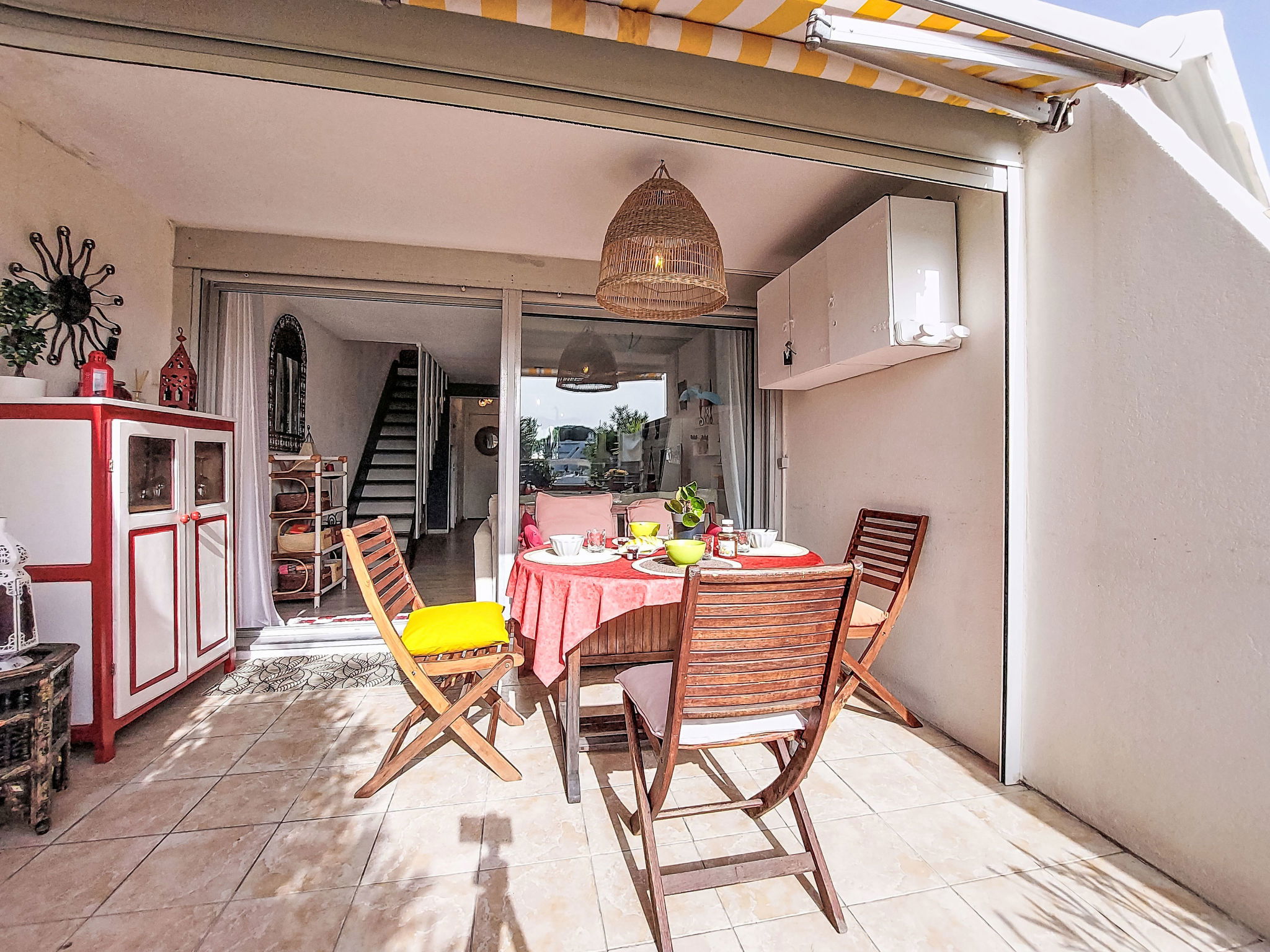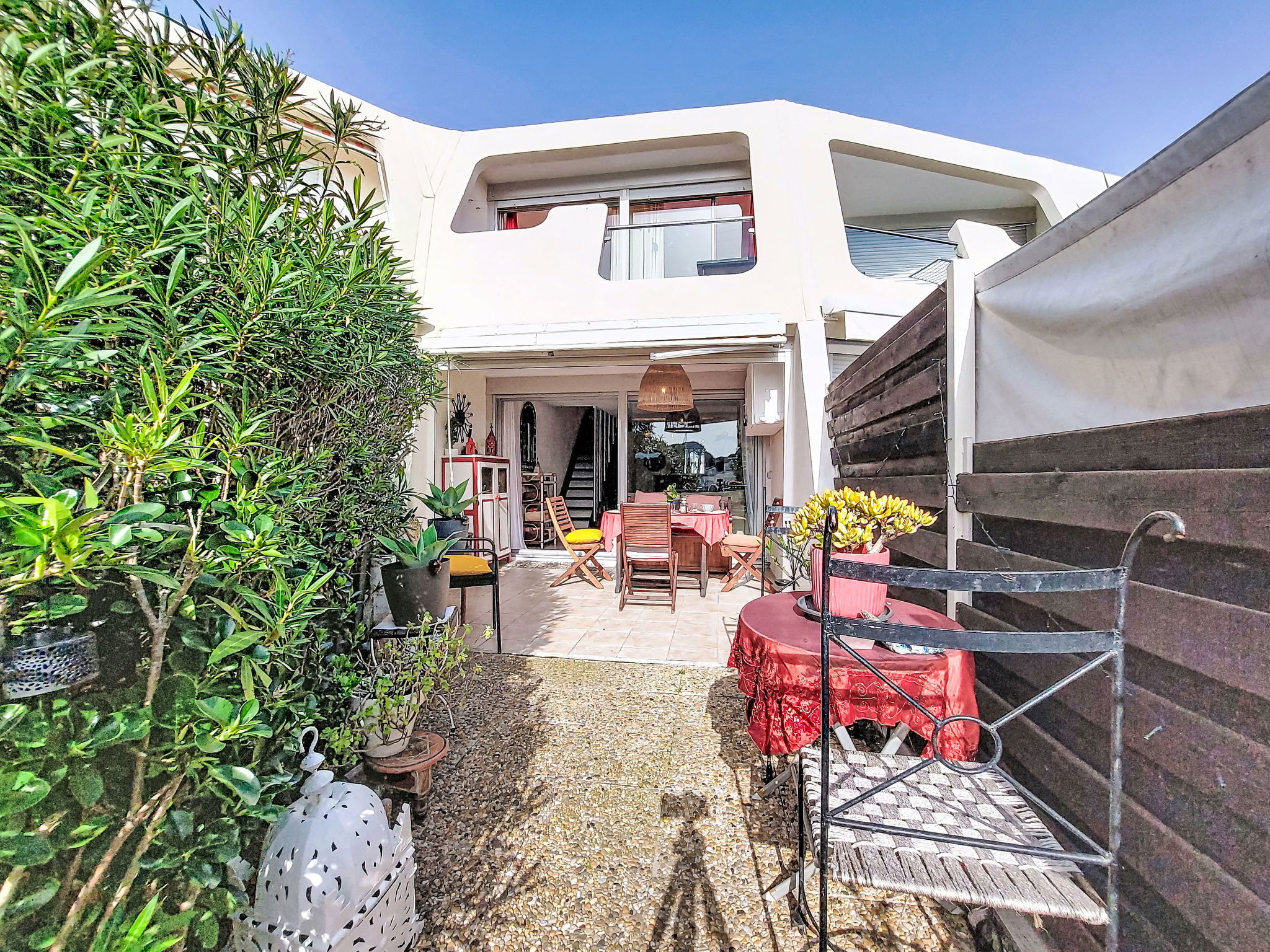 Maison mitoyenne 3 pièces 51 m2 sur 2 niveaux. Partiellement rénovée en 2025: séjour/salle à manger avec TV et chaîne stéréo. Coin cuisine (4 plaques de cuisson, four, lave-vaisselle, micro-ondes). WC séparé. À l'étage supérieur: 1 chambre avec 1 grand-lit (140 cm, longueur 190 cm). Sortie sur le balcon. 1 chambre avec 1 grand-lit (140 cm, longueur 190 cm). Douche/WC. Terrasse 20 m2, situation sud-est. Meubles de terrasse. Vue sur le port. A disposition: lave-linge. Internet (Connexion WIFI, en sus). Place de parking. Veuillez noter: place d'amarrage privée. 1 animal/ chien de petite taille autorisé. Détecteur de fumée. Annonce d'un particulier (art 155, IV du CGI).
