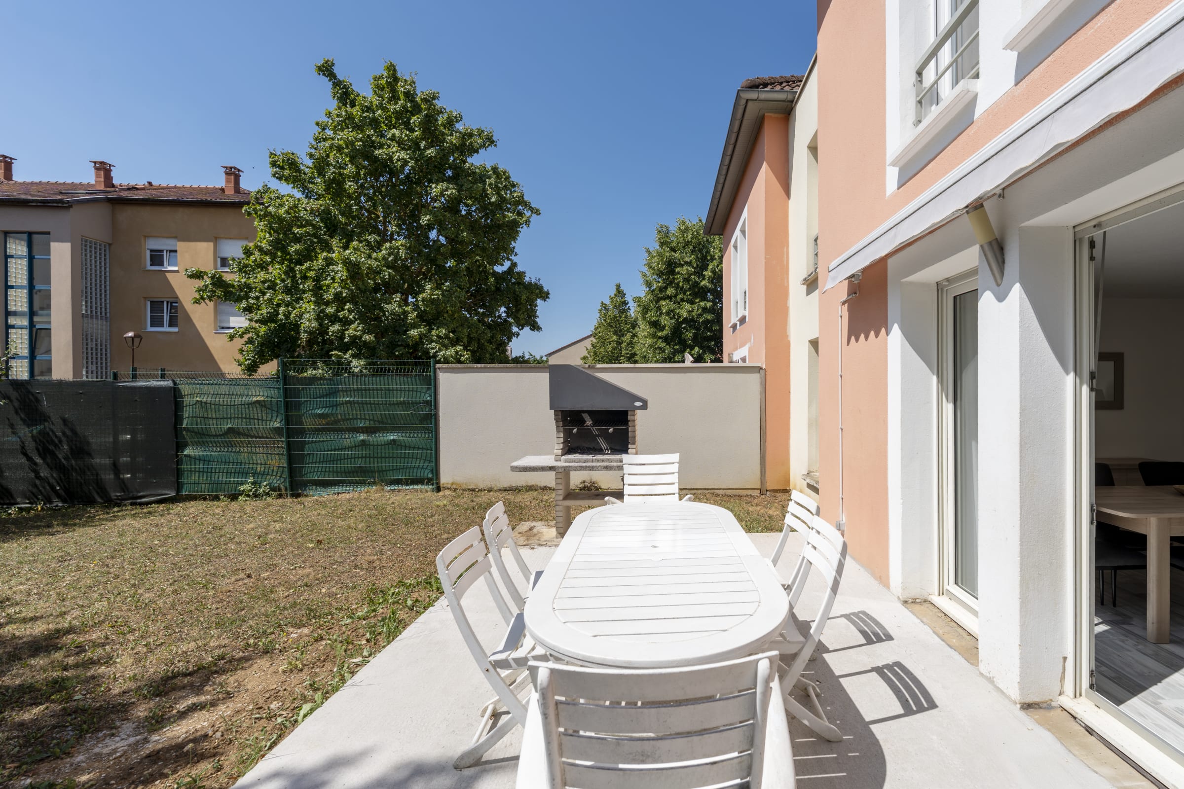 - Jardin privatif, terrasse aménagée avec store et barbecue
