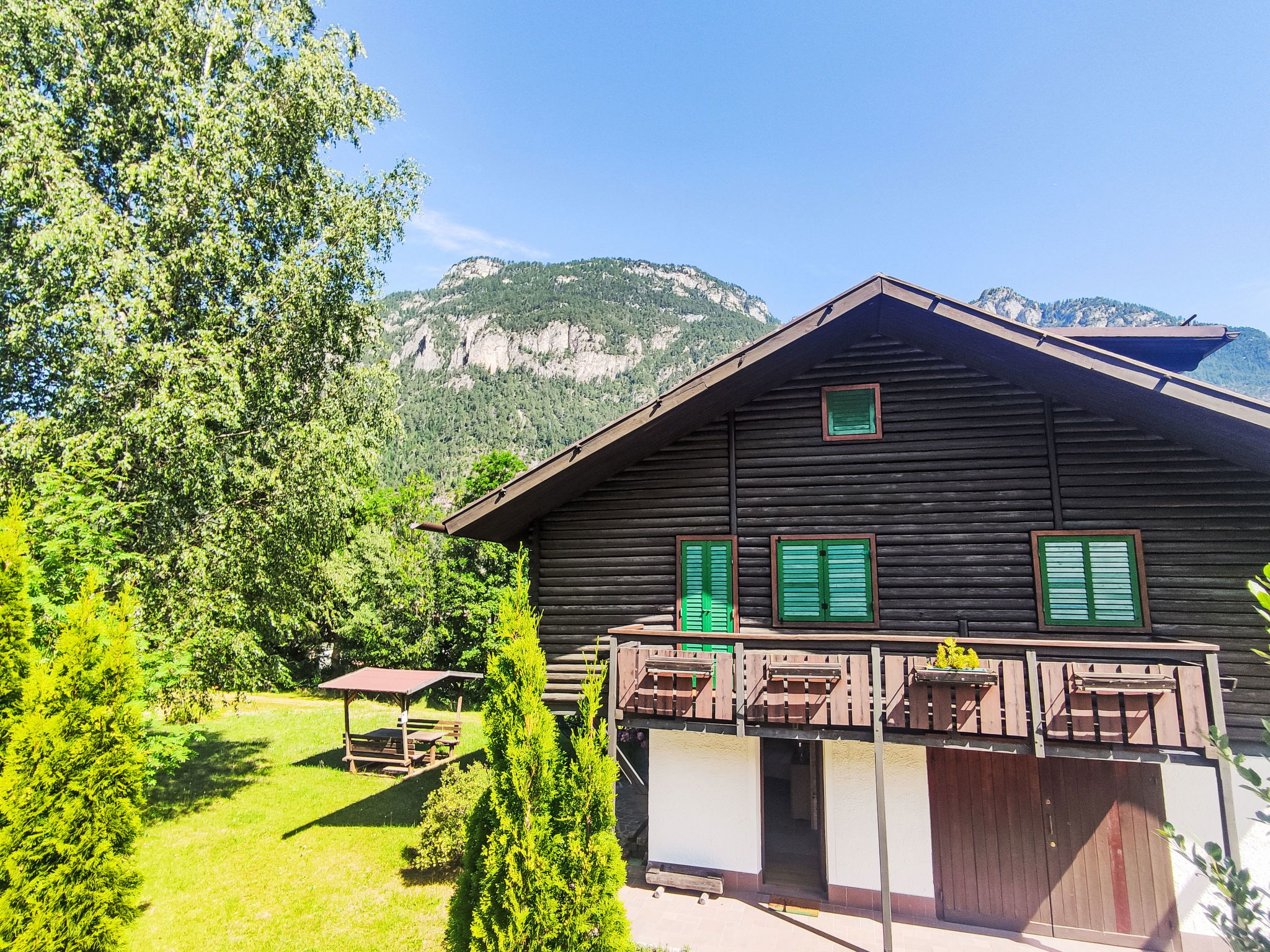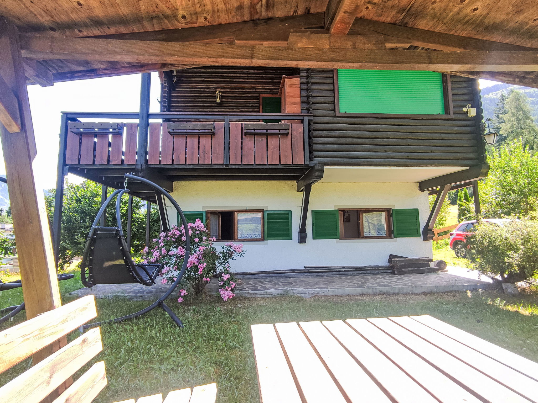 "Altavista", chalet 5 pièces 150 m2 sur 3 niveaux, au rez-de-chaussée, situation sud. Spacieux et clair, partiellement rénové en 2025, aménagement rustique et plaisant: entrée avec TV. Sortie sur le jardin. 1 chambre double avec TV. Sortie sur le jardin. Douche/bidet/WC. Chauffage. Possibilité de chauffage uniquement du 15.10. au 31.05. À l'étage supérieur: séjour avec 1 divan-lit double et poêle suédois (uniquement à titre de décoration), table pour les repas et TV. Sortie sur le balcon. 1 chambre double avec TV. Sortie sur le balcon. Cuisine (four, lave-vaisselle, 4 plaques à induction, grille-pain, bouilloire électrique, micro-ondes) avec table pour les repas. Sortie sur le balcon. Douche/bidet/WC. Chauffage. Possibilité de chauffage uniquement du 15.10. au 31.05. Sous le toit: 2 chambres doubles, chaque chambre avec: TV. 3 grands balcons, grand jardin 200 m2, situation sud et situation est, tonnelle. Mobilier de balcon, barbecue, chaises longues, jardin d'hiver, place pour s'asseoir. Très belle vue panoramique sur les montagnes et la forêt. A disposition: fer à repasser, sèche-cheveux. Internet (Connexion WIFI, gratuit). Place de parking (cloturée, 4 Voitures). Veuillez noter: logement non-fumeur. Maximum 1 animal/ chien autorisé. Entrée privée, extincteur, sans ascenseur. IT022226C2AUY3HWB5