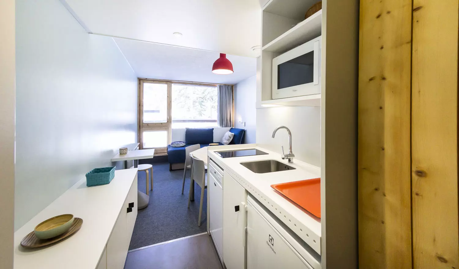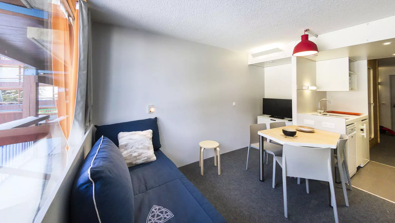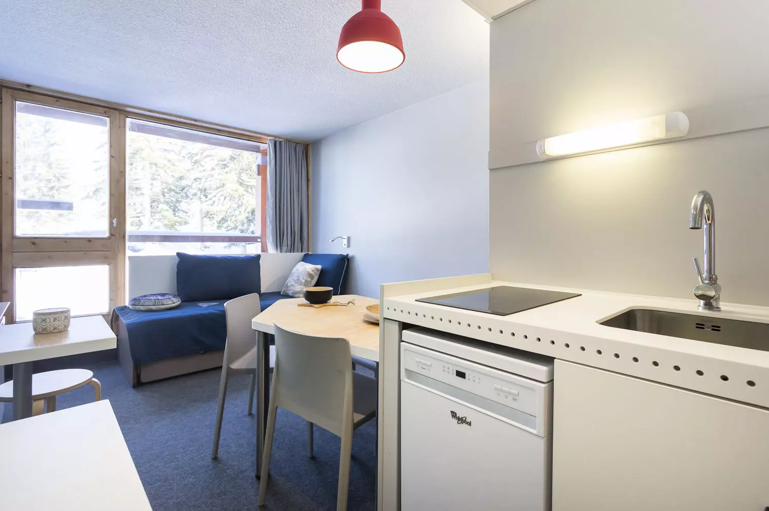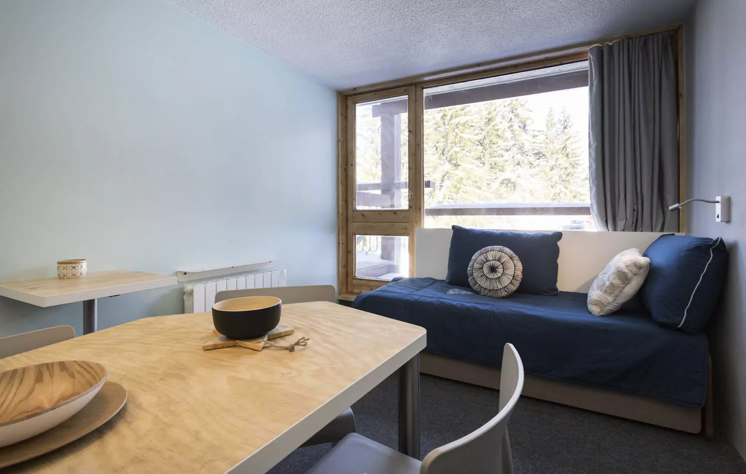 Studio coin montagne comportant une entrée équipée de 2 lits superposés en 80cm (le couchage en hauteur ne convient pas aux enfants de -6 ans).