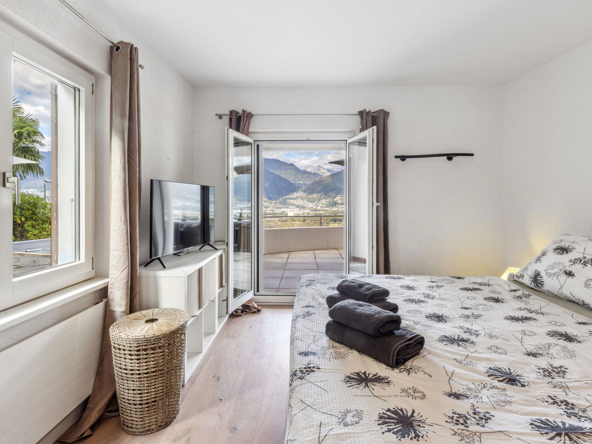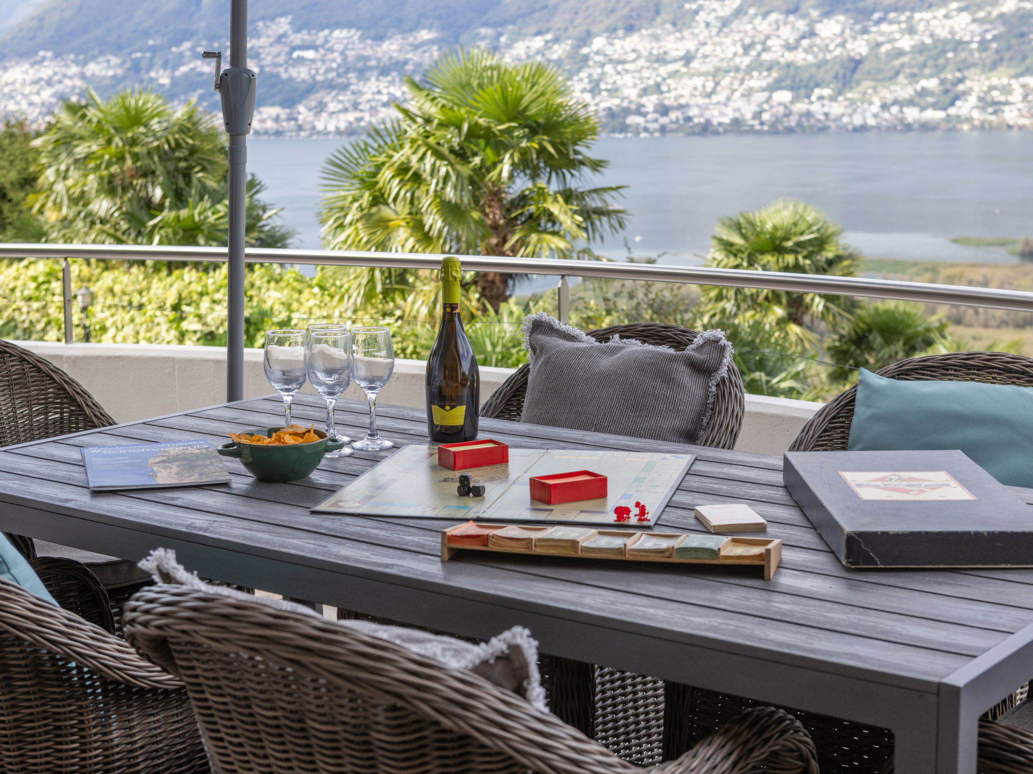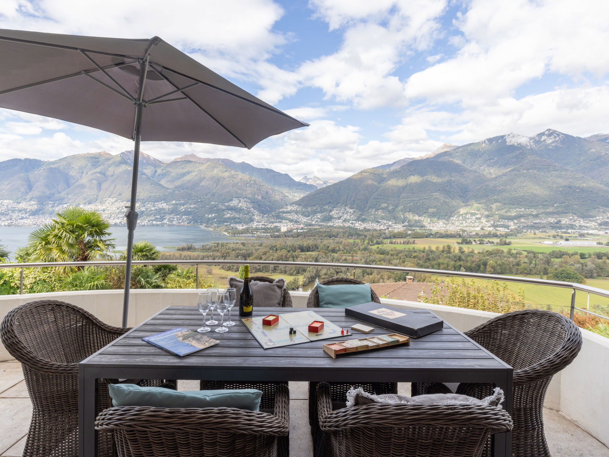 "Villetta Felice", maison 5 pièces 146 m2 sur 2 niveaux, situation nord-ouest. Logement idéal pour 4 adultes + 1 enfant. Rénovée en 2023, aménagement agréable et plaisant: séjour/salle à manger ouvert avec TV et chaînes de TV internationales (écran plat), poêle à bois. Sortie sur la terrasse, orientée nord et orientée ouest. 1 chambre avec TV et chaînes de TV internationales (écran plat). Sortie sur la terrasse. 1 chambre avec 1 lit double (1 x 180 cm, longueur 200 cm), TV et chaînes de TV internationales (écran plat). Sortie sur la terrasse. 1 chambre avec 1 lit (90 cm, longueur 200 cm). Cuisine 6 m2 (four, lave-vaisselle, 4 plaques vitrocéramiques, bouilloire électrique, cafetière électrique). Douche/WC. Chauffage par le sol. À l'étage inférieur: 1 grande chambre avec 1 lit double (2 x 90 cm, longueur 200 cm). Bain/douche/WC. Chauffage par le sol. Sol en pierres naturelles. Grande terrasse 18 m2, grand jardinet 30 m2. Meubles de terrasse, barbecue, chaises longues (2). Superbe vue panoramique sur le lac, les montagnes et les alentours. A disposition: lave-linge, sèche-linge, moustiquaire. Internet (Connexion WIFI, gratuit). Place de parking près de la maison. Veuillez noter: adapté(e) aux familles. Logement non-fumeur. Maximum 1 animal/ chien autorisé. La piscine mentionnée dans le descriptif est privative. NL-00012478