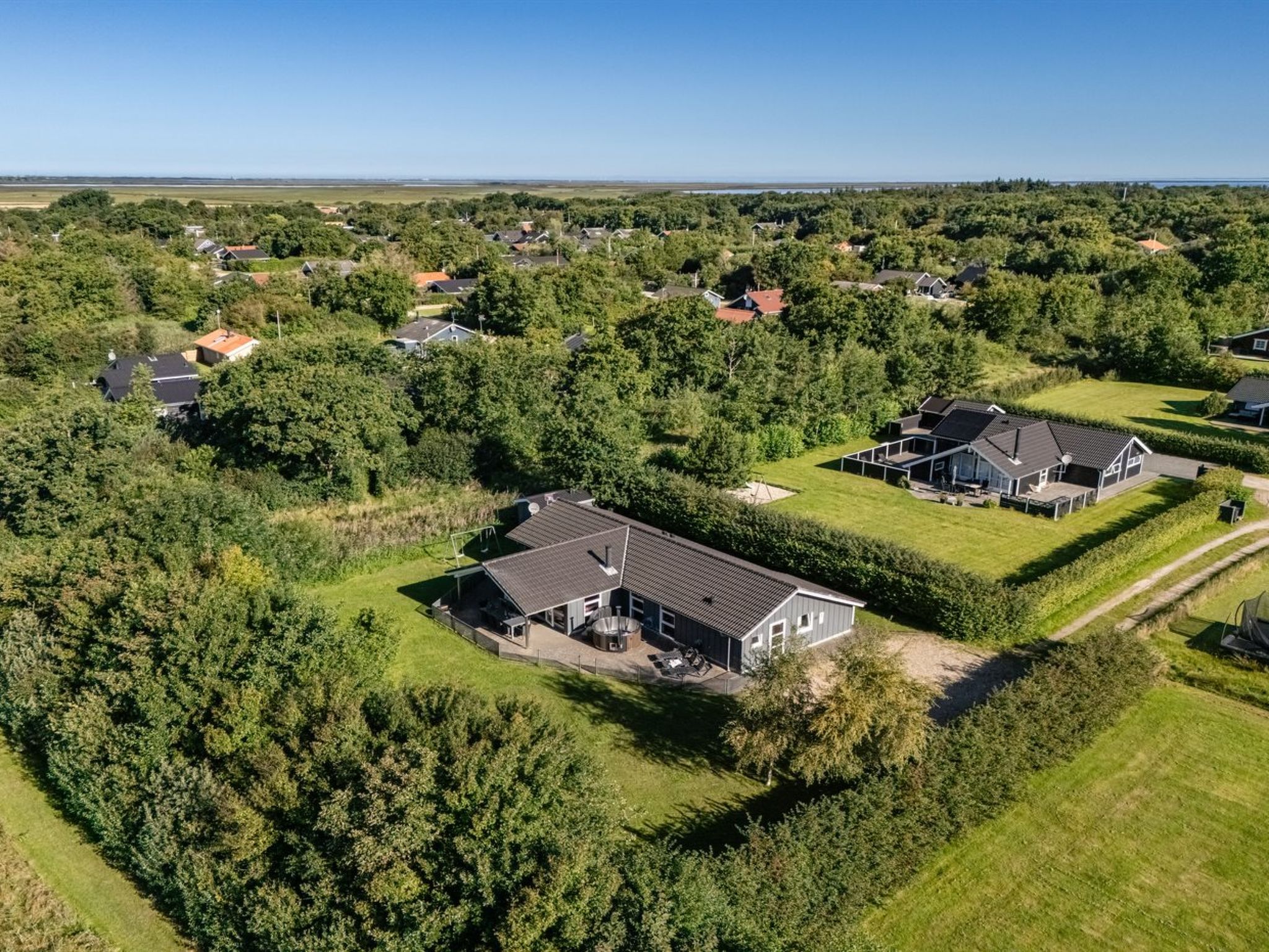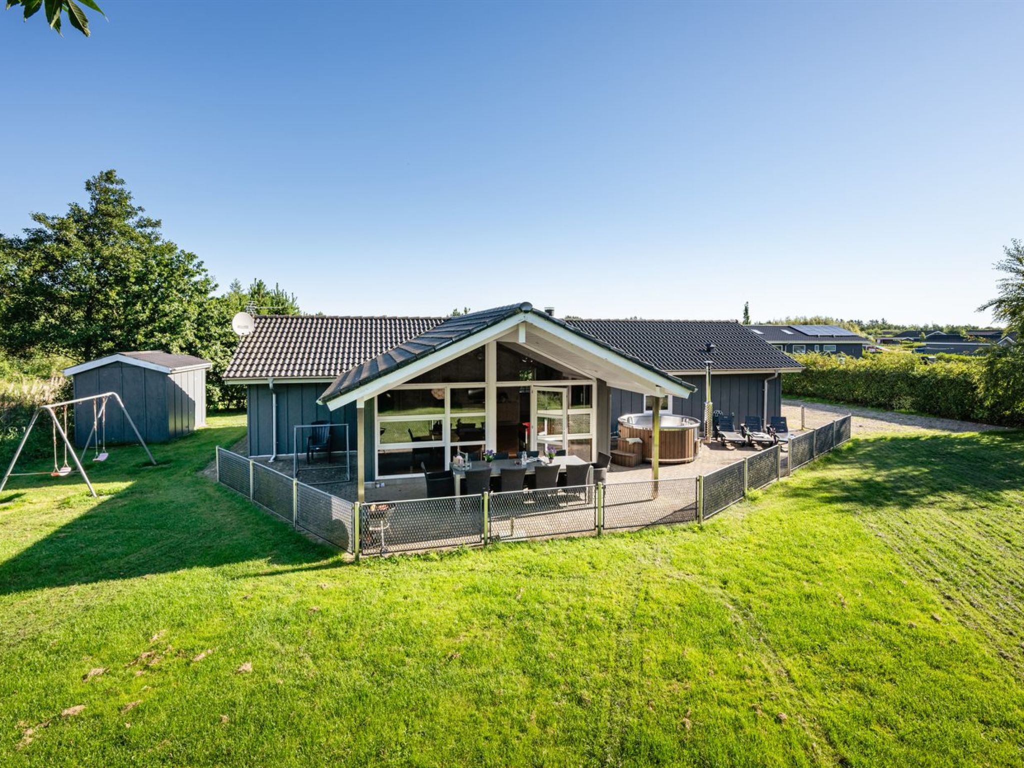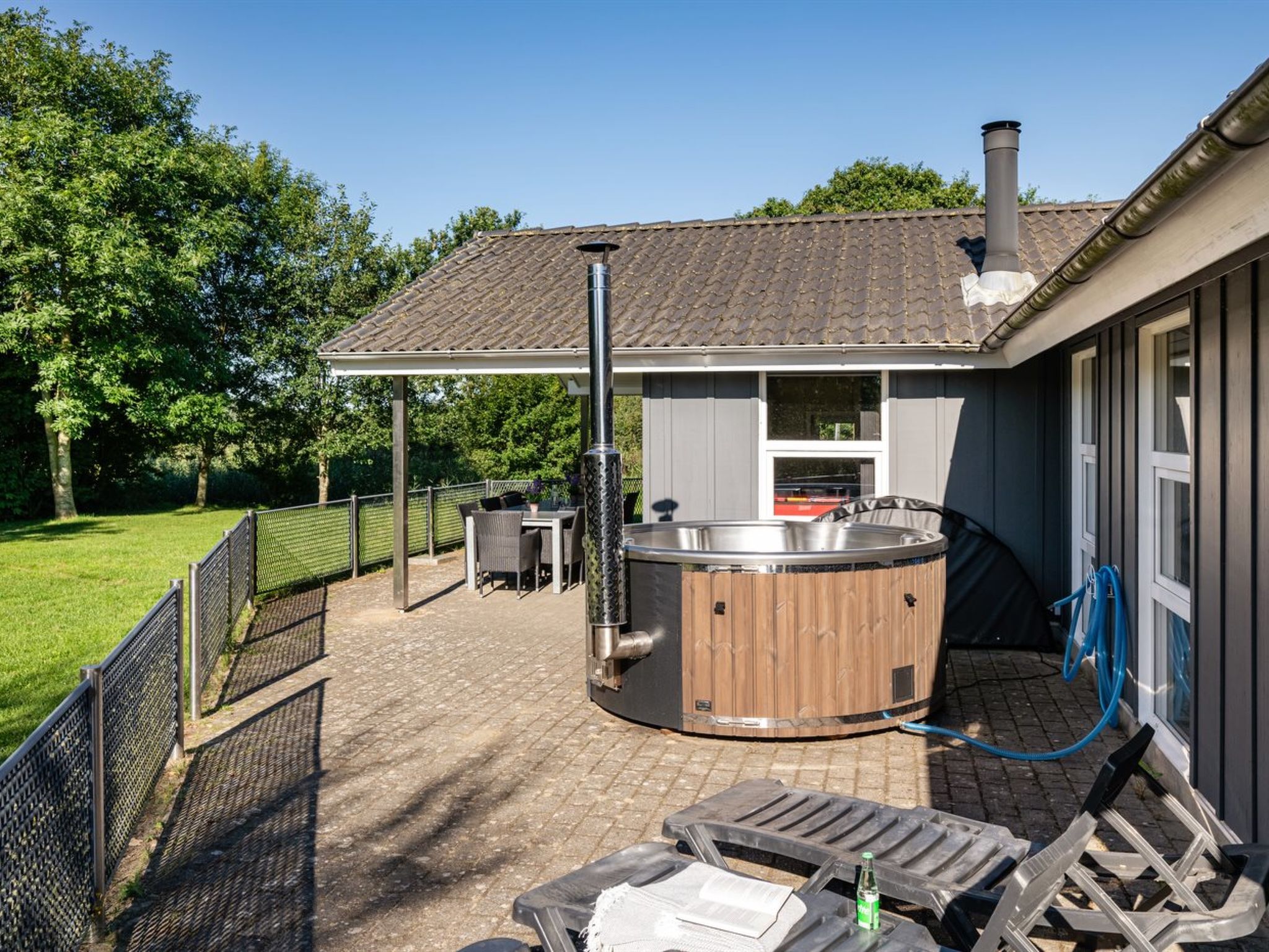 Maison individuelle, année de construction 2008. À 7 km de la mer. A usage privé: terrain 1'200 m2, jardin entretenu. Terrasse (70 m2), espace de jeux pour les enfants (balançoire). Infrastructures de la Maison: sauna, baby foot, lave-linge, sèche-linge. Place de parking près de la maison. Borne de recharge électrique. Magasin d'alimentation 1.5 km. Le propriétaire n'accepte pas les groupes de jeunes.