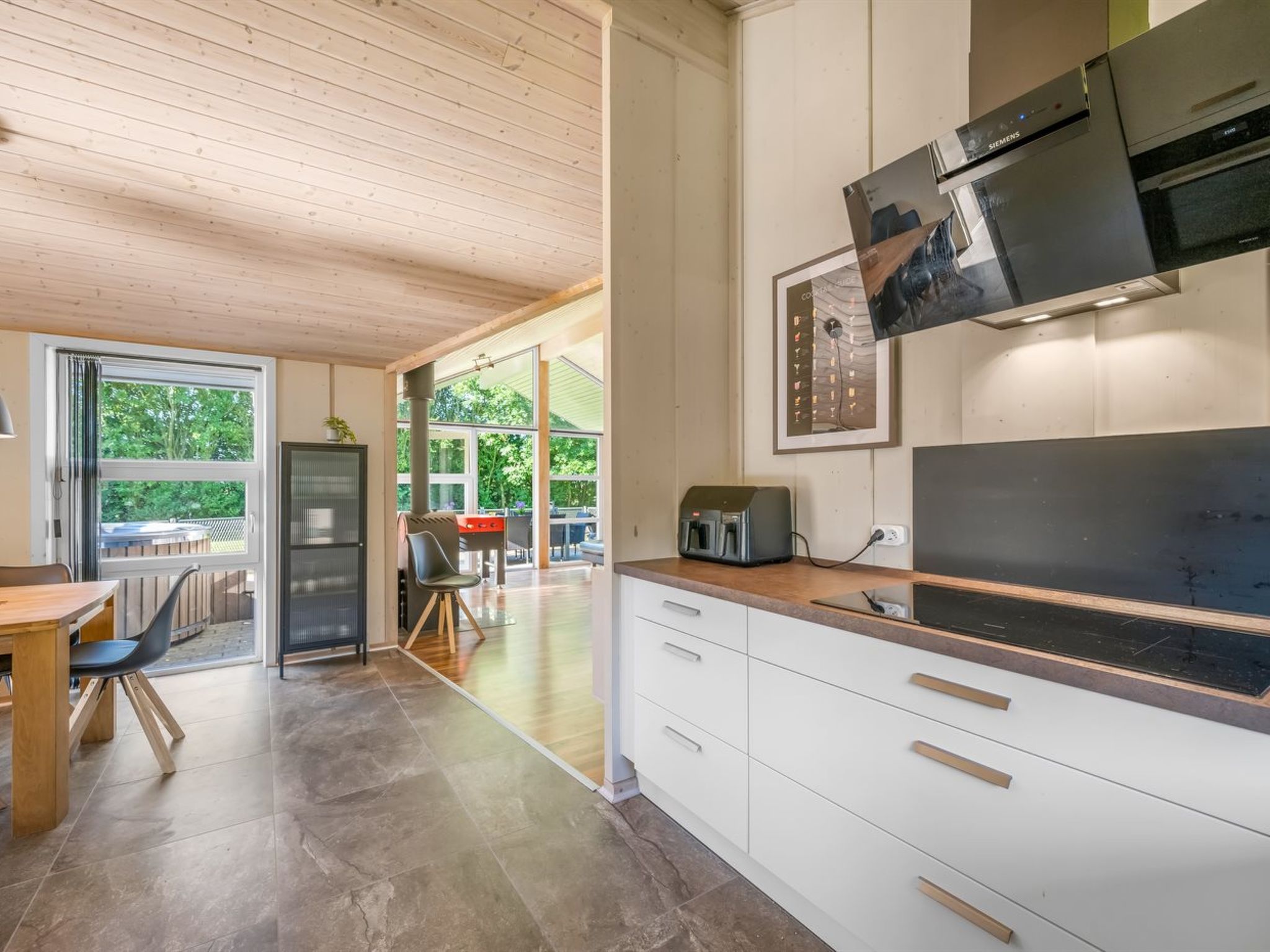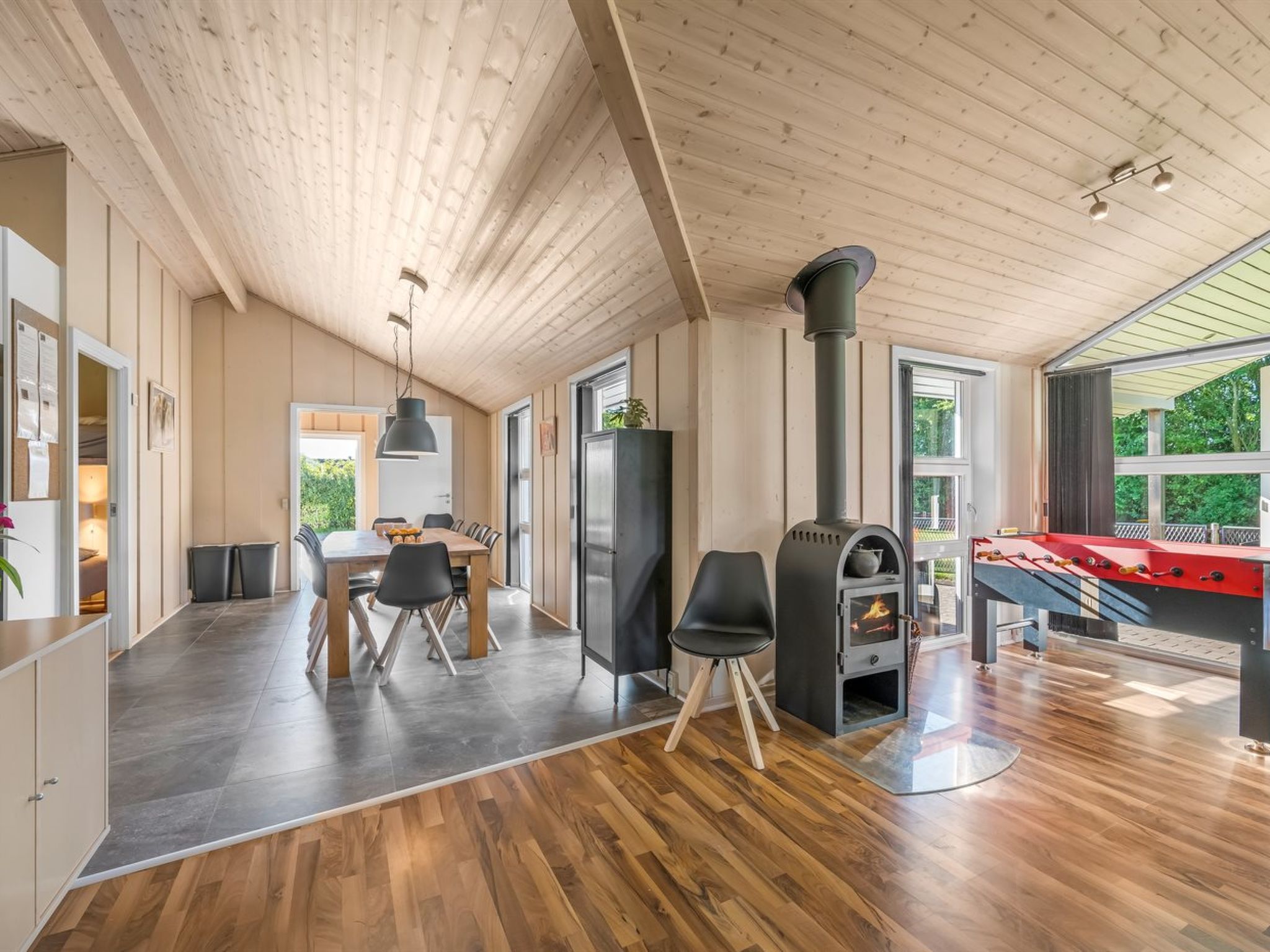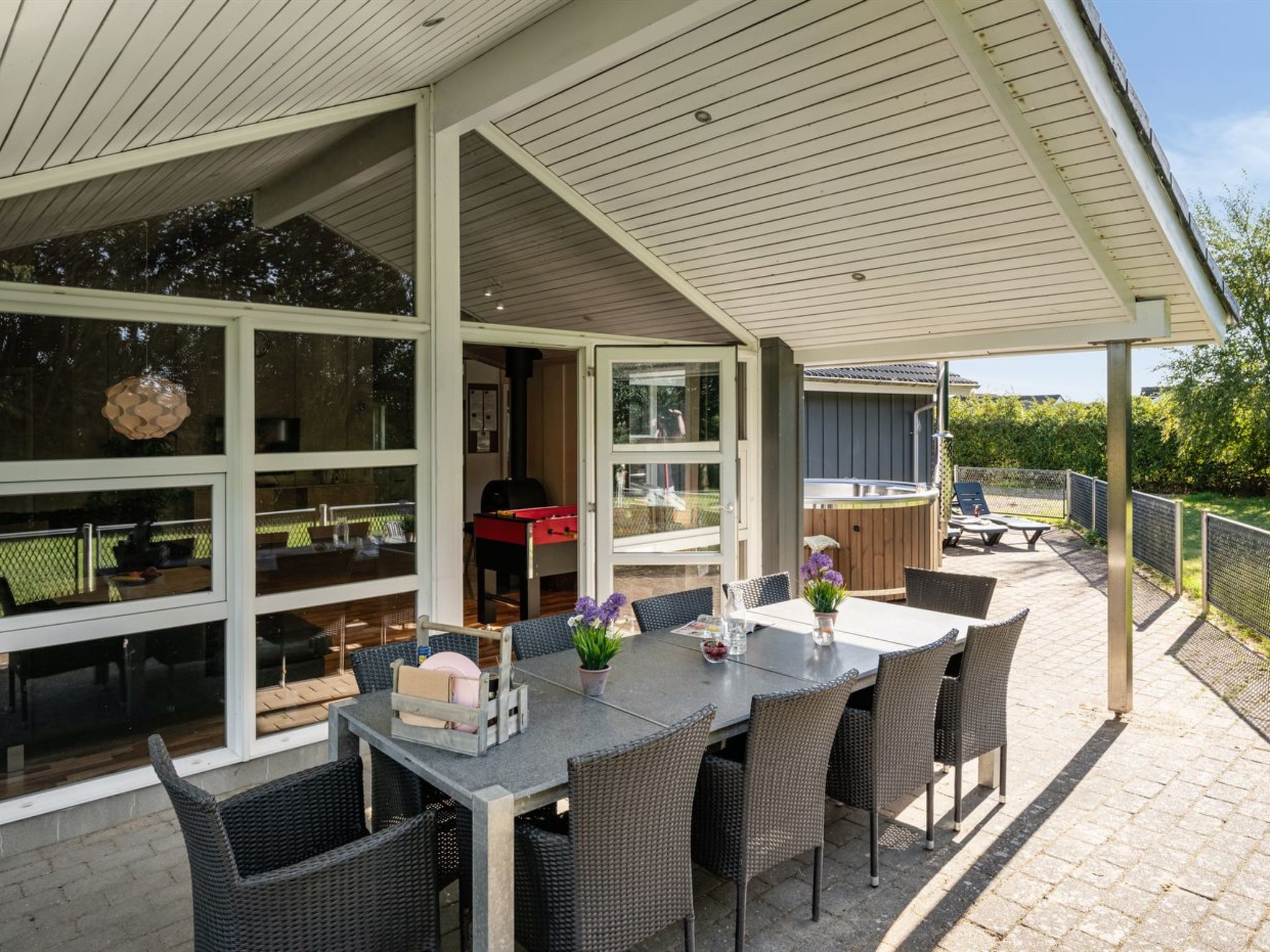 Maison individuelle, année de construction 2008. À 7 km de la mer. A usage privé: terrain 1'200 m2, jardin entretenu. Terrasse (70 m2), espace de jeux pour les enfants (balançoire). Infrastructures de la Maison: sauna, baby foot, lave-linge, sèche-linge. Place de parking près de la maison. Borne de recharge électrique. Magasin d'alimentation 1.5 km. Le propriétaire n'accepte pas les groupes de jeunes.